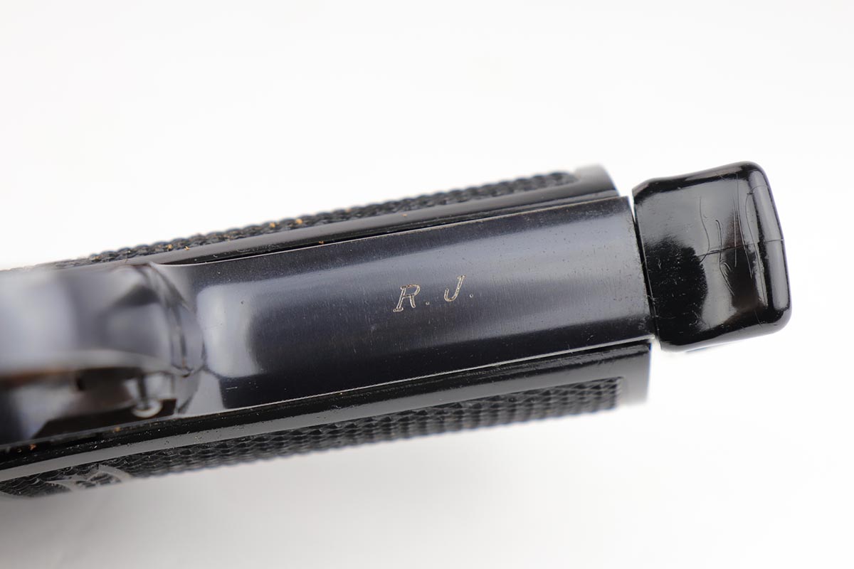 It is completed by an unmarked shoulder holster. RJ PPs were issued to the “Reichs Bureau of Justice”, or in other words, the courts, judges, guards, etc. Probably rarely used other than annual “qualifying trials”.