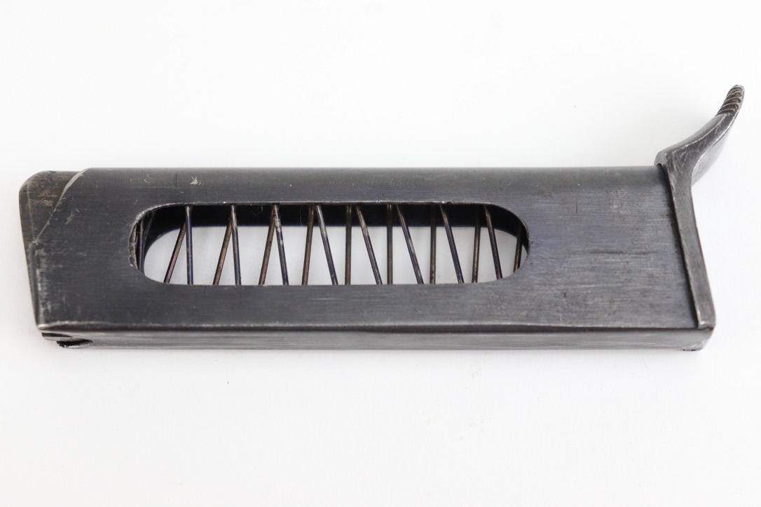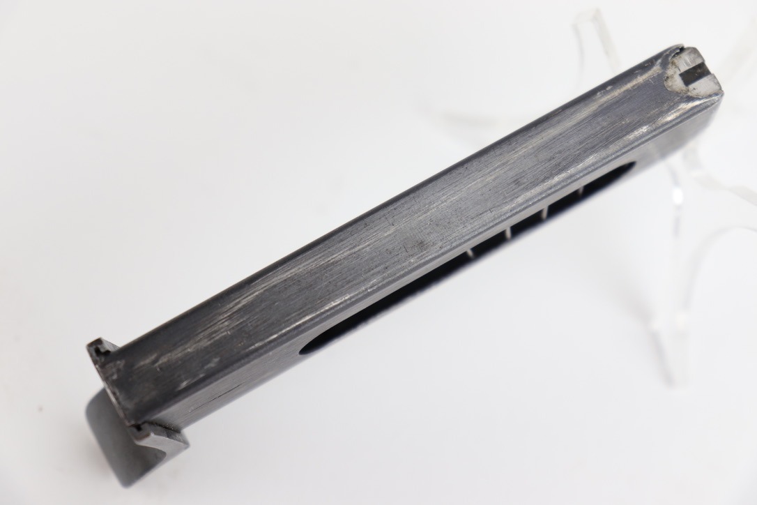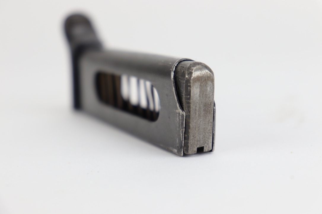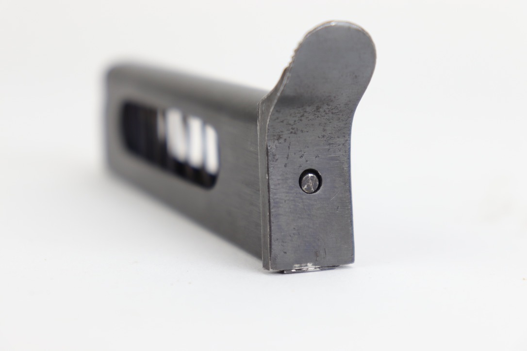 10/2/24 – For sale is an original WW2 production beretta 1934 magazine. This magazine retains 85%+ of its original bluing finish with light edge wear on the feed lips and a streak of finish loss on the belly. spring has excellent retention and smooth operation. Mag is unmarked. Great overall condition.