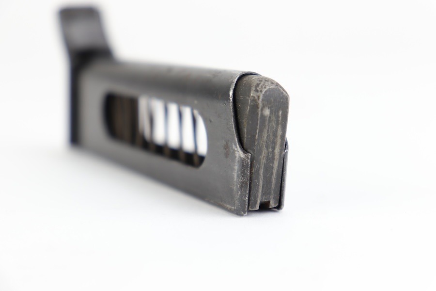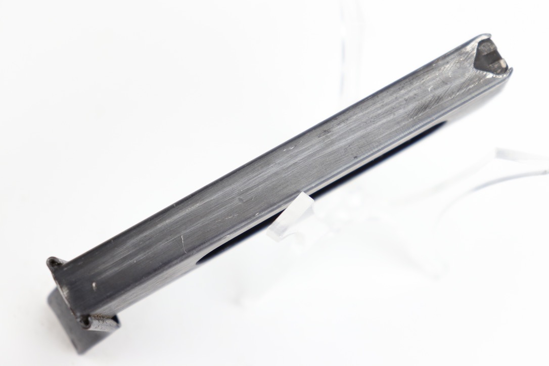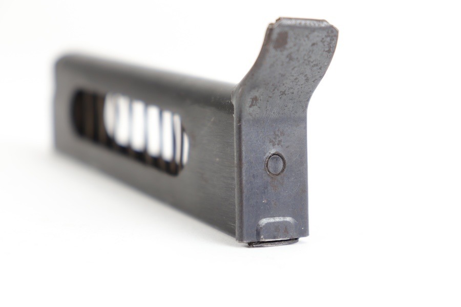 10/1/24 – For sale is an original WW2 production beretta 1935 magazine. This magazine retains 90%+ of its original bluing finish with light edge wear on the feed lips with no major rust spots or pitting on the body. spring has excellent retention and smooth operation. Mag is unmarked and in excellent overall condition.