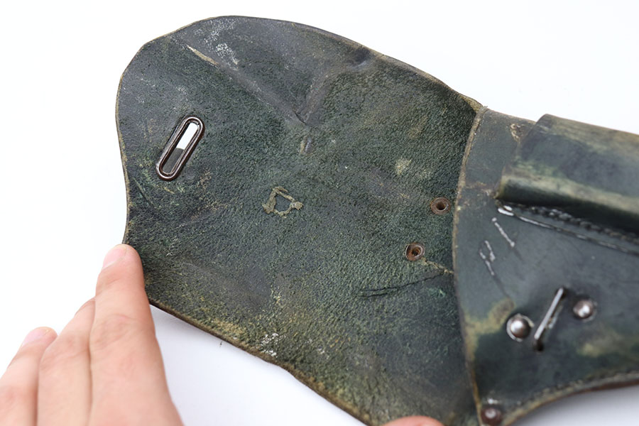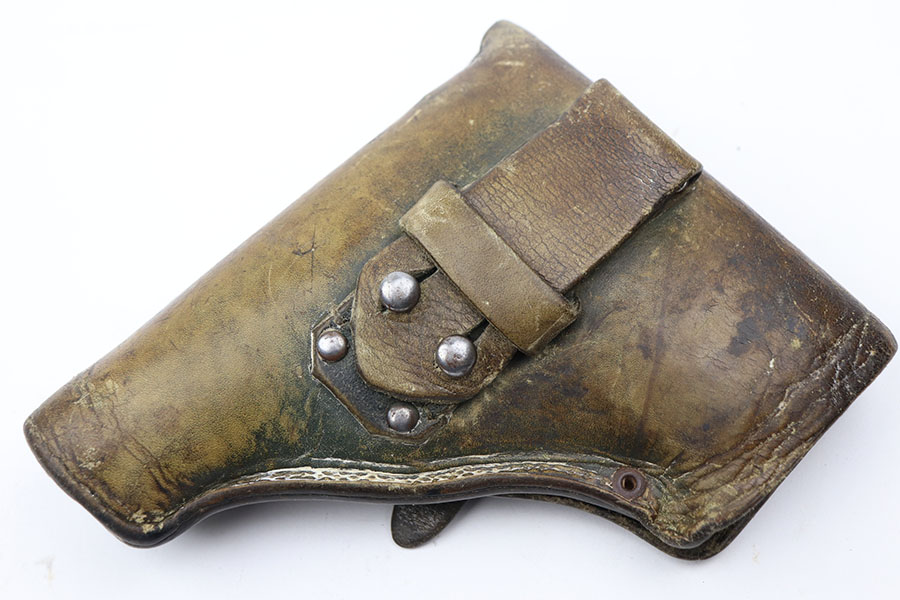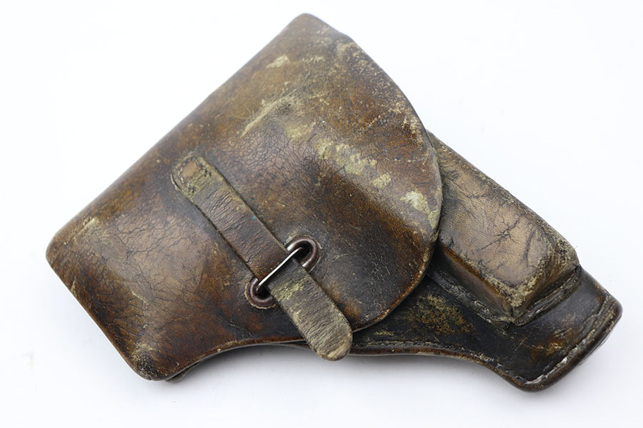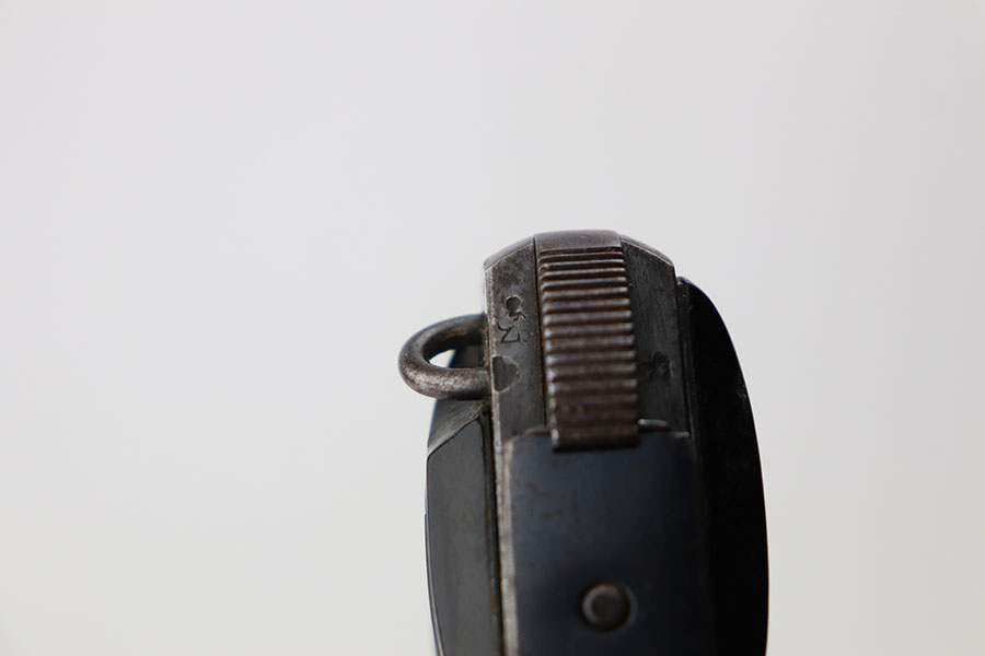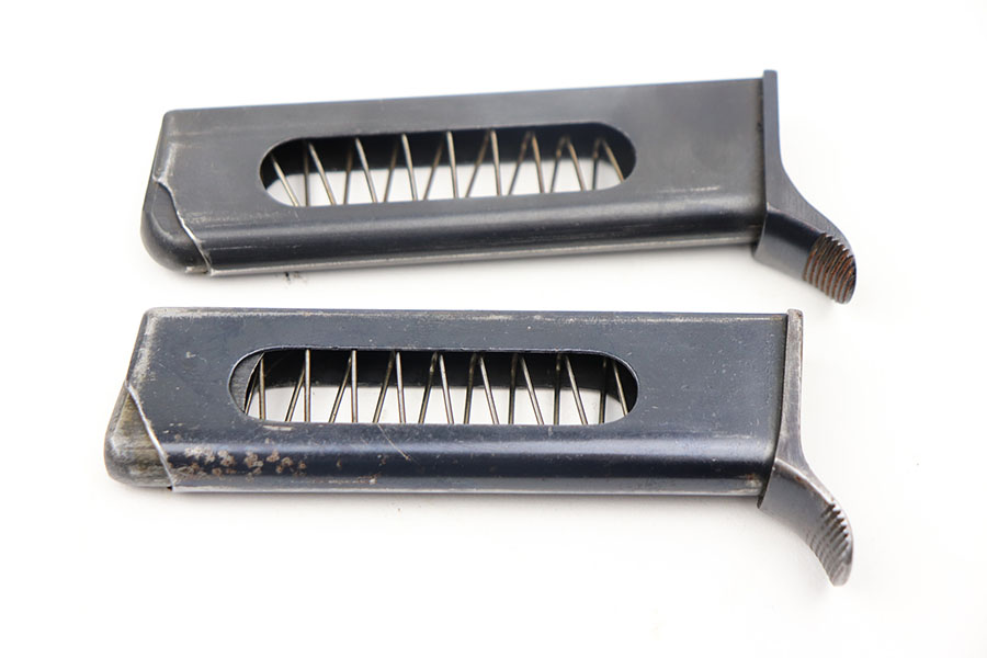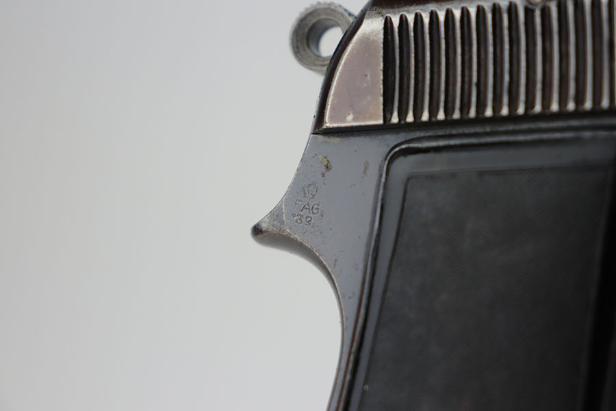 4/7/21 – This is a nice example of a Beretta Model 1934 issued to the Italian military in 1940. The gun is all matching and has the proper “Crown RE” Italian military acceptance proof. Also has an “FAG 39” factory test proof. The gun comes with a greenish Beretta holster and two proper magazines. The gun has retained roughly 80% of its original finish. The slide is plumb-colored. There is spotty wear on both straps and along all sides of the slide. There is spotty oxidation on the straps and minor pitting near the muzzle. Comes with very nice grips. The bore has good rifling with tiny pin-pricking throughout.