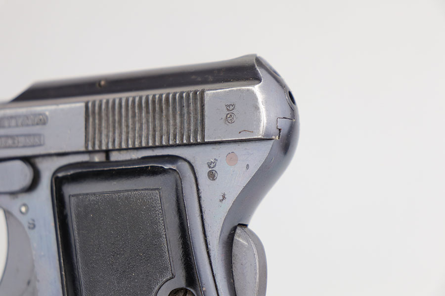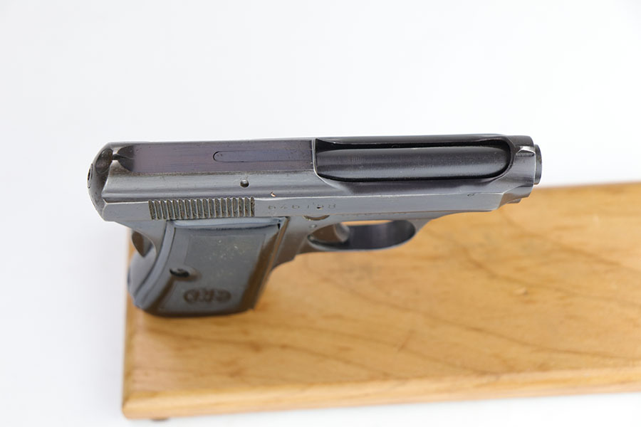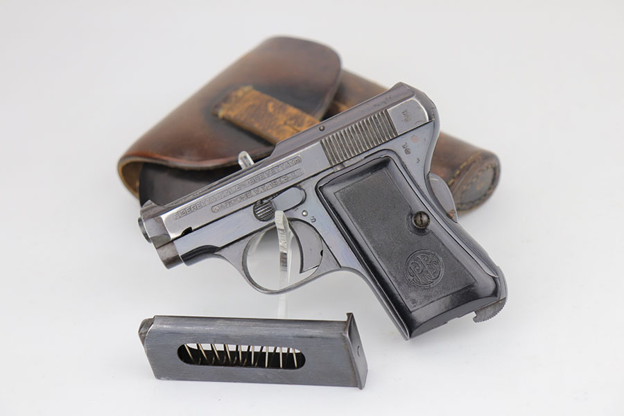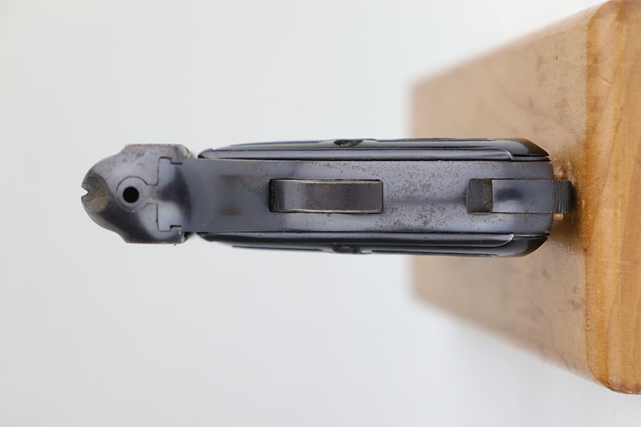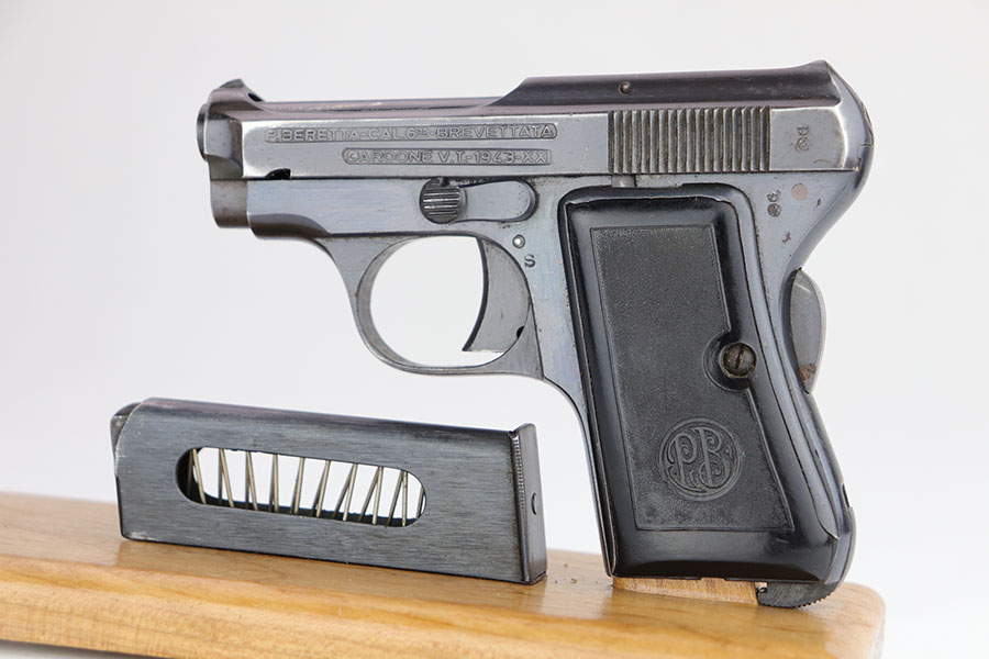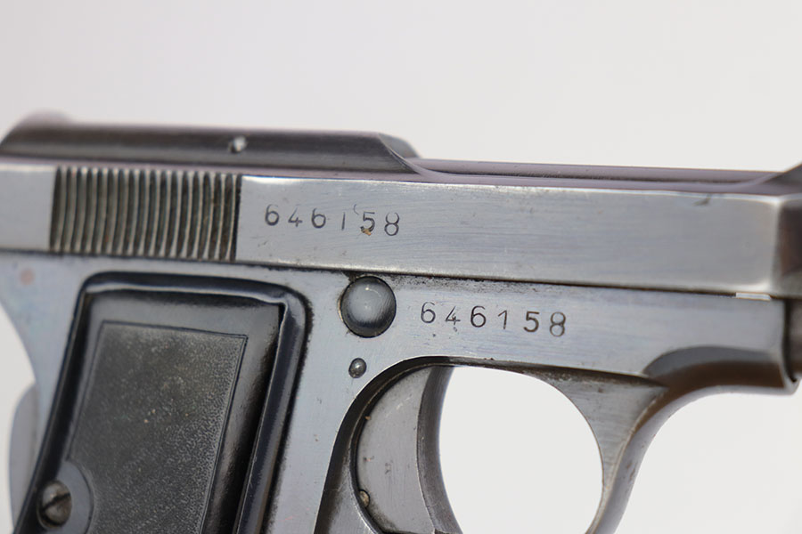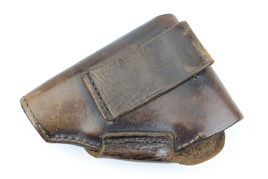 3/17/20 – This is a fairly uncommon Beretta Model 418 that was made in Italy during the Nazi era.  Some of these have been attributed to German soldiers, but do require further provenance than the one listed here.  The pistol has standard high edge wear from the holster, and some notable oxidation of the straps.  Terrific bore and grips.  Correct magazine.  Comes with an unmarked holster that fits the gun well and could be period original, just haven’t encountered many holsters for this model.