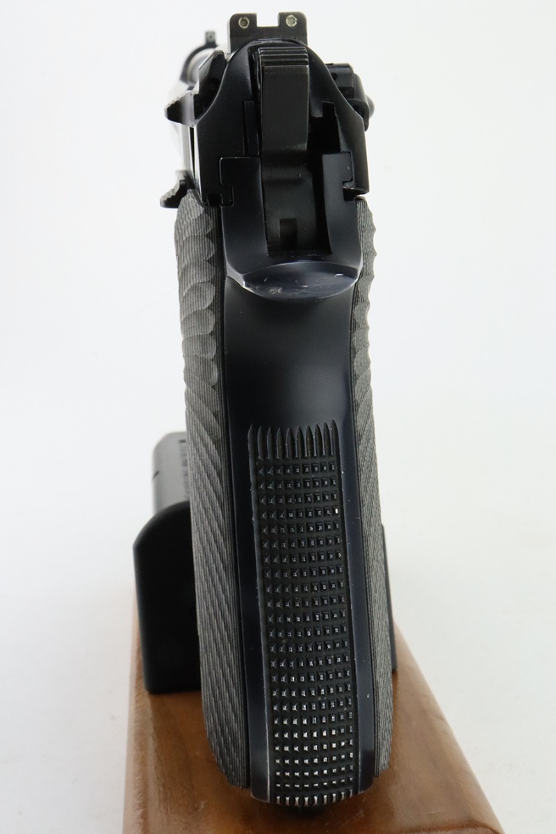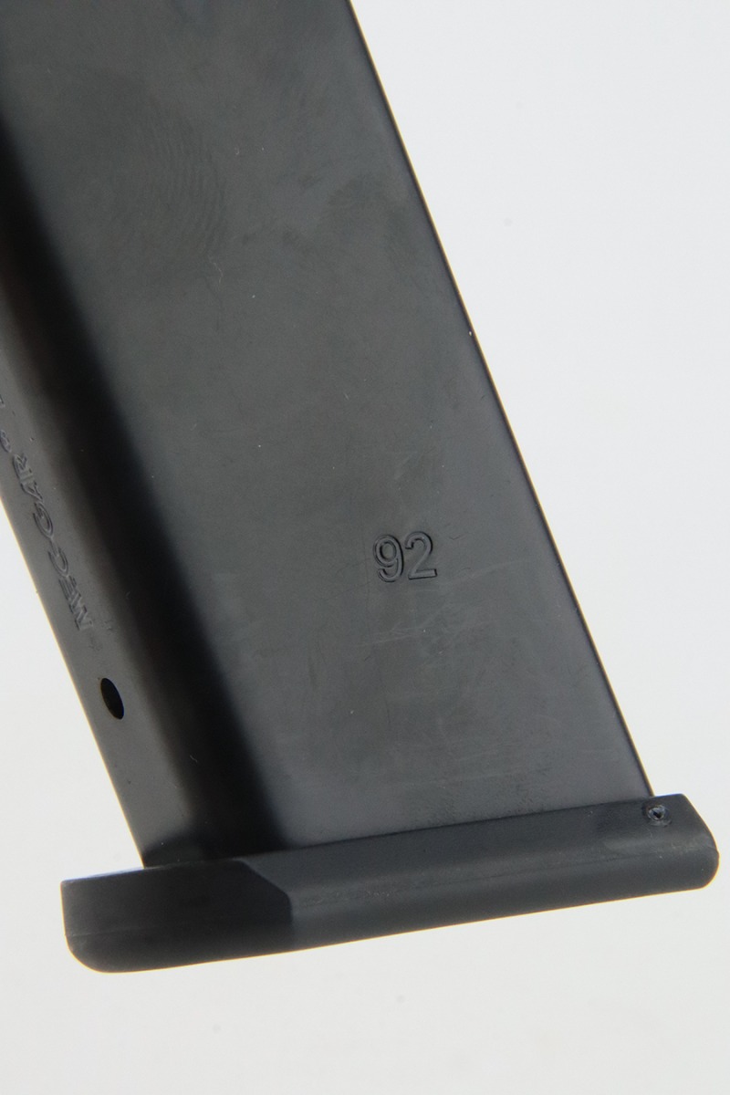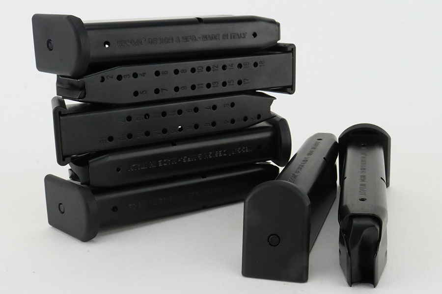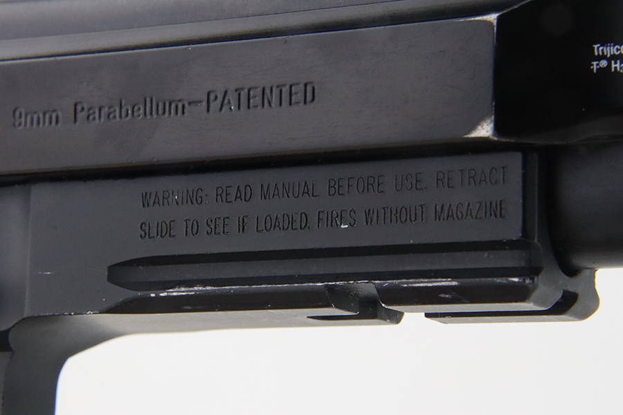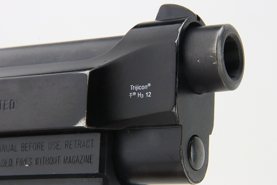 2/2/24 – This is an excellent example of a Beretta Model M9A1, chambered in 9mm. It comes with seven magazines. Overall, it is excellent, but there are some light scratches and handling marks here and there on the slide and on the front strap. Fitted with really nice composite black and grey composite grips. Minty bore.