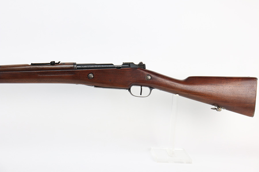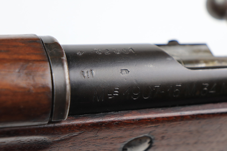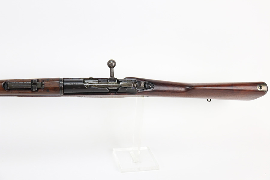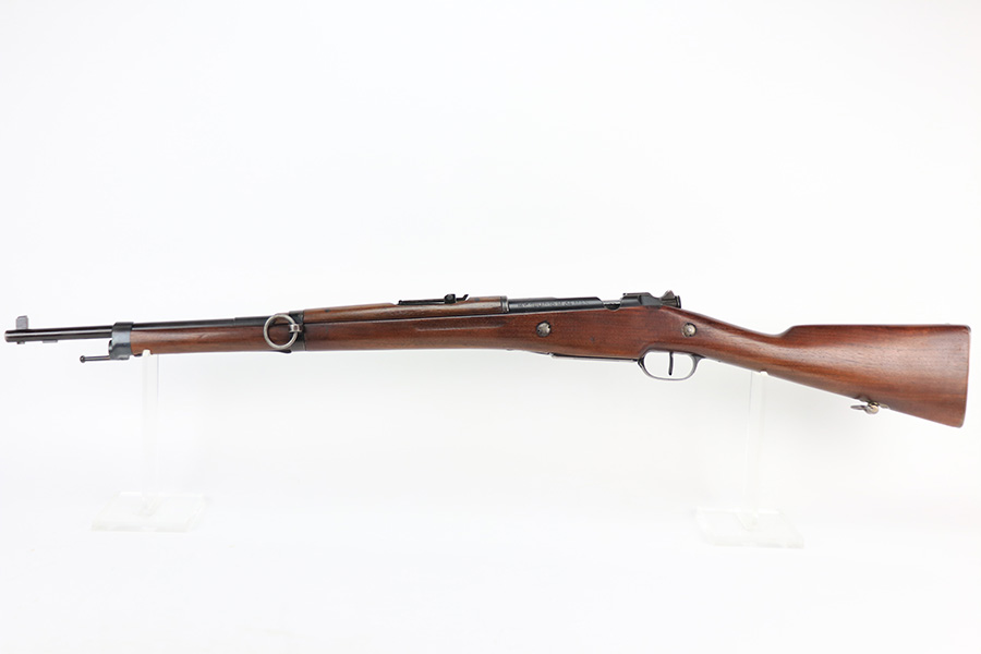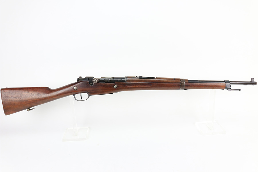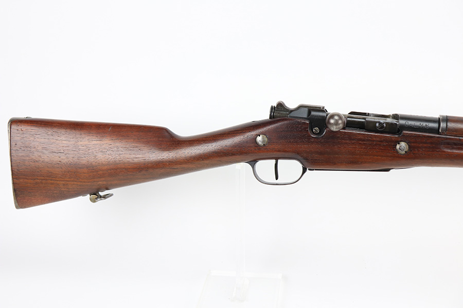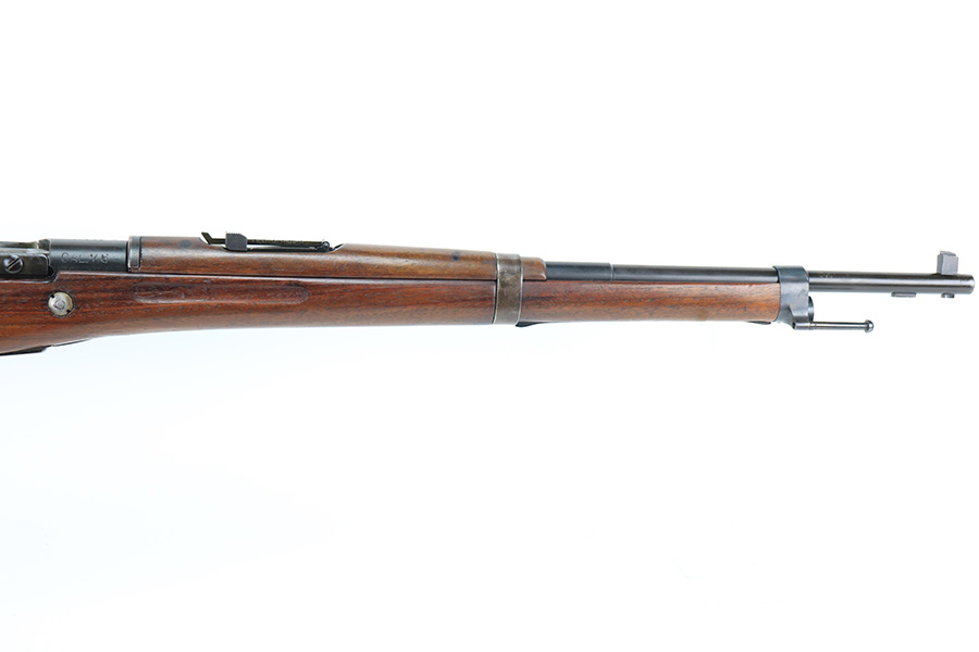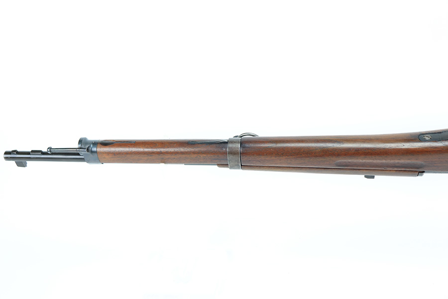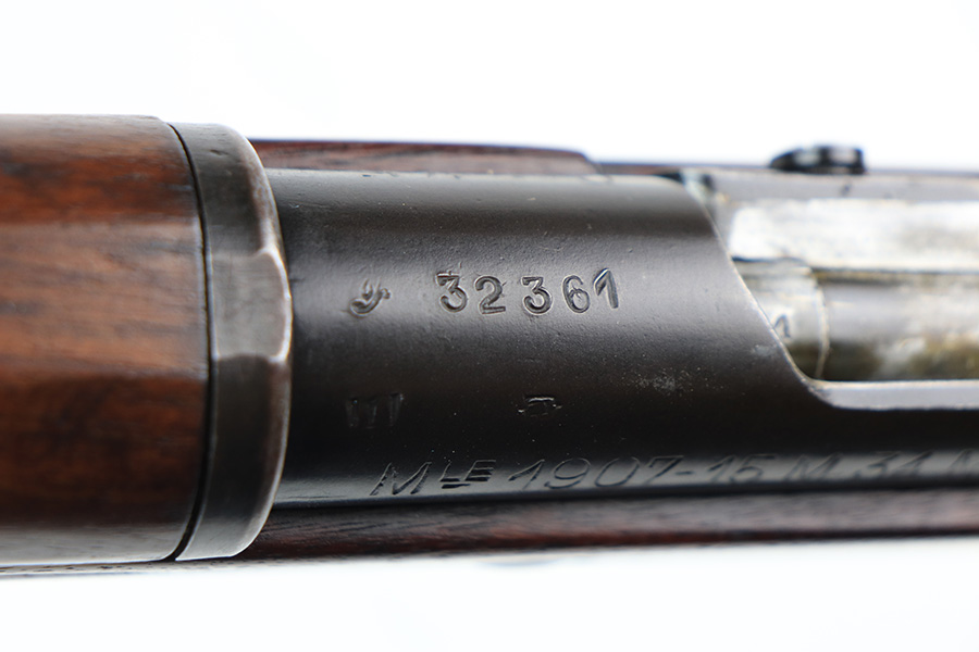 2/17/22 – This is an excellent example of a matching and original MAS Model 1907-15 Berthier rifle. Matching trigger housing, bolt and receiver. Nice finish throughout with minor patina on receiver and some wear on the magazine floorplate. Minty bore and excellent stock. Chambered for 7.5mm French. The Model 1907-15 was issued to colonial troops, to the French Foreign Legion and to many minor allies (e.g. Russian Legion in France, Serbia, Greece, American Expeditionary Force African-American regiments detached to the French Army). It was also issued to some French regular infantry regiments after 1916 in order to bring relief to an endemic shortage of the Lebel rifle although well over 2 million Lebel rifles had already been produced between 1887 and 1917.