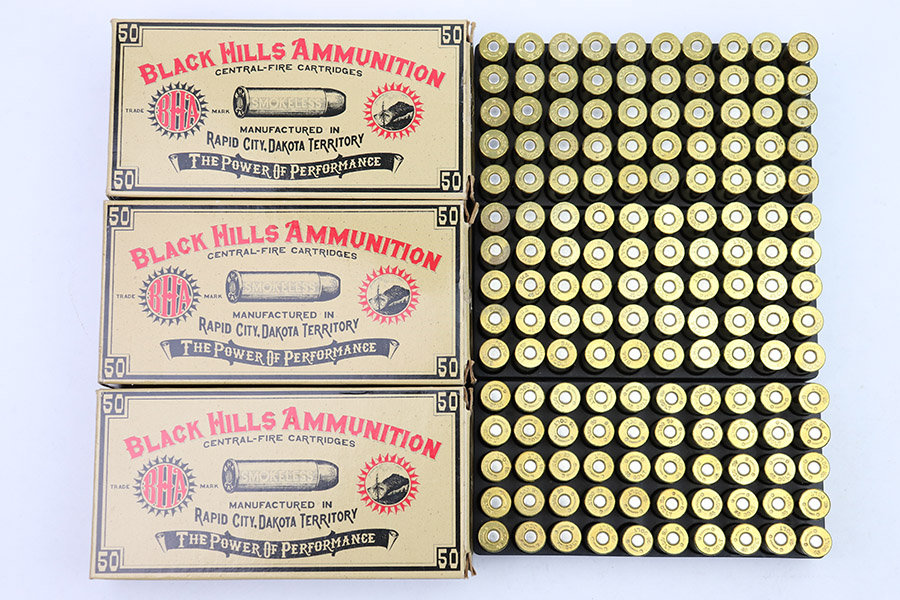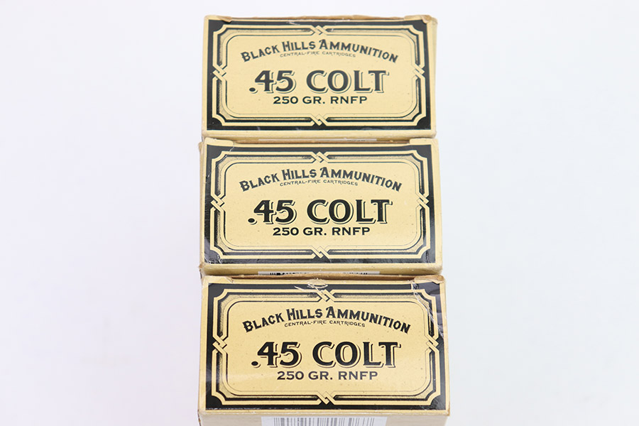 11/1/22 – This is 150 rounds of Black Hills Ammunition .45 Colt 250 Grain RNFP. The ammo is in excellent condition and comes in the original boxes as shown.
