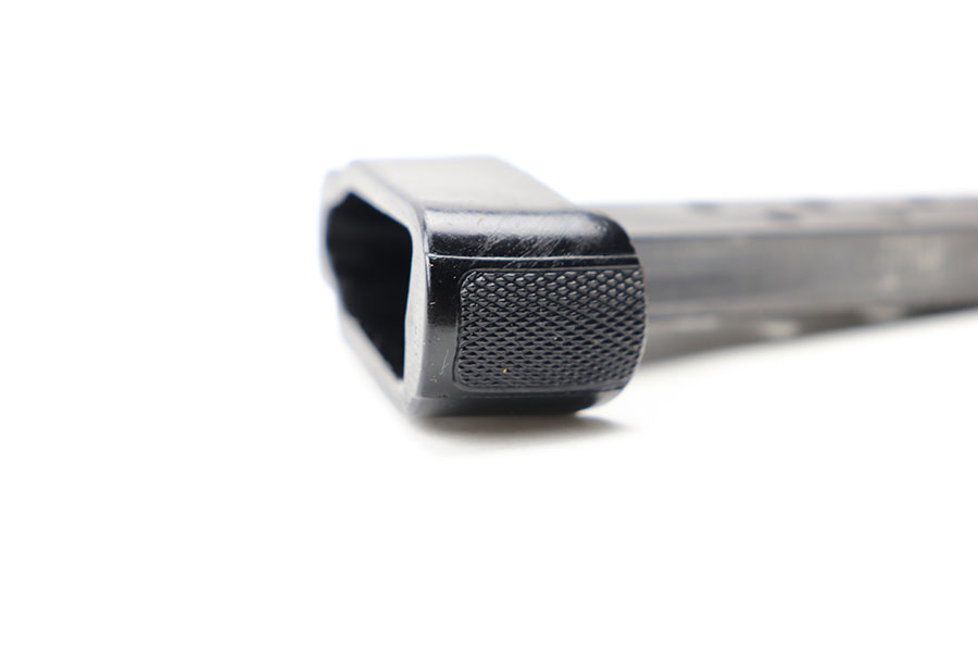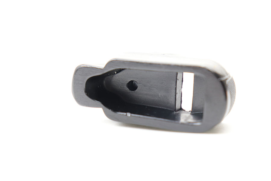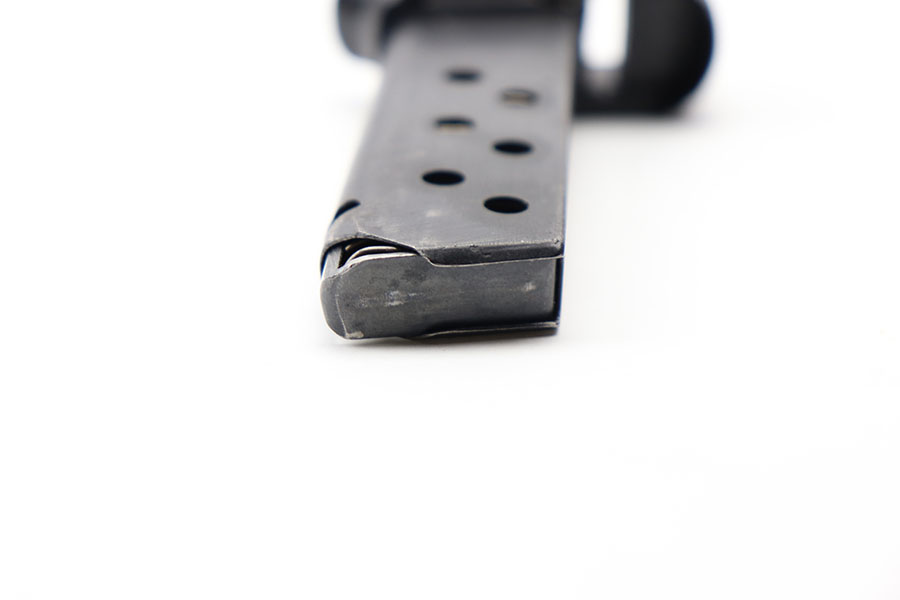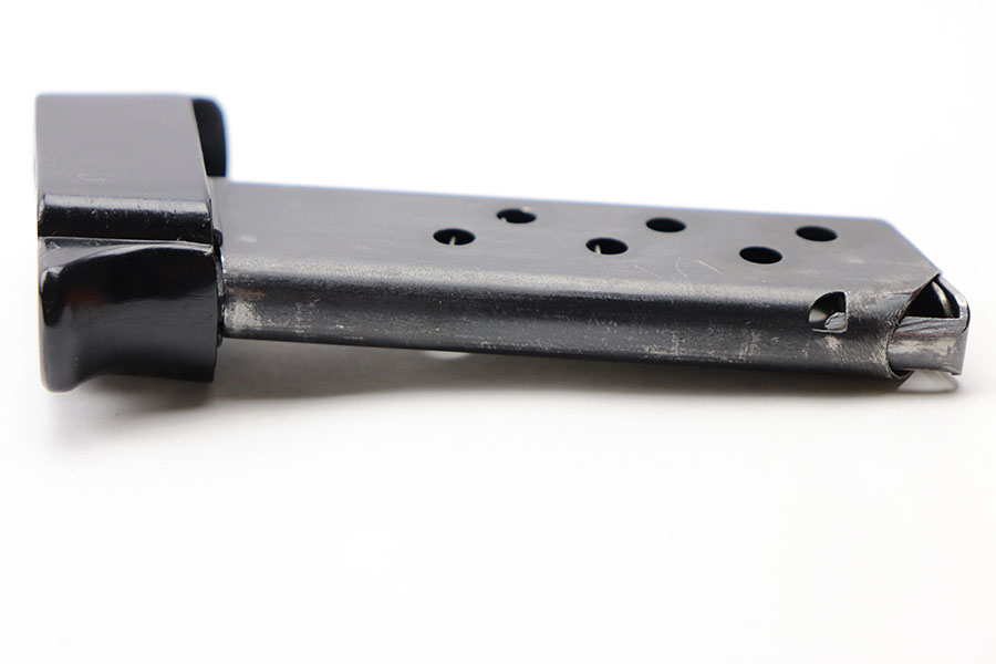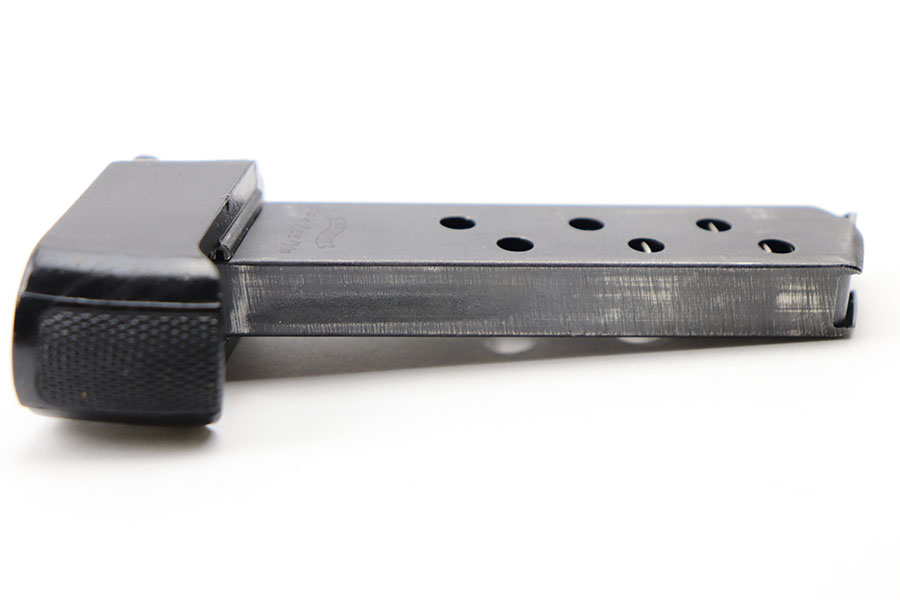 5/5/21 – This is a rare Walther PPK magazine with a black bakelite finger extension. The magazine is later wartime variation, which is appropriate for this color finger extension. Excellent finish with no rust or pitting and a fully functional spring. No cracks or chips in the bakelite extension.