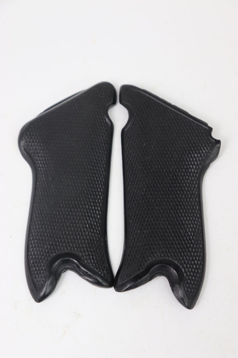 7/18/24 – This is a high quality, collector “place holder” pair of Black Widow grips. Made for the “Black Widow” Luger. The texture, fit and appearance are nearly exact. Great checkering. The grips are in excellent condition with no cracks or chips.