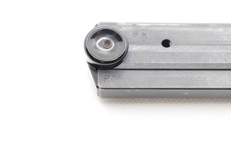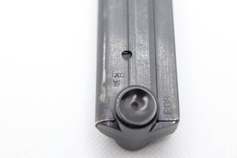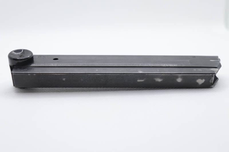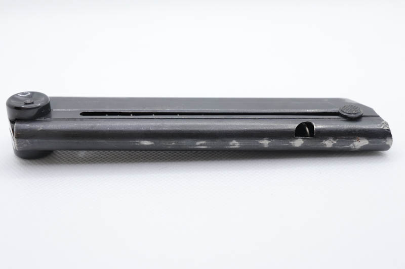 10/9/20 – This is an original “FXO” Mauser Luger magazine with a blank bakelite base. These are fairly scarce / desirable magazines. The frame has two e/37 proof stamps along with an “fxo” and “P.08” stamp. The base has never been stamped or altered. There is a bit of wear due to age and use. No rust or pitting, and a fully functional spring. Guaranteed original and authentic.
