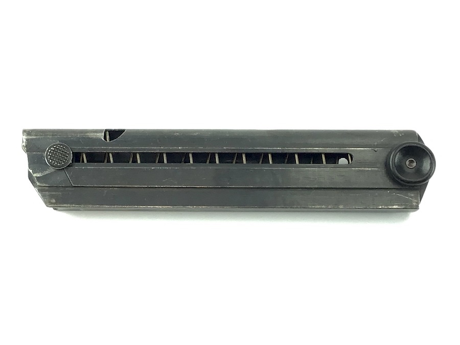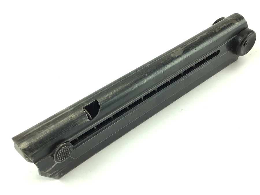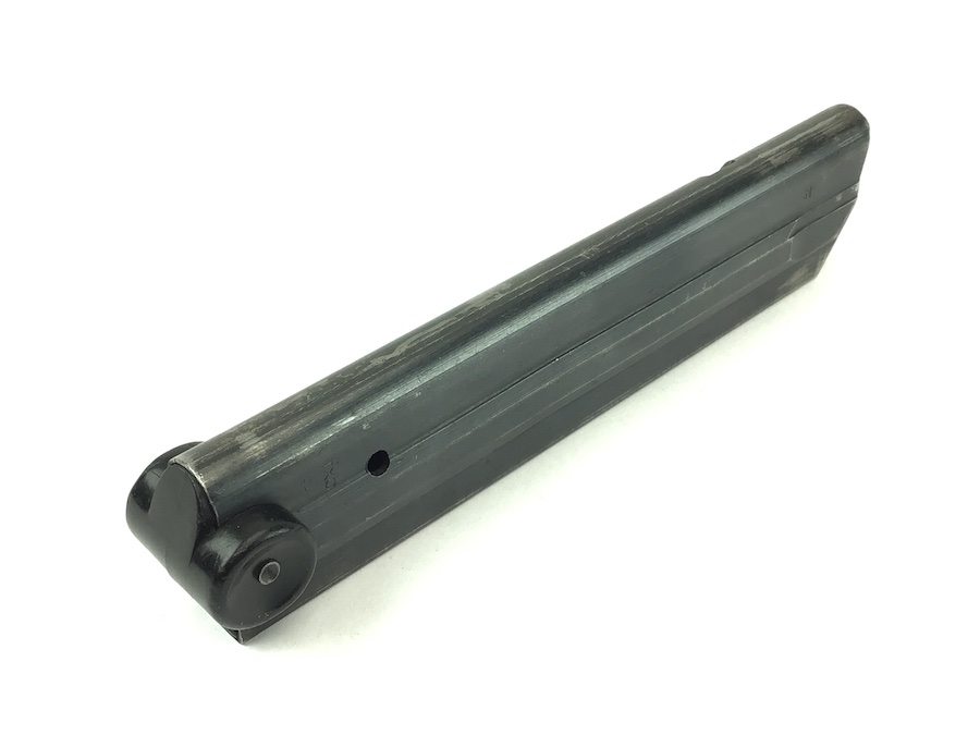 3/11/21 – This is an original Black Widow Luger magazine from WW2. Excellent black bakelite base with no cracks or chips. The magazine tube has minimal wear and overall is excellent. Strong fully functional spring. Stamped with the correct “fxo” and 2 eagle 37 proof marks.