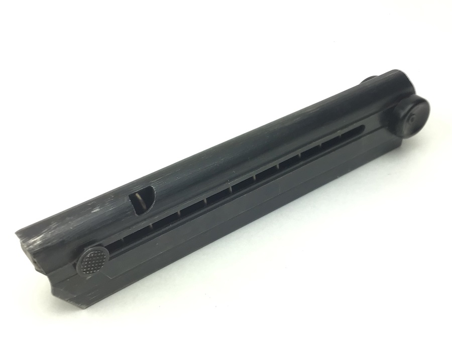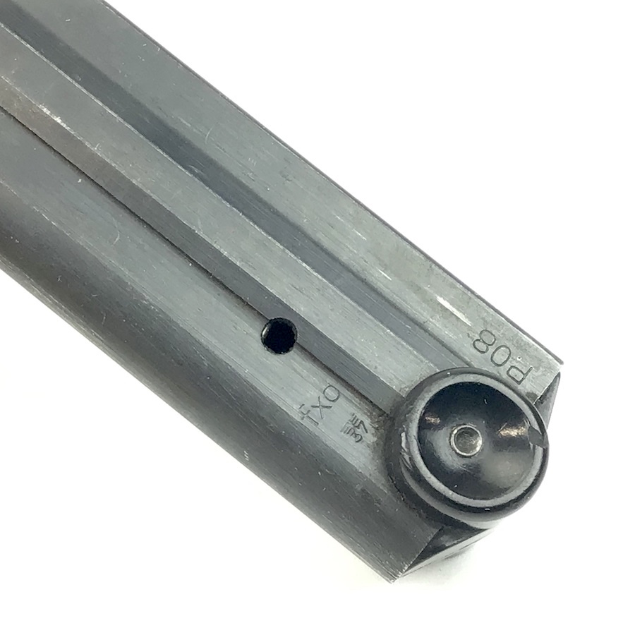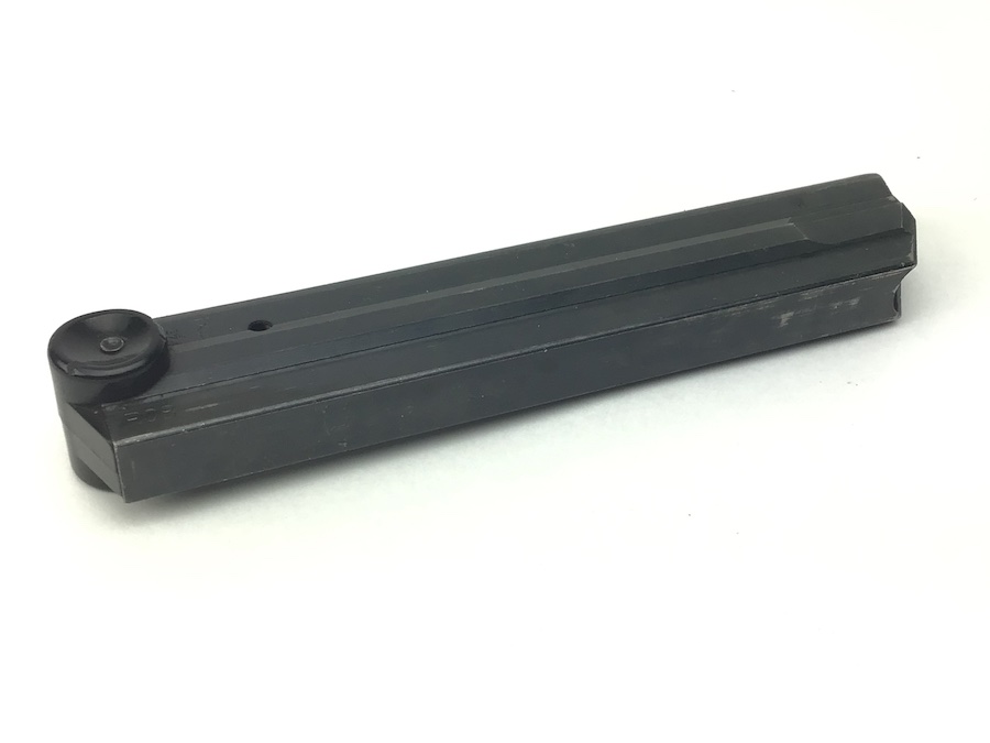 6/15/21 – This is an original Black Widow Luger magazine from WW2. Excellent black bakelite base with only minor chips. The magazine tube has minimal wear and overall is excellent. Strong fully functional spring. Stamped with the correct “fxo” and 2 eagle 37 proof marks.