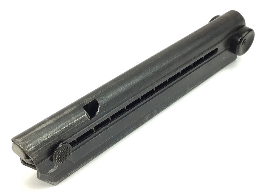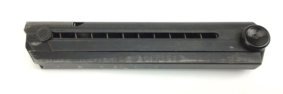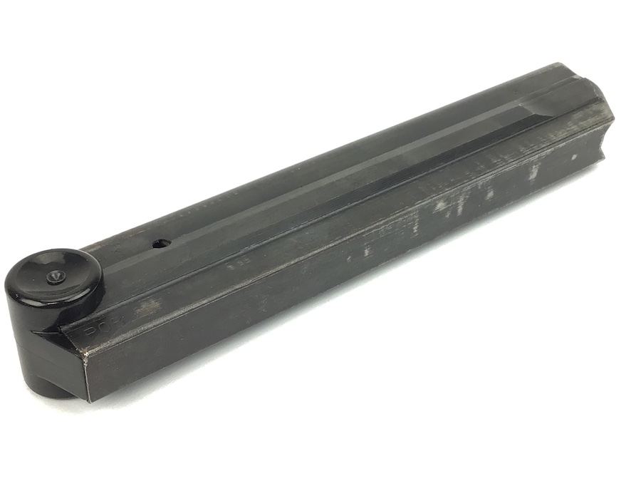 11/29/21 – This is an original Black Widow Luger magazine from WW2. Excellent black bakelite base with no cracks or chips. The magazine tube has minimal wear and overall is in great condition. Strong fully functional spring. Stamped with the correct “fxo” and 2 eagle 37 proof marks.