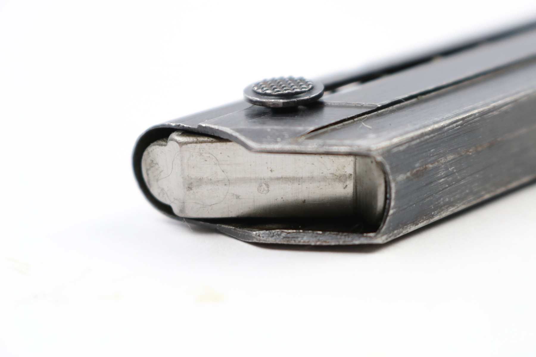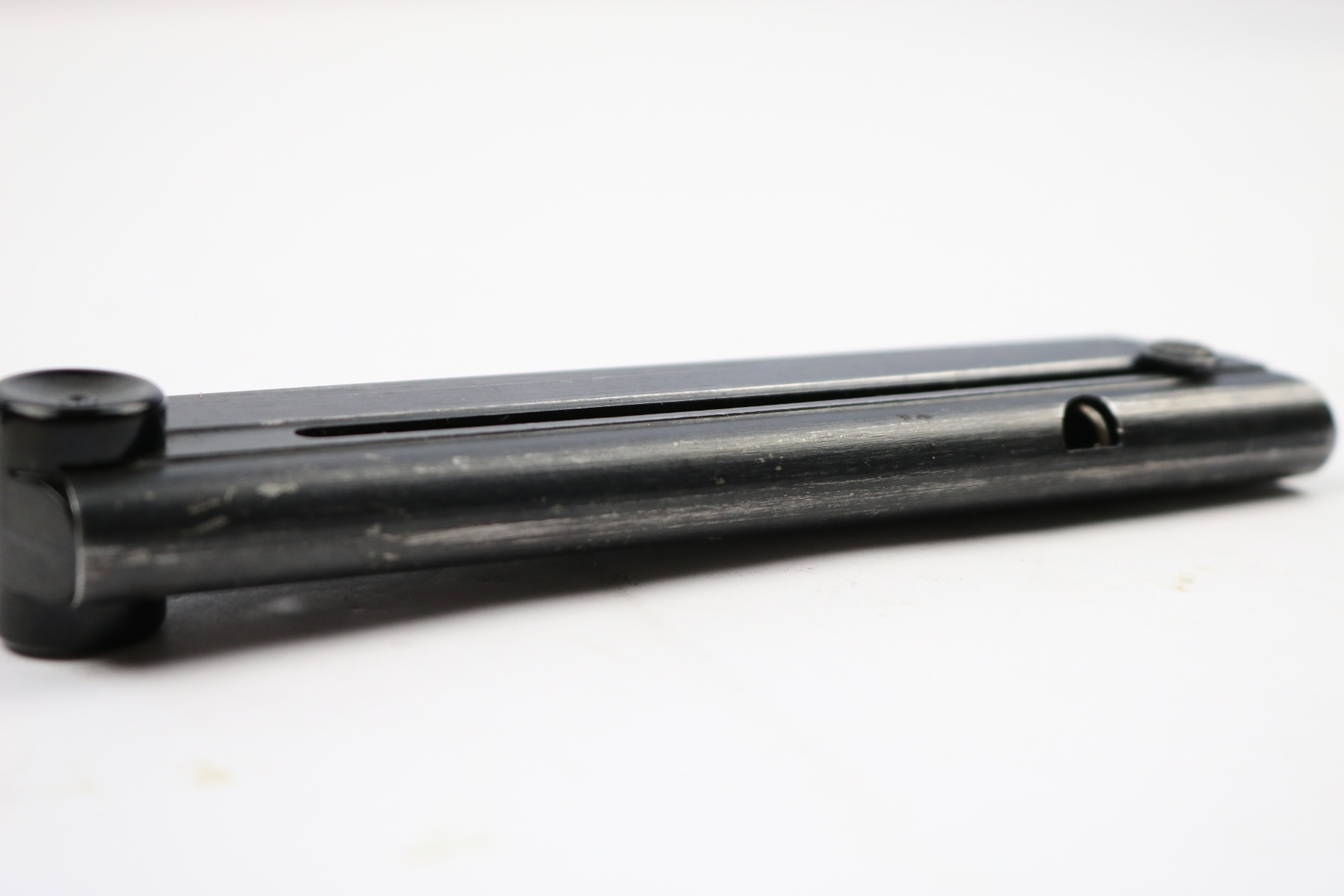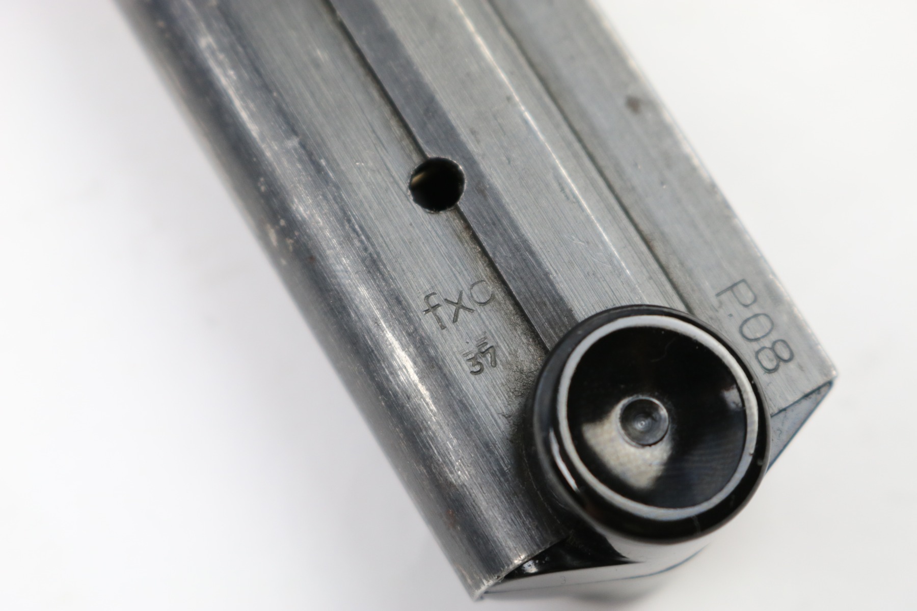 6/15/18 – This is an original WW2 production black widow luger magazine. Excellent and fully functional. Proper eagle/37 proofs and “fxo” stamp. Minimal use and aging wear. Guaranteed original.
