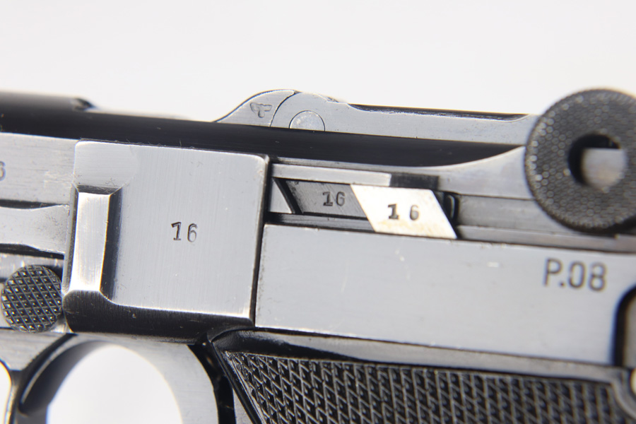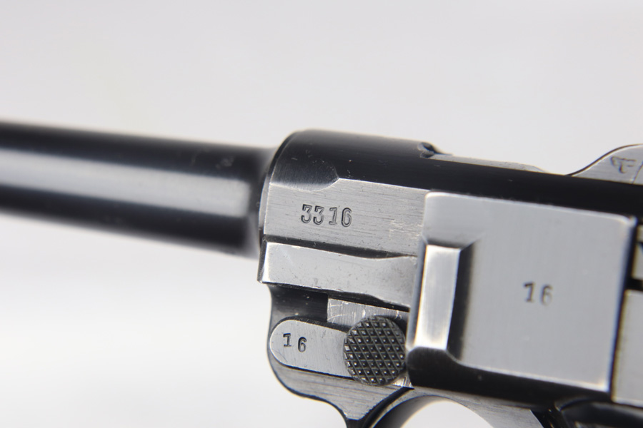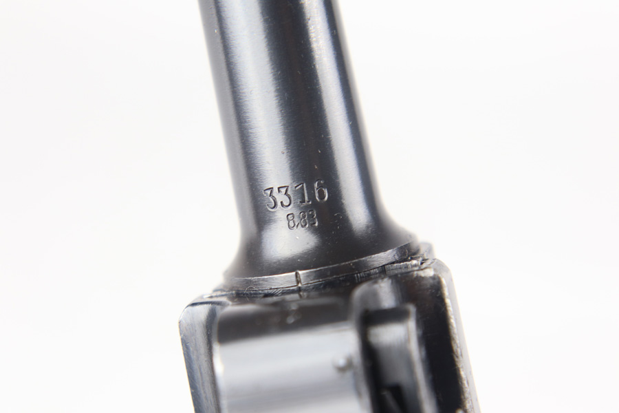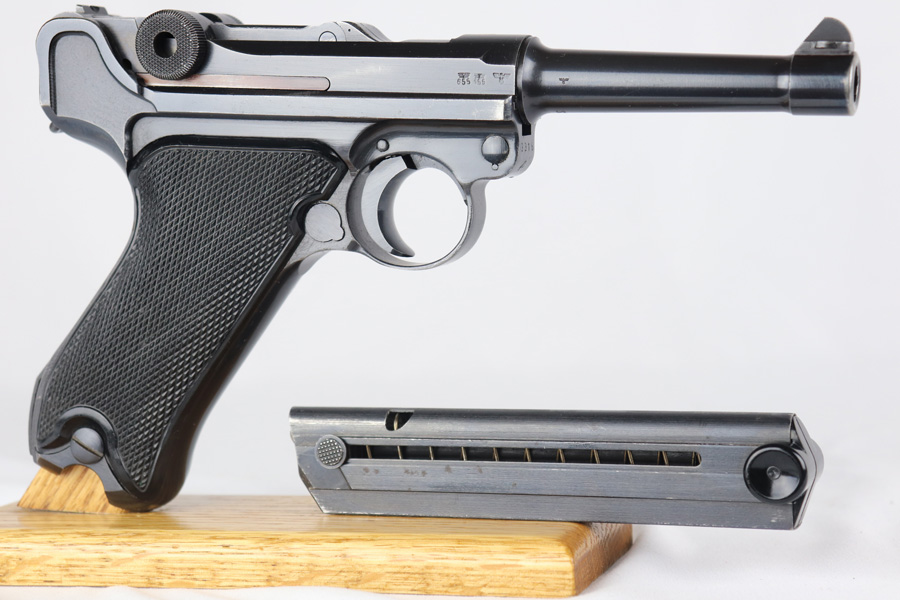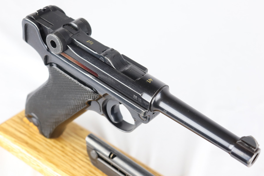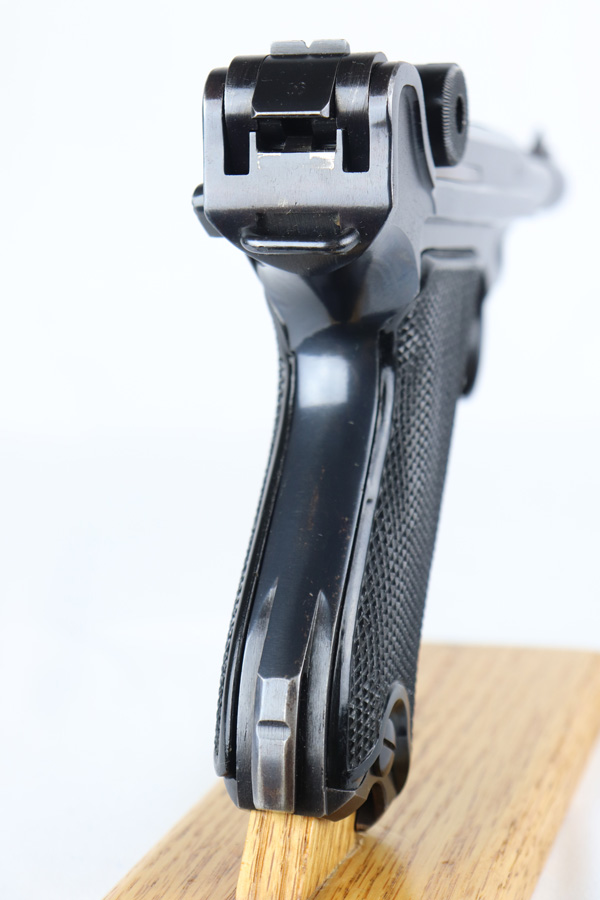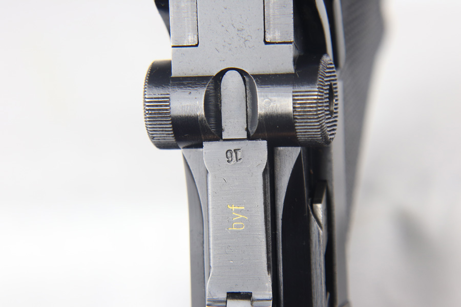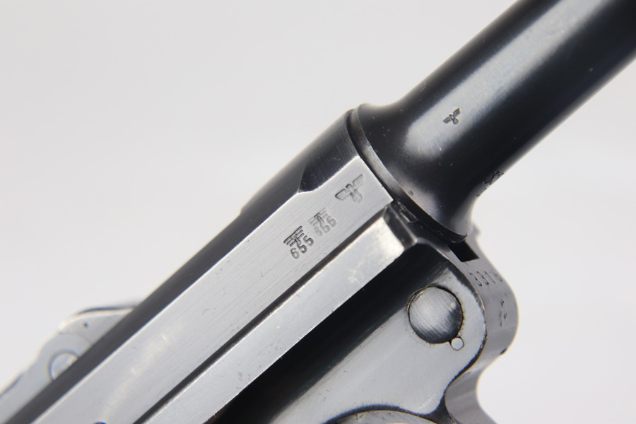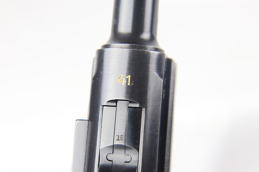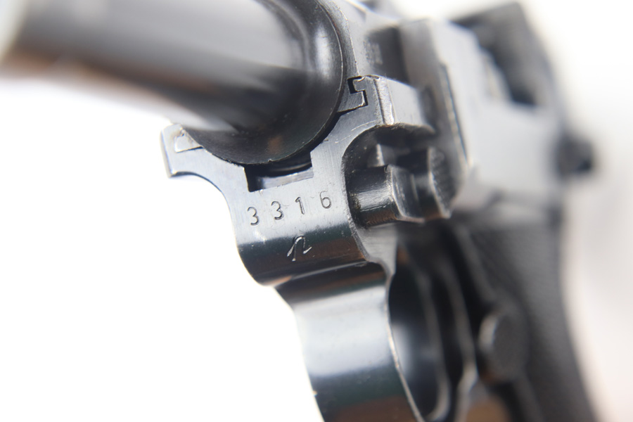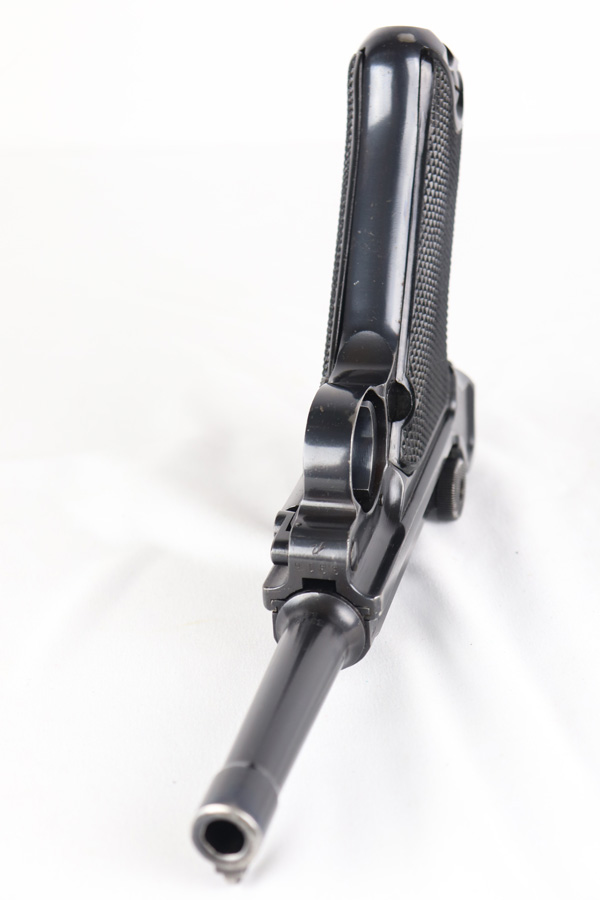 11/20/18 – This is an excellent, all matching Black Widow Mauser Luger from 1941. The original finish rates at 97% or so with basic high point wear, and minor finish loss on the trigger guard and front strap. Fantastic Black Widow grips and magazine. Excellent, shiny bore.