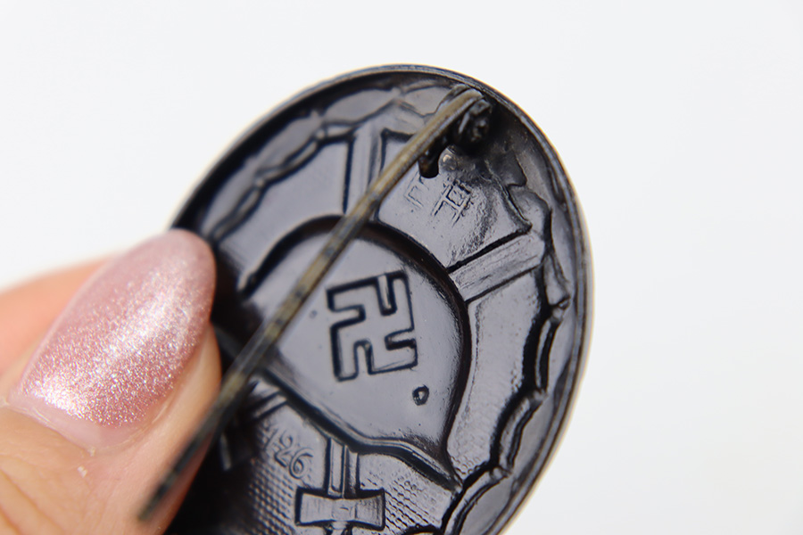 1/2/24 – This is a WW2 German Black Wound badge, paired with a German Party pin from WW2. The pin is a later war example with zinc construction and a painted finish. There’s surface wear and mild paint loss as shown. The wound badge is in excellent condition.