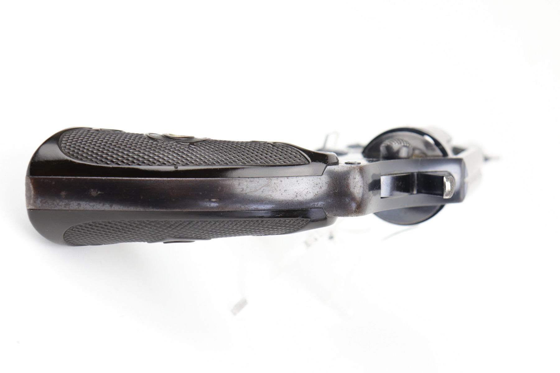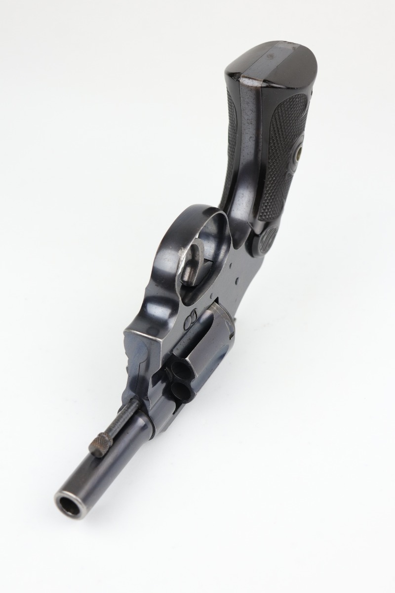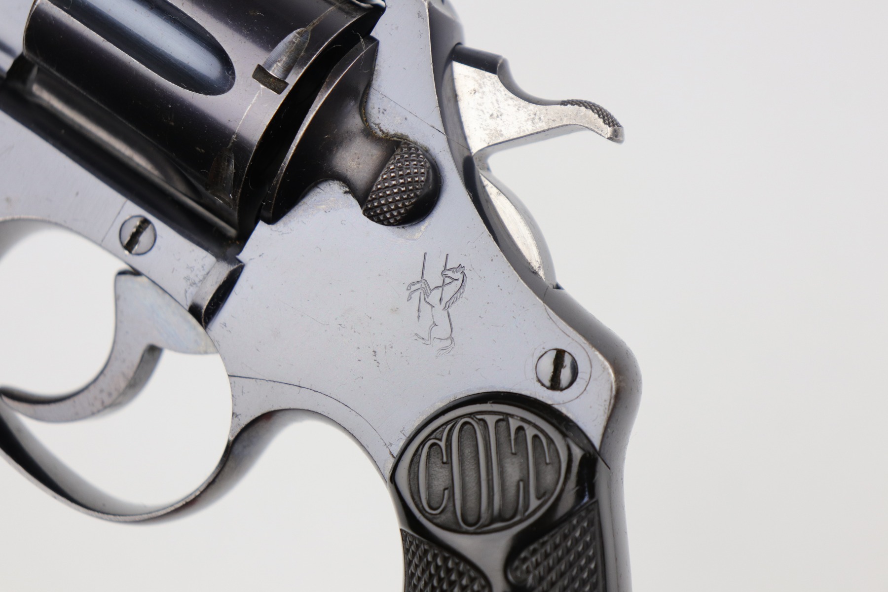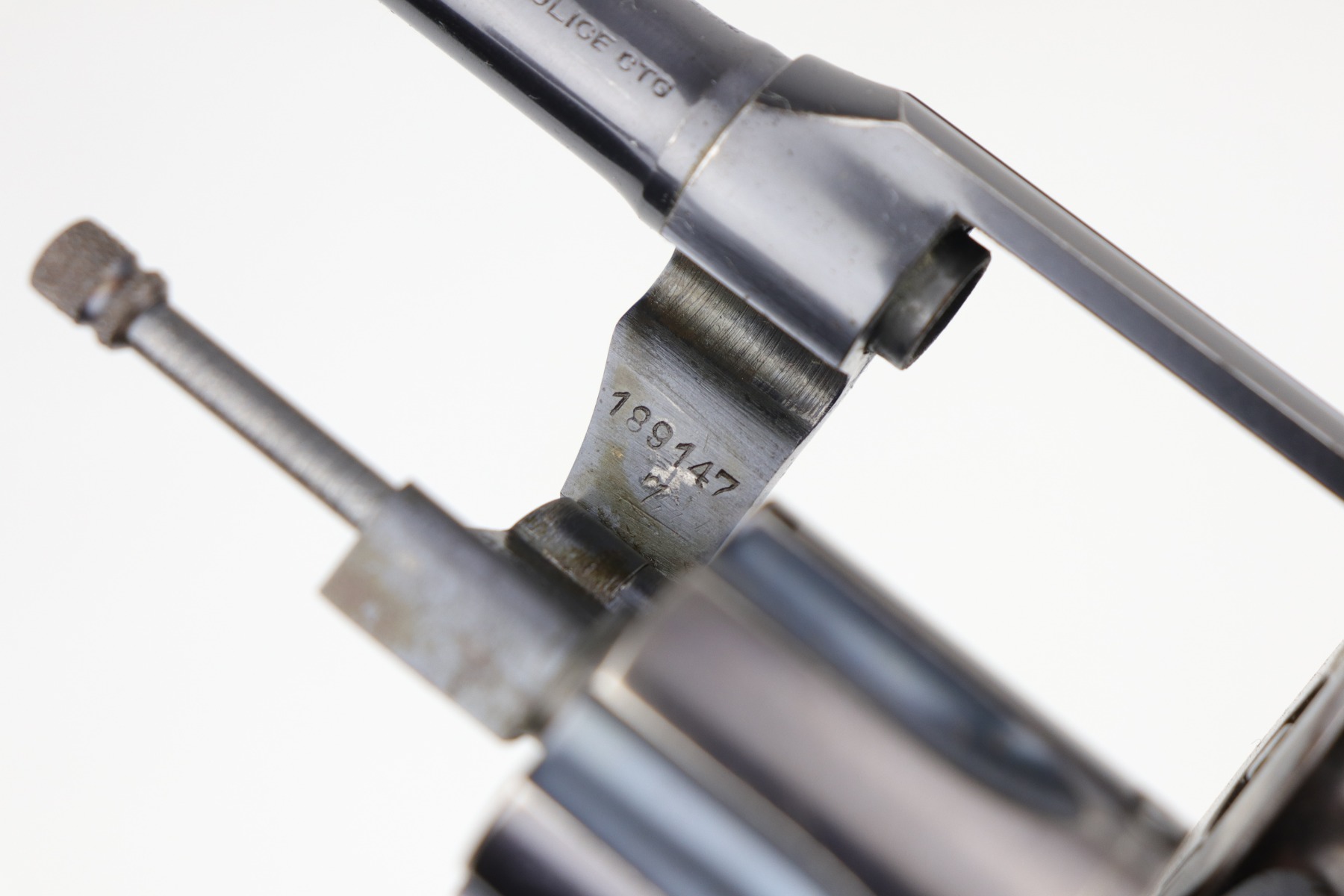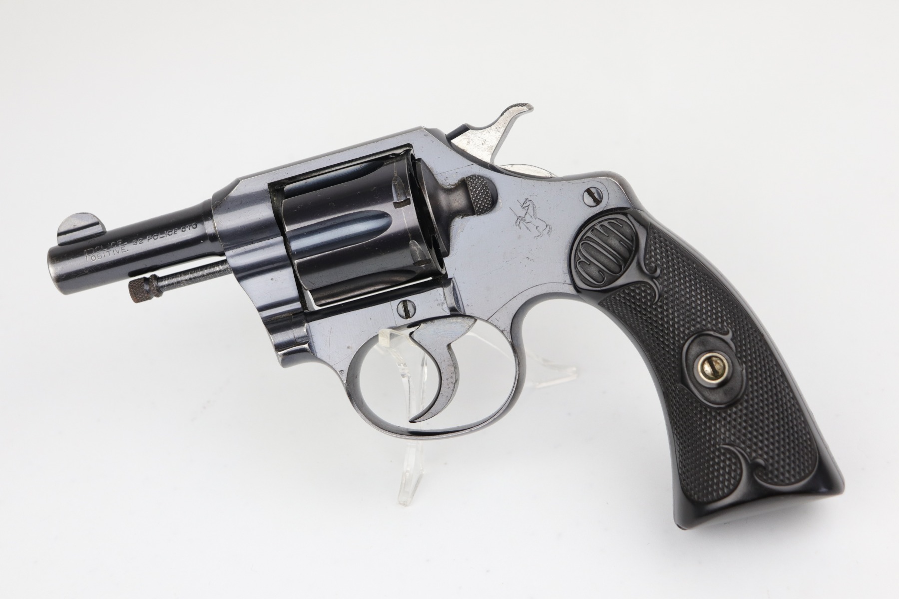 5/21/20 – This is a Colt Police Positive Revolver, chambered in .32 Police. From the serial, it was manufactured in 1923. Overall, the gun is in excellent condition. It has retained about 96% of its original bluing. There is very little actual finish loss. There is minor high edge and muzzle wear. Very faint roll mark on the cylinder. There is minor freckling on the straps. The gun is all matching. The grips are original and excellent. Tight and very smooth action. The bore has good rifling, but does have a little freckling in a couple of spots.