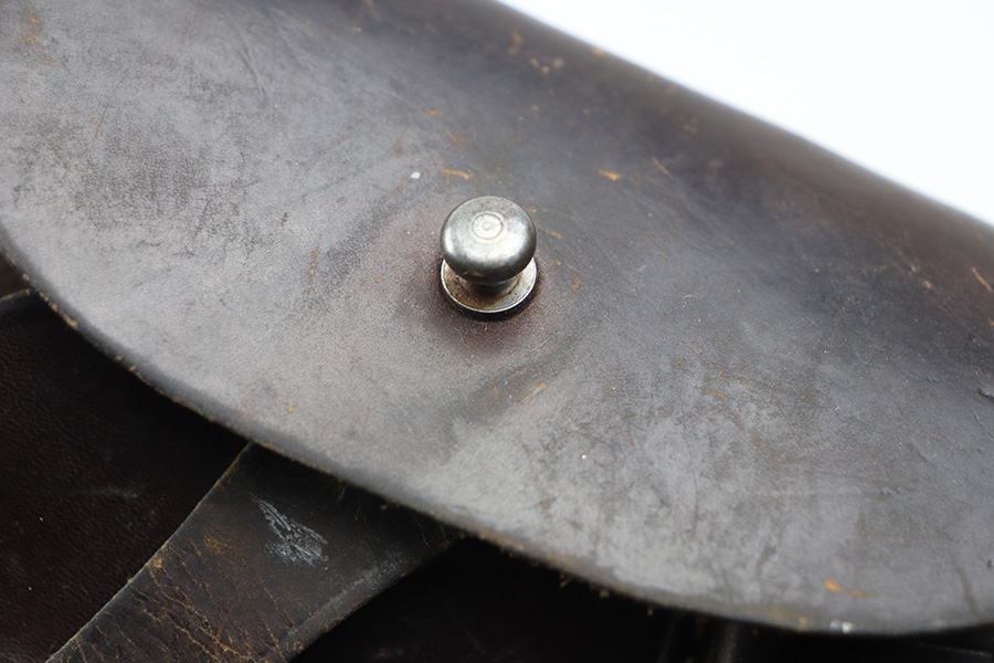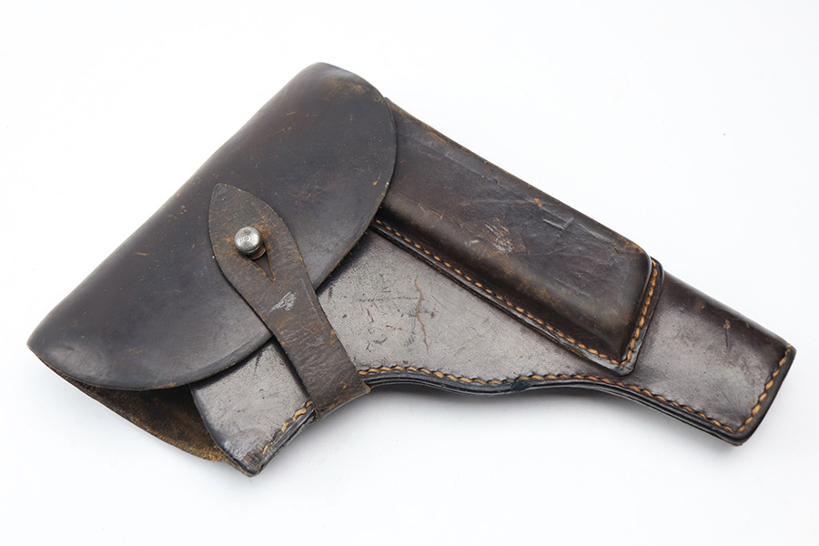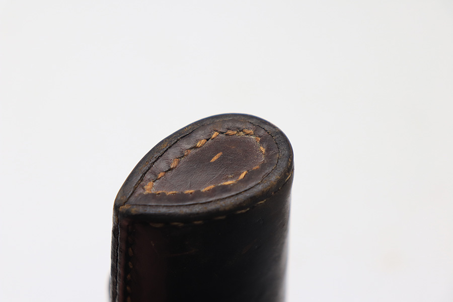 1/18/22 – This is a WW2 BNZ Radom holster. The holster has a very faint interior ink stamp where we can see “bnz” and what is likely a “1944” date stamp. There are no other visible markings from what we can tell, but there’s likely a waffen proof that was once visible. The leather is completely in tact with some mild surface scuffs but no major damage. All original stitching is in tact.
