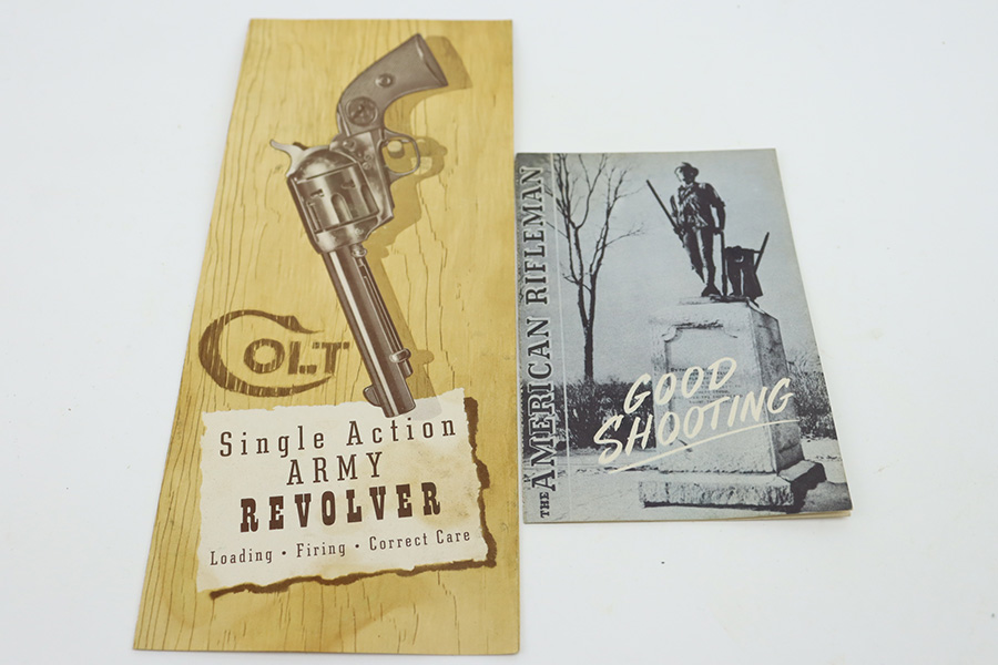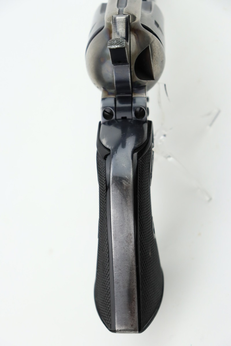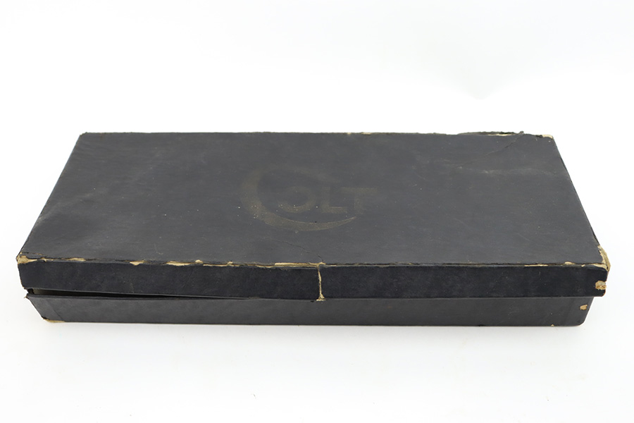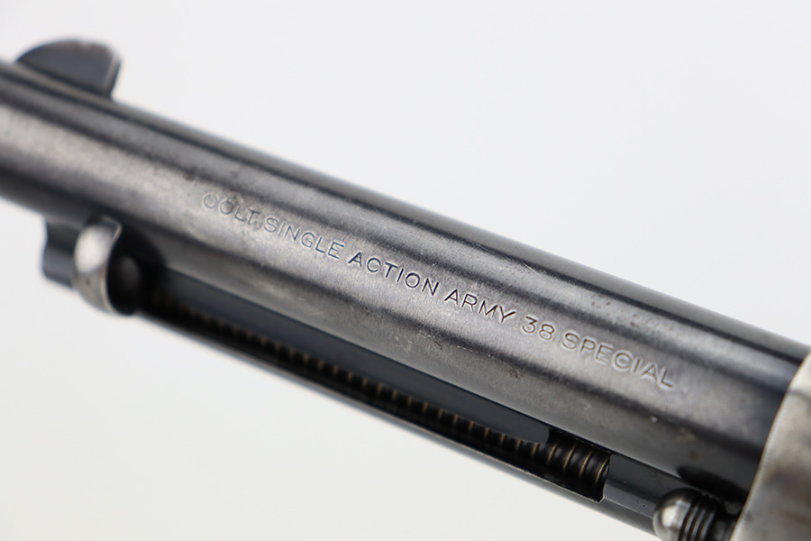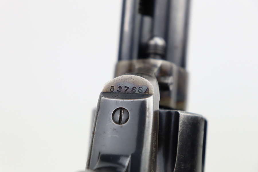 12/26/23 – This is a nice 2nd Generation Colt Single Action Army revolver, manufactured in 1956. Chambered in .38 Special with a 5.5″ barrel. Comes with its original matching-numbered box and owners manual. The original finish rates roughly 60% with noticeable thinning throughout and some tiny scratches here and there. Fitted with black hard rubber grips. Stone-mint bore. Smooth action.