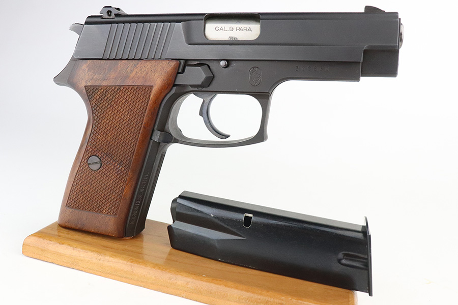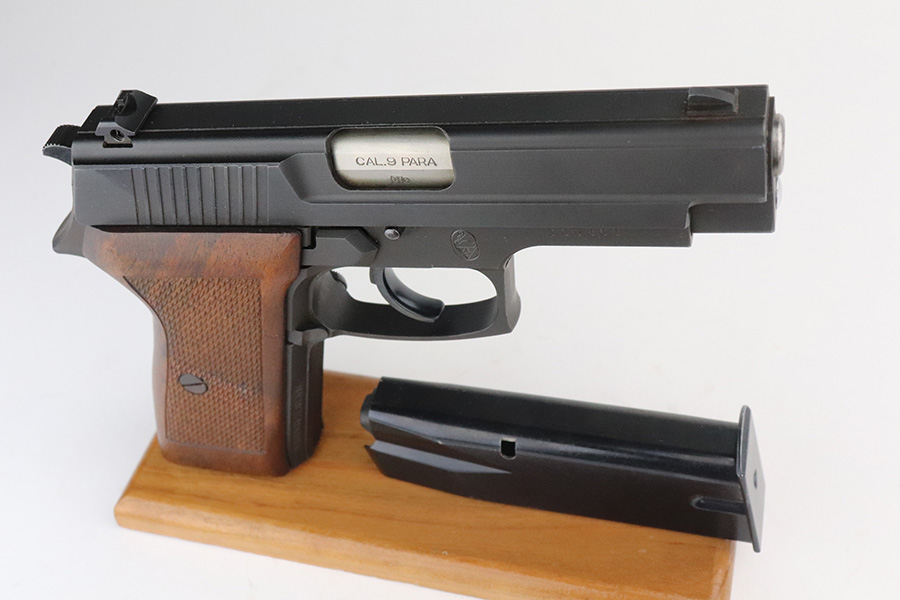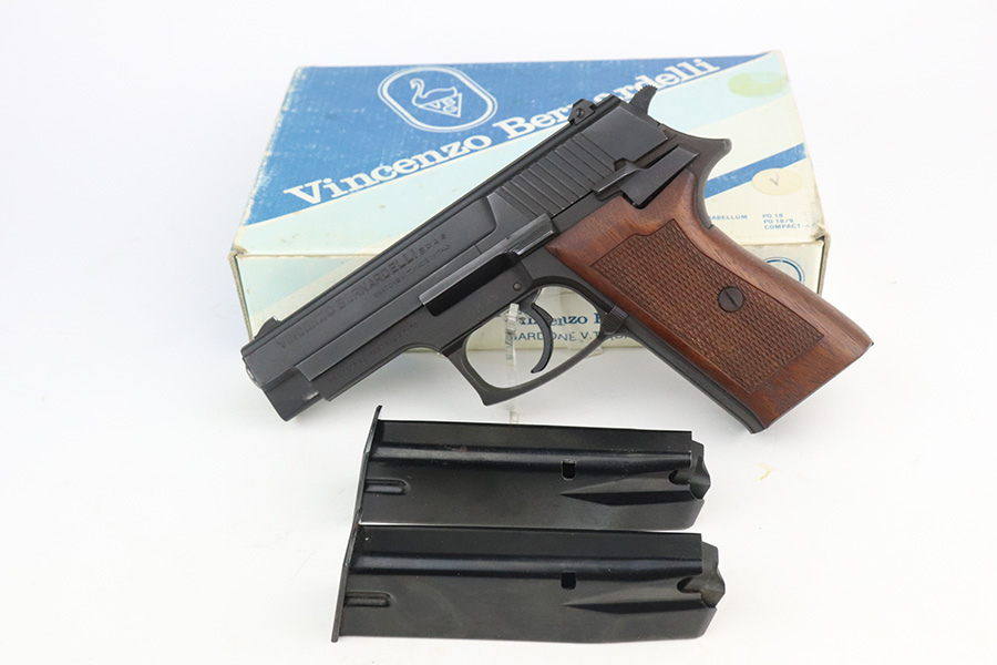 7/21/21 – This is a near-mint Bernardelli PO18 Compact pistol in its original, matching box. The pistol has just a hint of wear on the left side of the slide where it rubs against the inside of the frame. Shiny, excellent bore with minty grips. Double-action with 14rd magazine. Total of two magazines included. 9mm Para. FFL required.