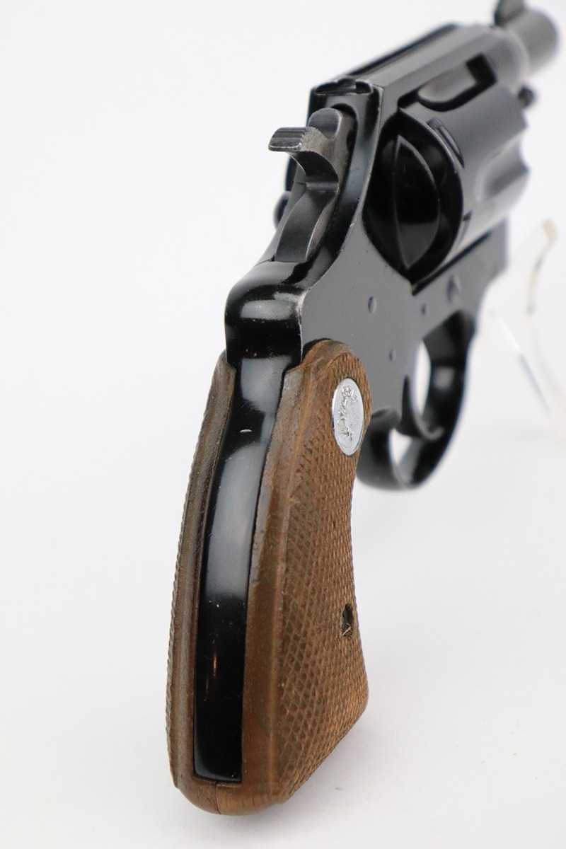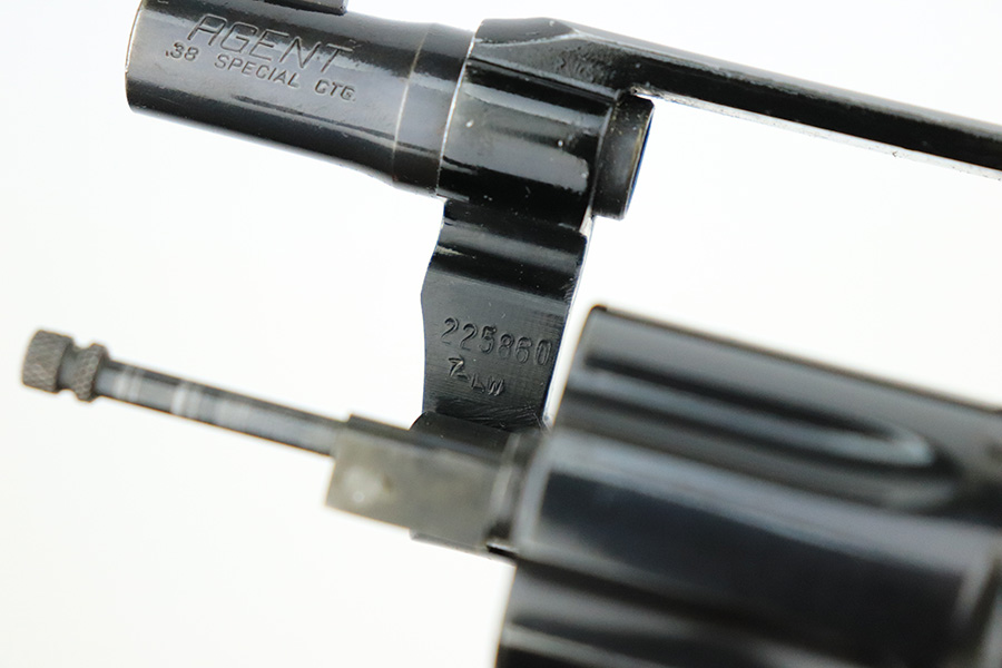 7/8/22 – This is an excellent example of a 2″ Colt Cobra Agent revolver, manufactured in 1967 and chambered in .38 Special. It is all matching and comes with a cardboard box that is close in serial number but not matching to the gun. The gun itself has retained about 95% of its original finish. There is minor thinning on the barrel, some very tiny scratches here and there, and a blemish in the metal on the right side of the frame. Comes with excellent Walnut grips. Mint bore. The cylinder is tight and the action is very smooth.