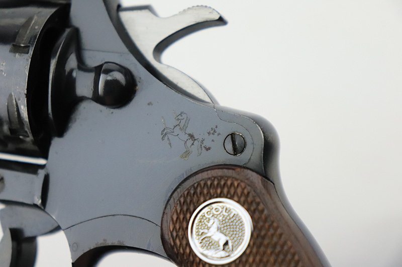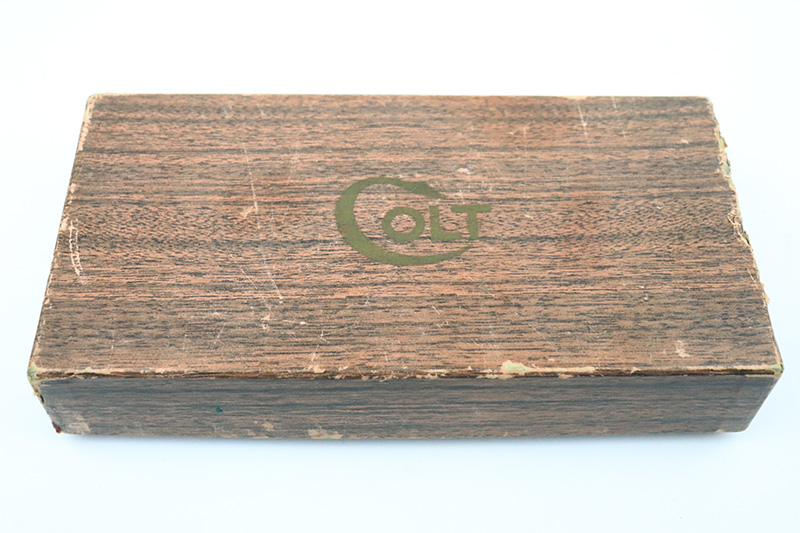 9/16/22 – This is a nice Colt Detective Special from 1956 in its original box. The revolver has maybe 92-94% of the original blue remaining with most of the wear on the cylinder and sides of the muzzle. Minty bore and excellent grips. Comes with the Colt handbook and original warranty card, which is serialized to the gun. The box also has the matching serial on the bottom.