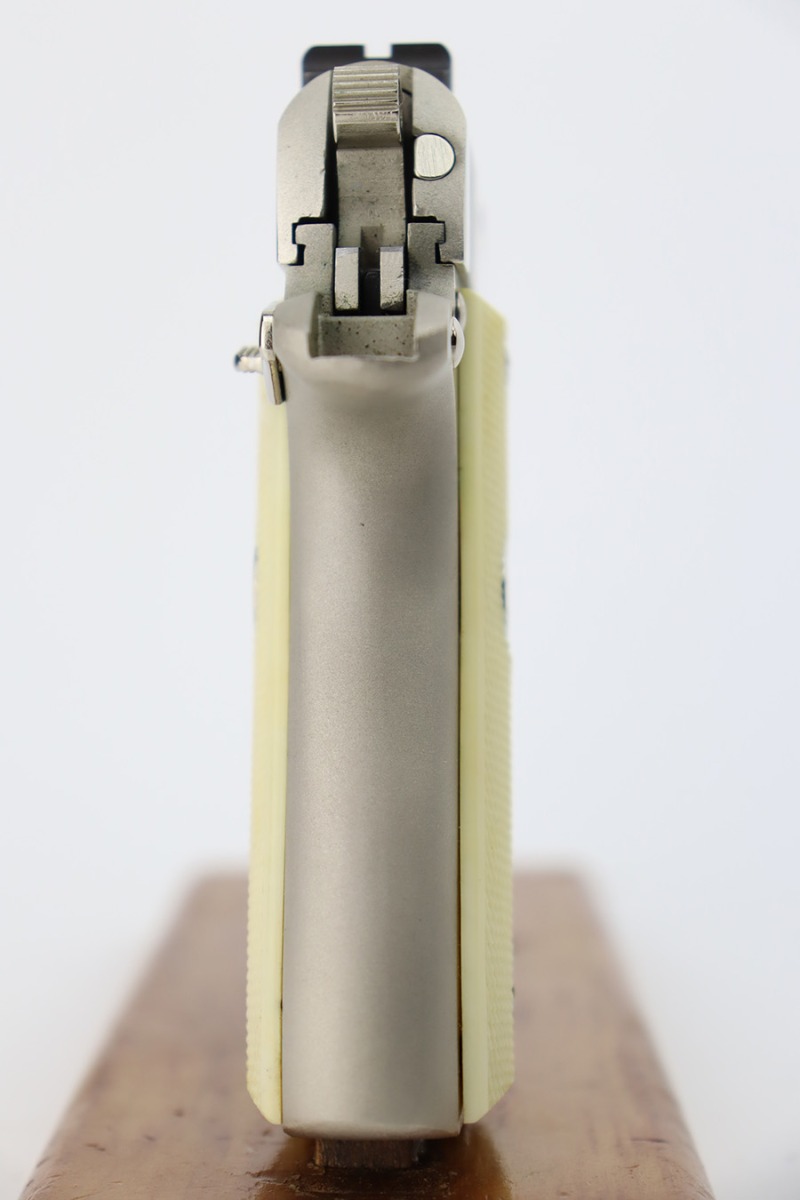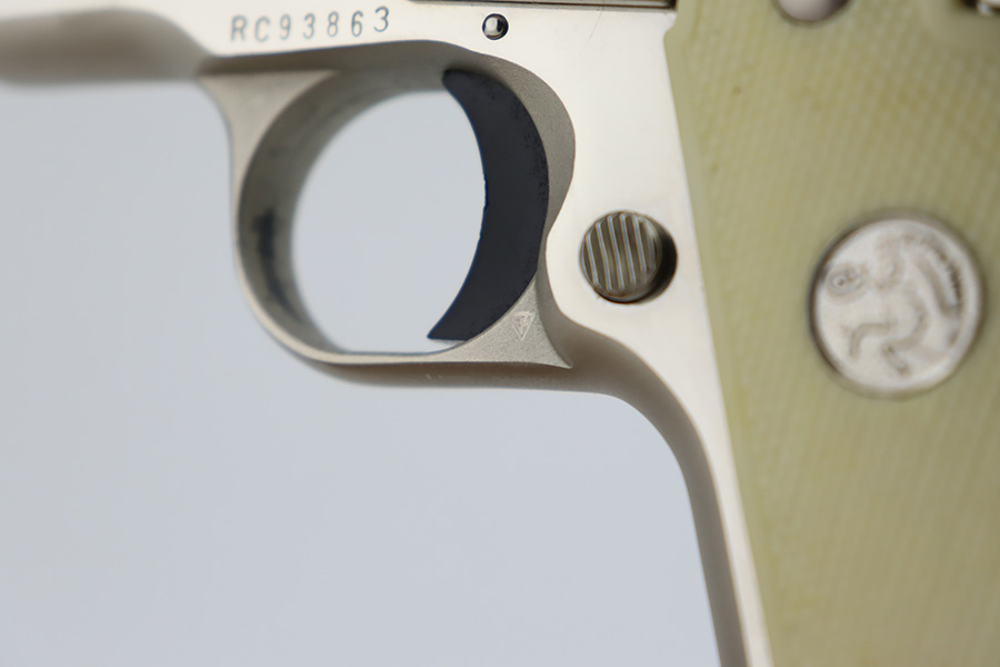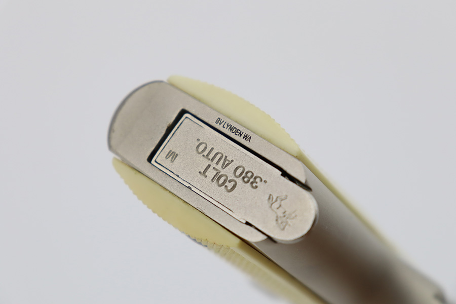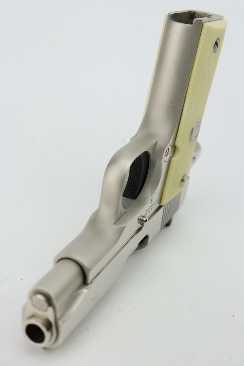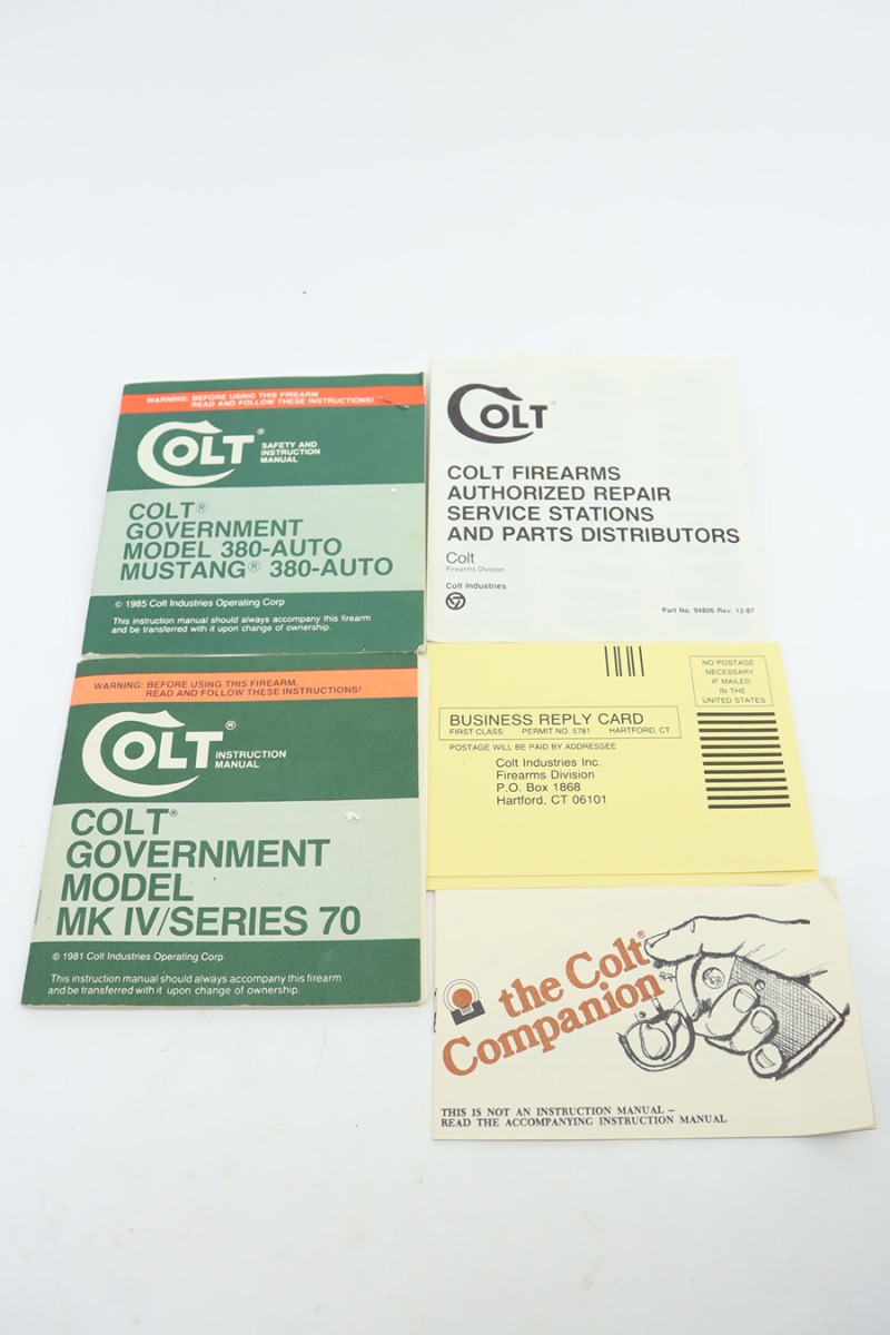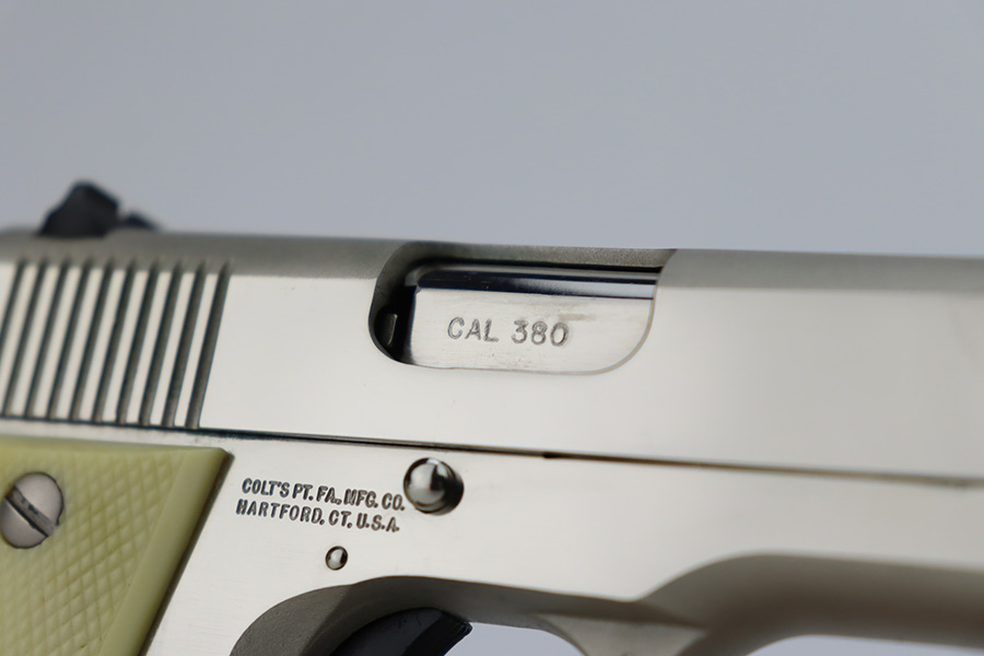 1/4/24 – This is a near-mint example of a Colt Government Model 380, manufactured in 1988. It is all matching and comes with its original matching-numbered box, owners manual, and sales papers. The gun shows almost no sign of wear or use – just some micro-scratches in the finish (typical). Fitted with nice white plastic grips. Mint bore.