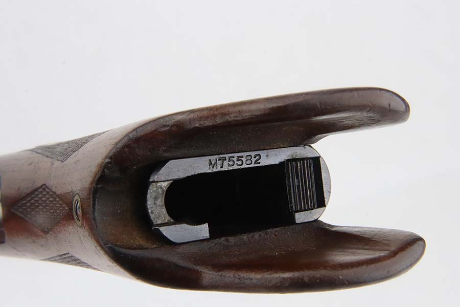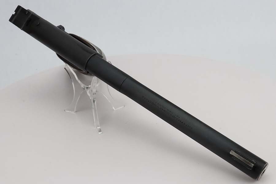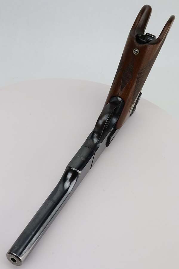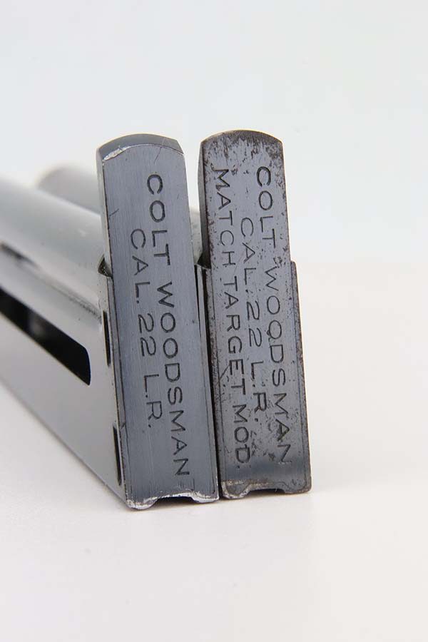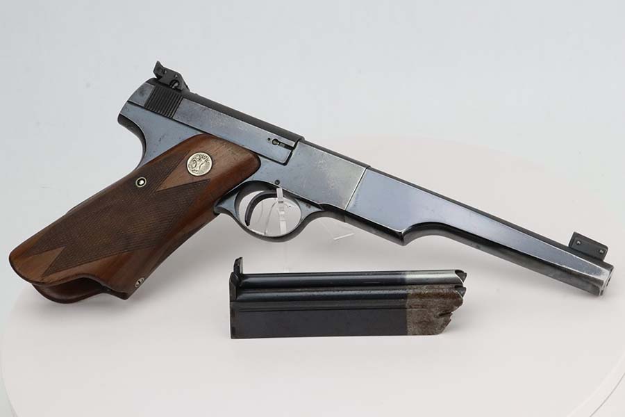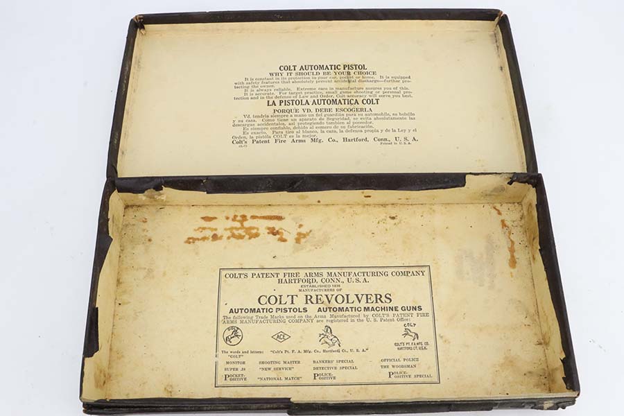 3/1/24 – This is a nice example of a Colt Match Target Woodsman from 1939. According to the included Colt Factory Letter, it was delivered to “Clapp & Treat” in Hartford, CT on June 23, 1939. It comes with its original matching-numbered box, owners manual, two magazines, and punch tool. The gun itself has retained roughly 85% of its original high polish finish. There is wear around the muzzle, general high edge wear, and areas of thinning on both sides of the frame. Very light spotty oxidation on most of the frame as well. Fitted with a very nice period-correct one-piece wood grip. Mint bore.