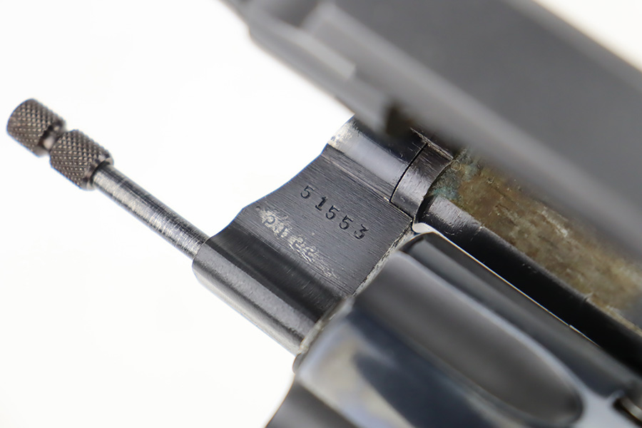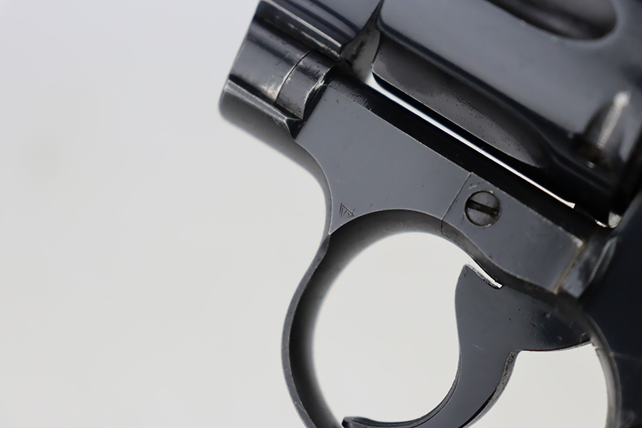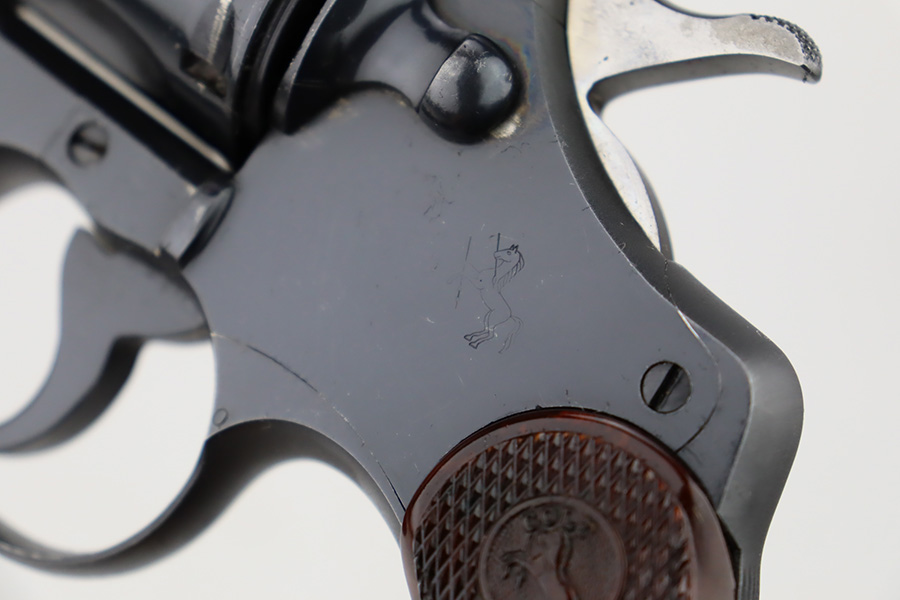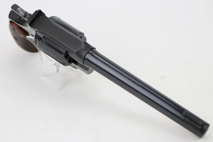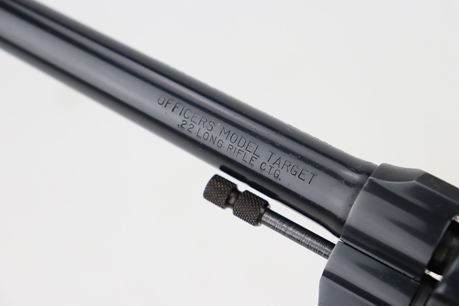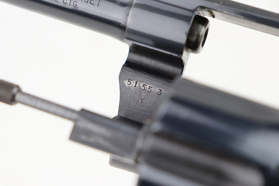9/28/23 – This is an excellent Colt Officers Model Target revolver in its original box. Made in 1948, the revolver has about 97% of its original blue remaining with minor edge wear on the bottom of the grip frame, and light muzzle/high edge wear elsewhere. Also a light turn line on cylinder. Six inch barrel with minty bore. Beautiful grips. Box has the original test target inside, and the shipping sleeve is also included, which has the serial of the handgun hand-written on it.