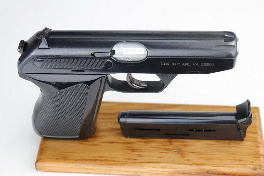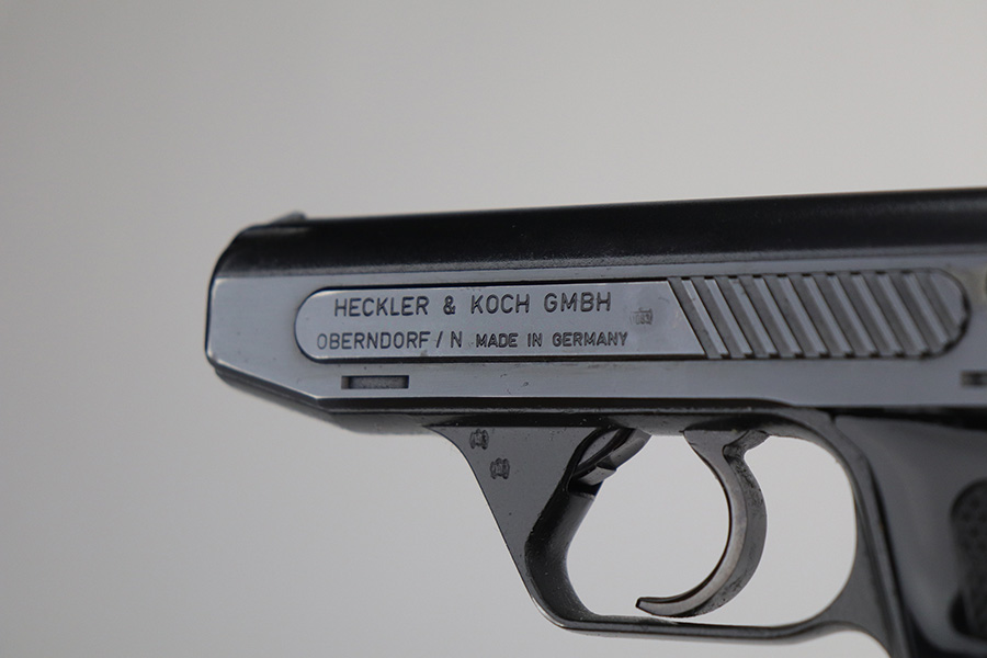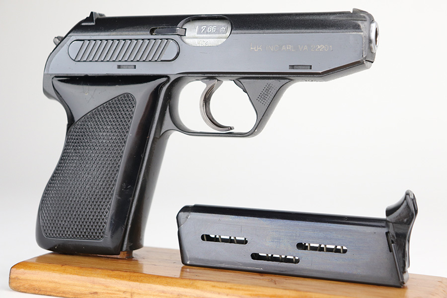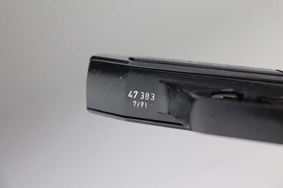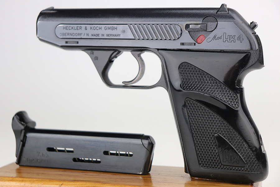 9/17/21 – This is a very nice Heckler & Koch HK4 in the original box, and comes with a conversion kit for both .22LR and 9mm. This one was made in July of 1971, so C&R eligible. The HK4 is basically a new version and a more refined development of the Mauser HSc self-loading pistol. Heckler & Koch was familiar with HSc design, as during pre-war and post-war periods, many of the Heckler & Koch company founders were employees of the Mauser-Werke Oberndorf A.G. company. This example falls in the range of a West German Police contract order, one of about 12,000 produced. It has a bit of muzzle wear on both sides, maybe a few minor surface scratches on the front grip strap. The conversion kits aren’t numbered to the gun but all have excellent bores.