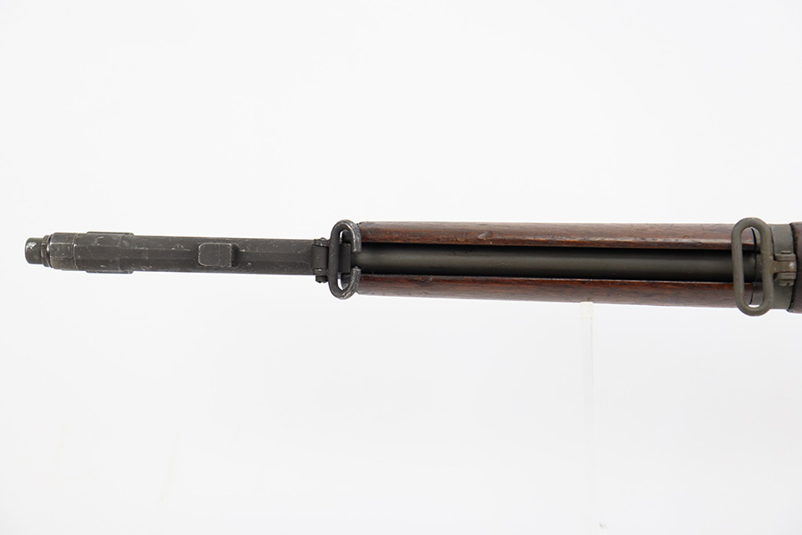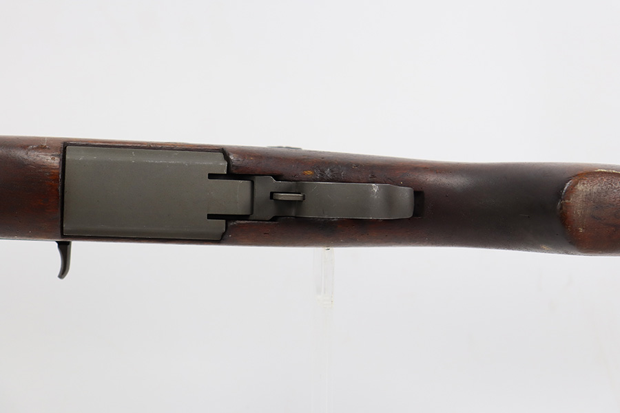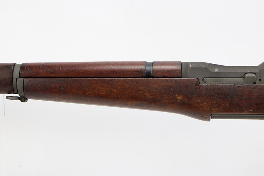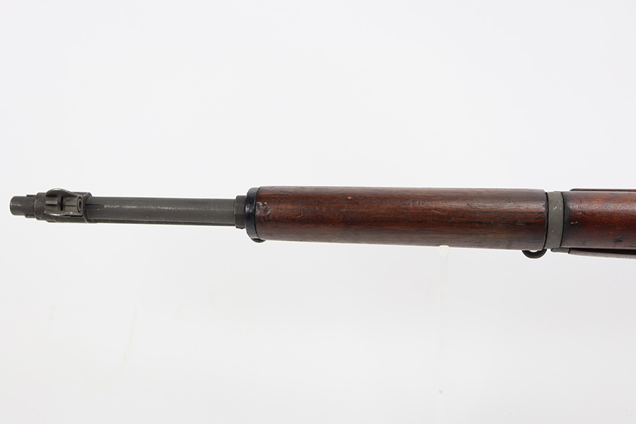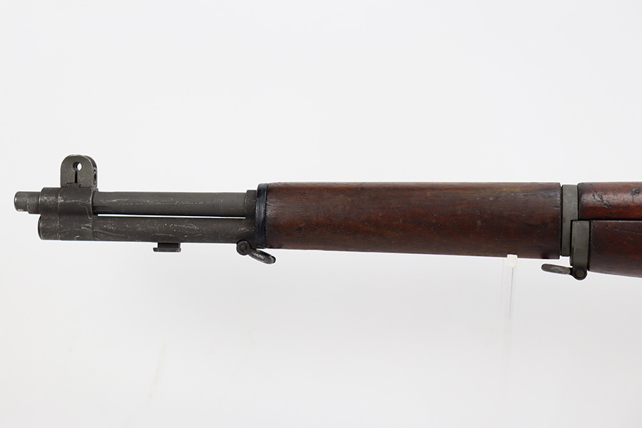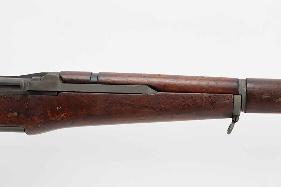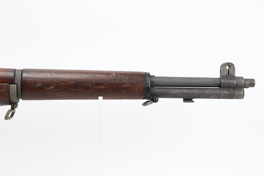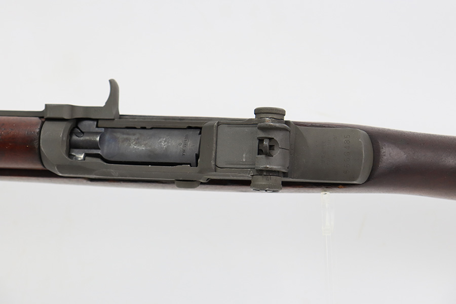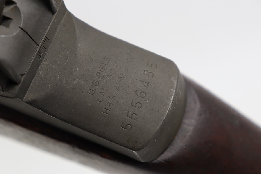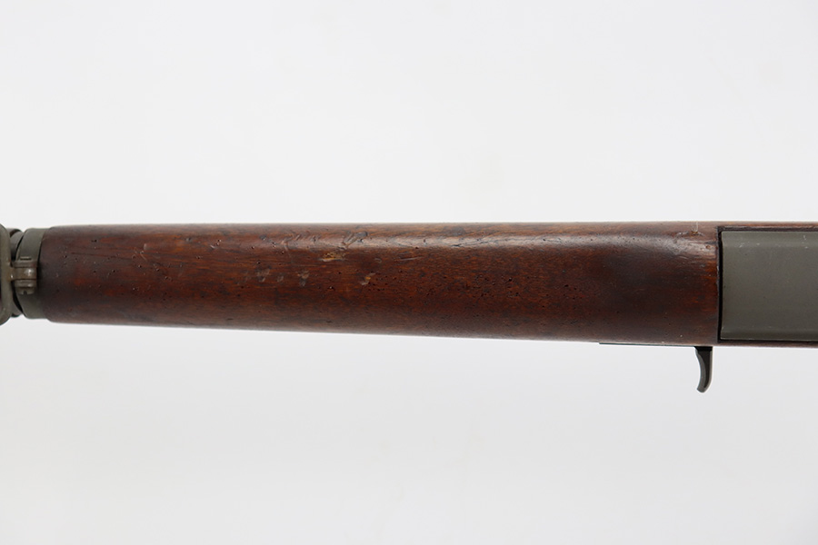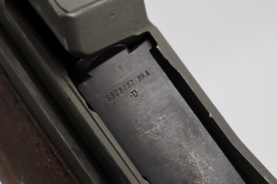 8/9/23 – This is an excellent example of a Harrington & Richardson M1 Garand. The serial number on the receiver dates it to 1956. Springfield-marked barrel dated 1965. National Match-marked op rod. This gun is a Blue Sky import. It comes with its original import box and has an import mark on the barrel. It also comes with an owners manual, a cleaning kit, ten ENBLOC clips, and a couple of canvas slings. The metal parts have retained about 96% of their parkerized finish with just some light scuffing on the barrel and gas tube. Nice wood stock, but there are dings and scratches throughout. There are tiny textured dots along the right side of the stock where it appears that it was sprayed with some sort of finish or adhesive. The bore has good rifling, but there is minor pin-pricking in the grooves. Muzzle reading: 5. Throat reading: 1.
