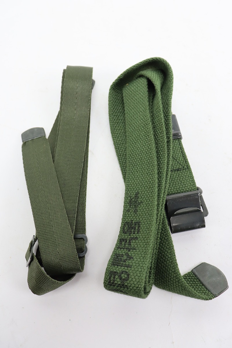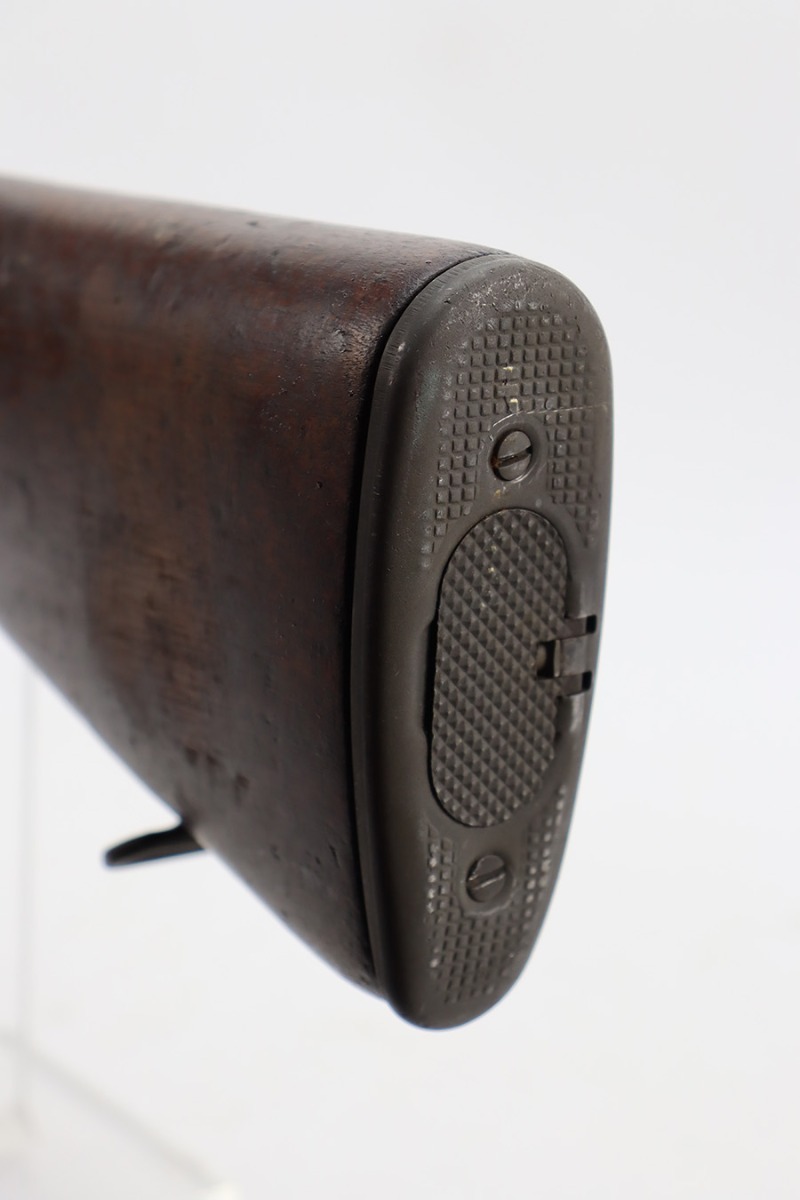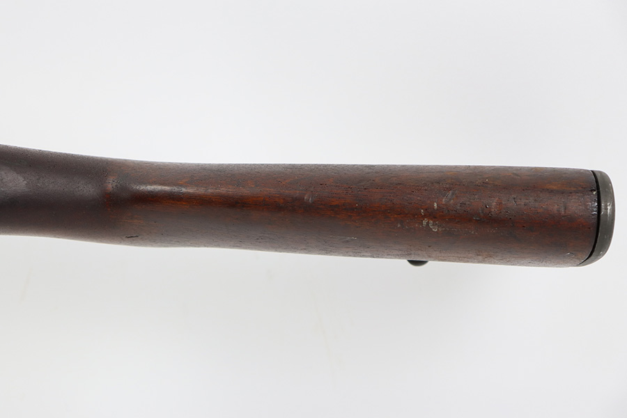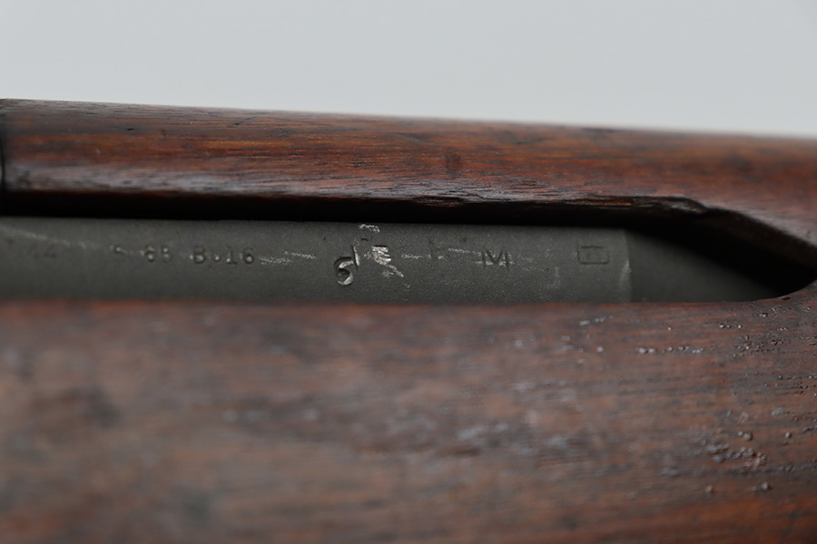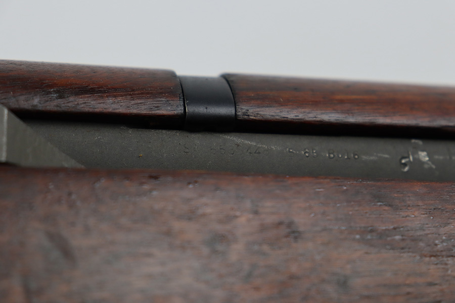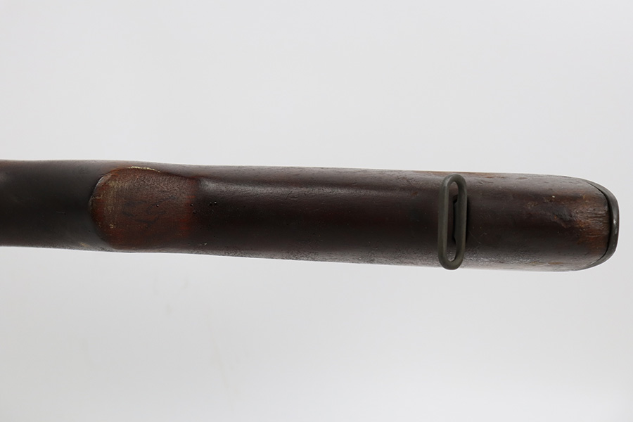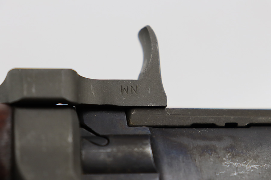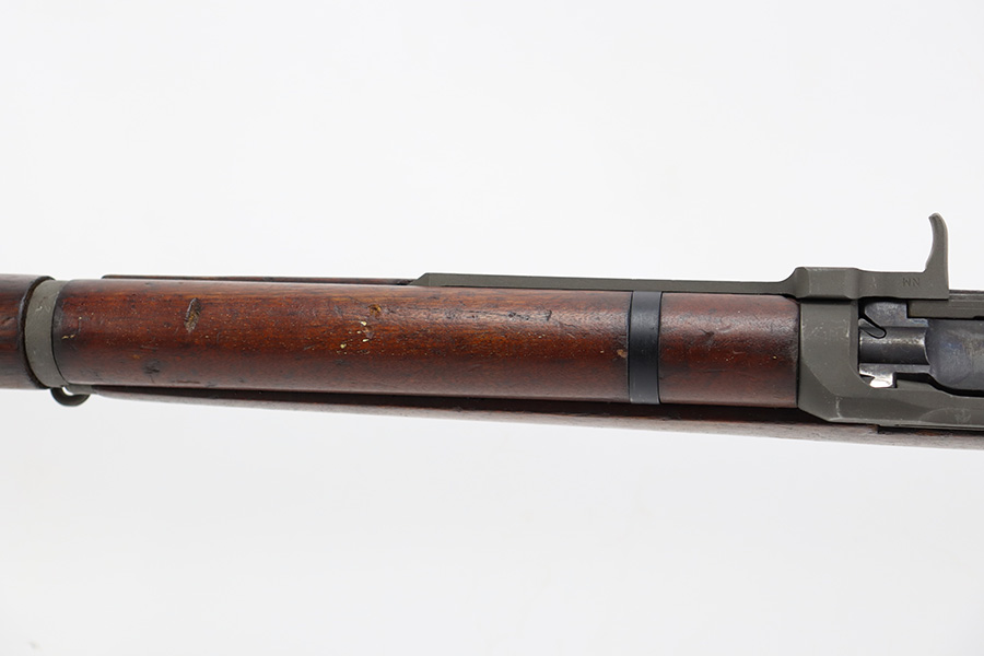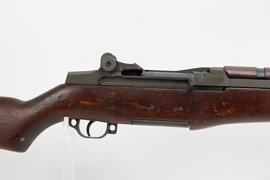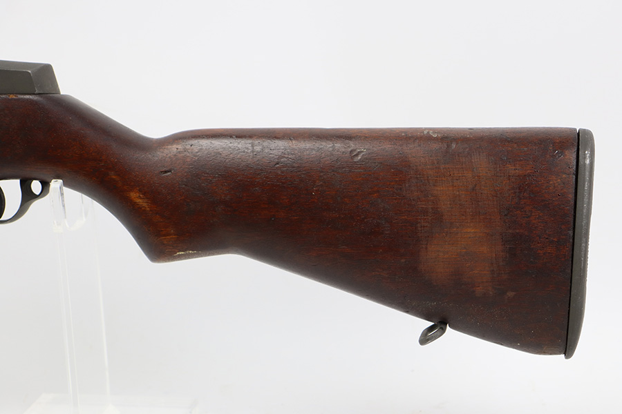 8/9/23 – This is an excellent example of a Harrington & Richardson M1 Garand. The serial number on the receiver dates it to 1956. Springfield-marked barrel dated 1965. National Match-marked op rod. This gun is a Blue Sky import. It comes with its original import box and has an import mark on the barrel. It also comes with an owners manual, a cleaning kit, ten ENBLOC clips, and a couple of canvas slings. The metal parts have retained about 96% of their parkerized finish with just some light scuffing on the barrel and gas tube. Nice wood stock, but there are dings and scratches throughout. There are tiny textured dots along the right side of the stock where it appears that it was sprayed with some sort of finish or adhesive. The bore has good rifling, but there is minor pin-pricking in the grooves. Muzzle reading: 5. Throat reading: 1.