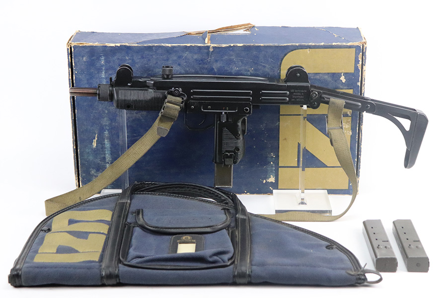 7/22/21 – This is an excellent UZI Model A in semi-auto in its original box with the original Uzi swat case. It qualifies as a short-barreled rifle and is fully transferable on a form 4. The gun is all original with minor handling wear, but it was bought new by our consignor and used sparingly in the decades since he purchased it. Minty bore, hardly looks used. It comes in its original box, with the original Styrofoam sleeve still present. This box also has the original ownership card from Uzi, which is serialized to the gun. The original swat case comes with three magazines.