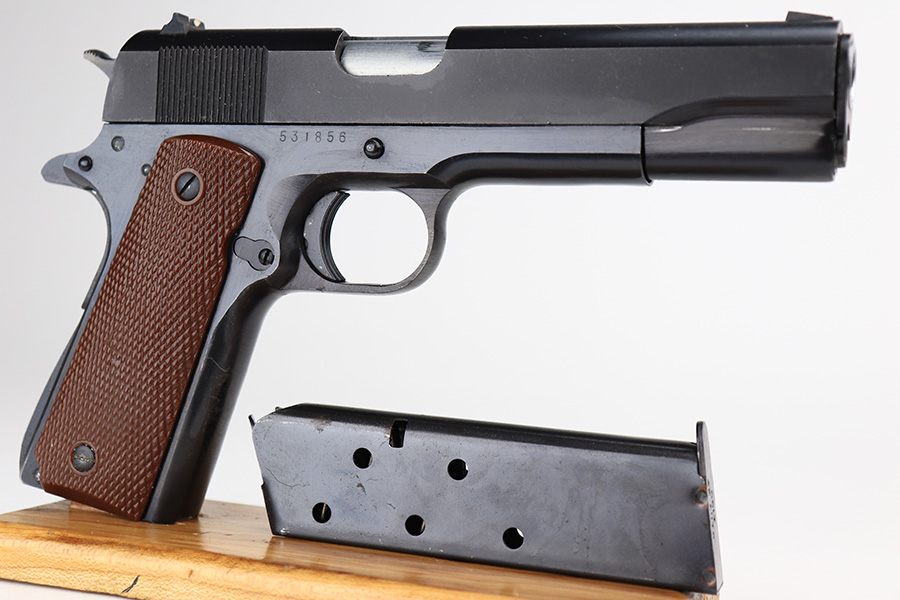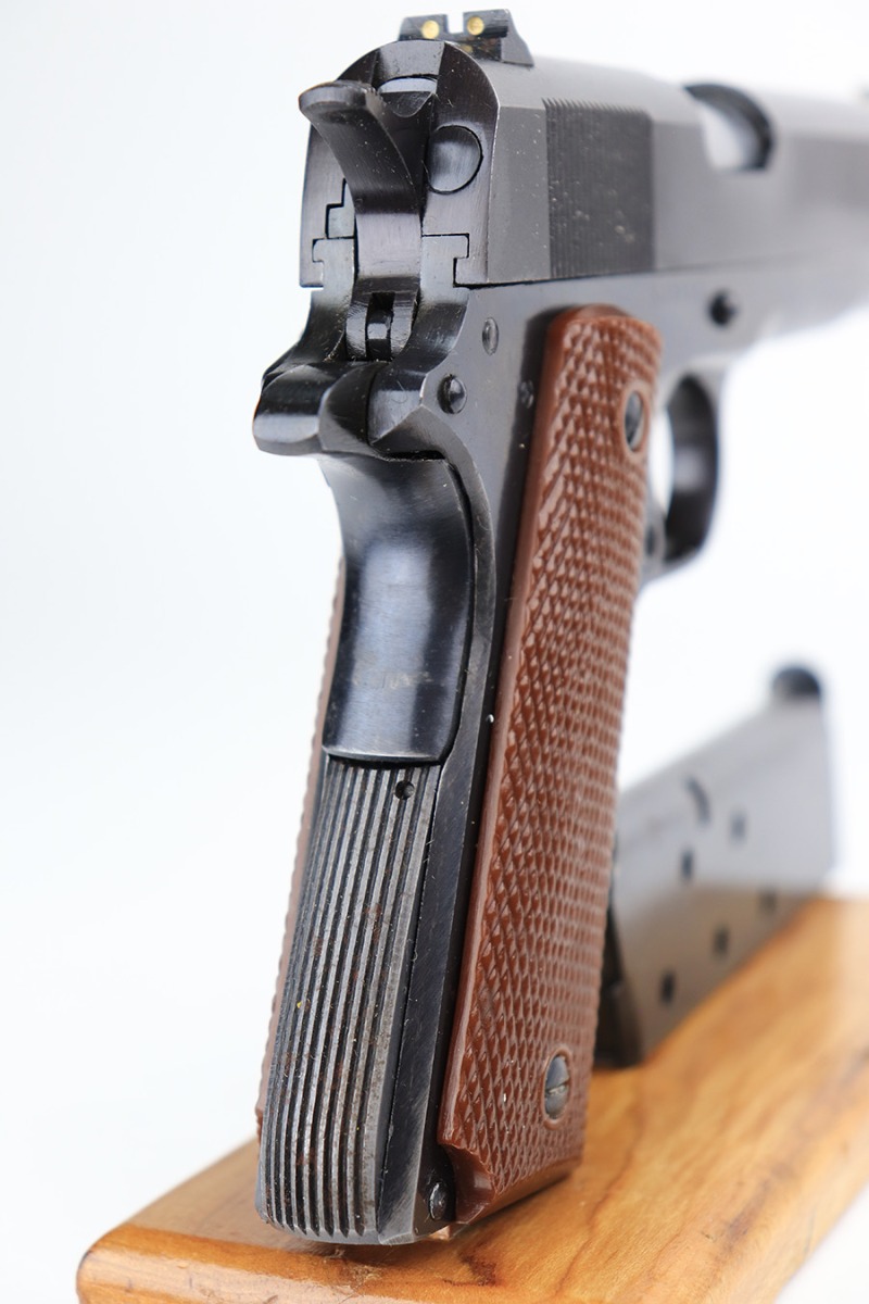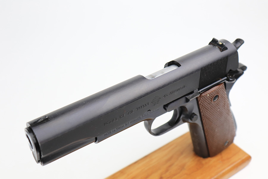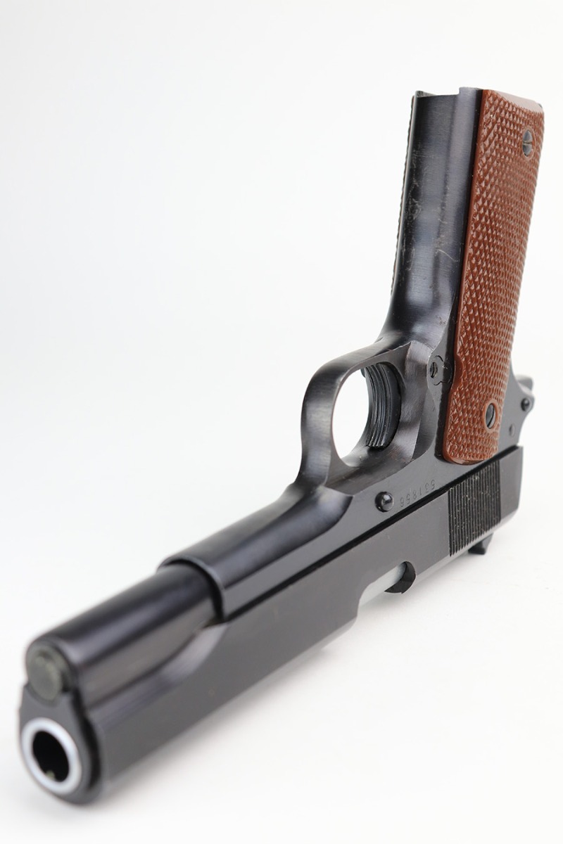 3/30/22 – This is an excellent Norinco 1911A1 in its original, matching box. It’s in minty condition aside from the front strap, where nearly all the wear is. It’s a Chinese copy of the Colt 1911A1, with import mark on frame. Excellent grips and mint bore. Magazine base is marked ‘COLT .45 AUTO’. Comes with the original box, Styrofoam insert and safety manual. FFL required.
