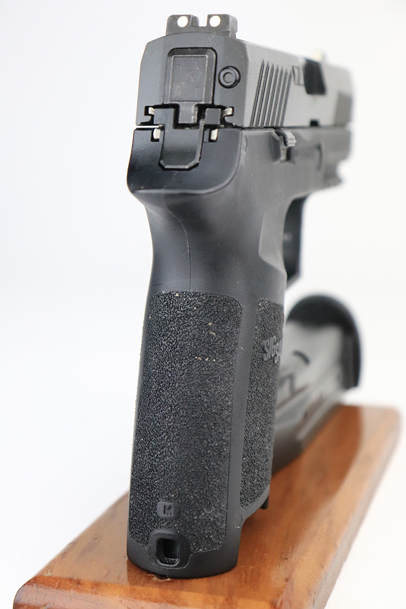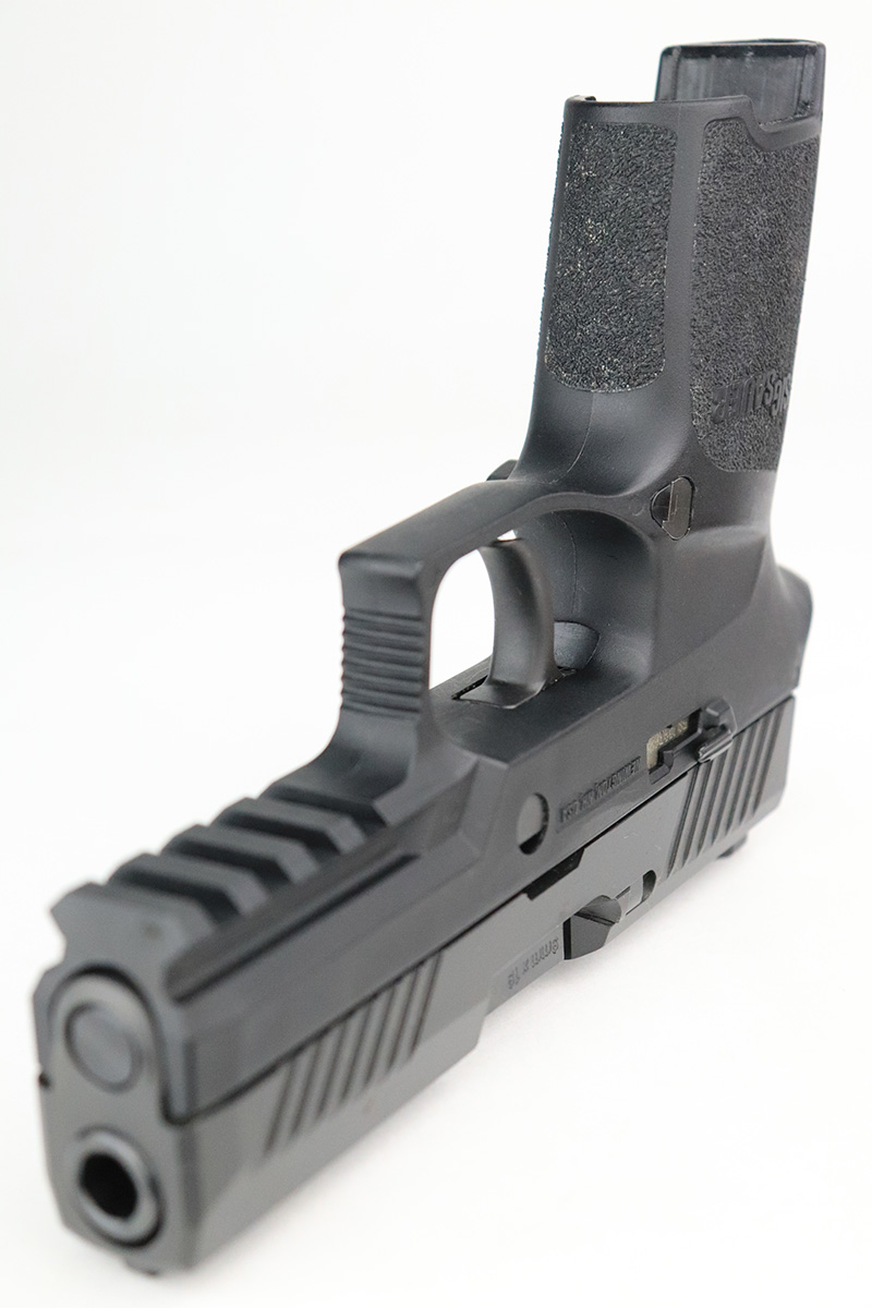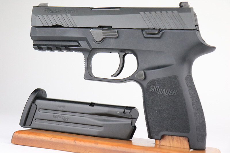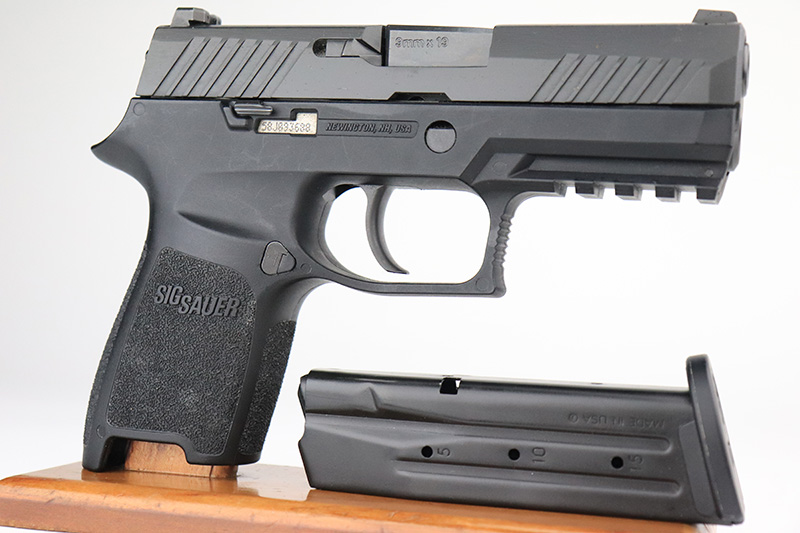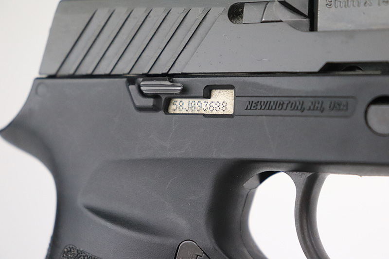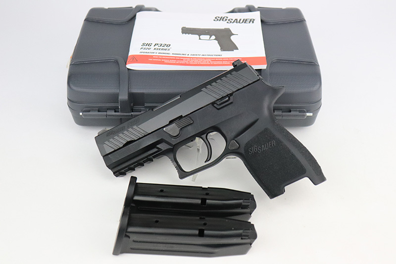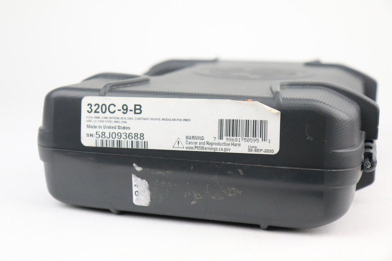 9/16/22 – This is a minty example of a Sig Sauer P320 semi auto pistol, chambered in 9mm Luger. The gun comes with its original matching-numbered hard case, owners manual, two 15-rd magazines, and three spare magazine bottoms. The gun itself is in near-mint condition with very little sign of wear or use – there is just some very light scuffing on both sides of the frame. The bore is like-new.