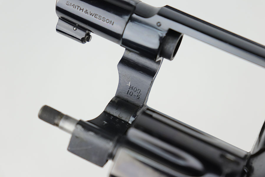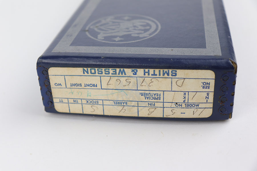 11/24/20 – This is a Smith & Wesson Model 10-5 that’s marked ‘NYS DCS’, indicating it went to New York State Department of Civil Service. The gun is all original with about 95% of the polished blue remaining. Most of the finish loss is on the trigger guard, but there’s also a scratch on the left side of the frame, under the cylinder release. Minty bore. Excellent, unmarked grips. Comes with an original box that’s also labeled for a model 10-5, but mismatched serial number.
