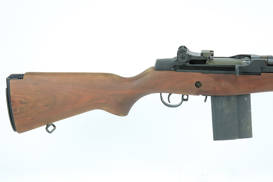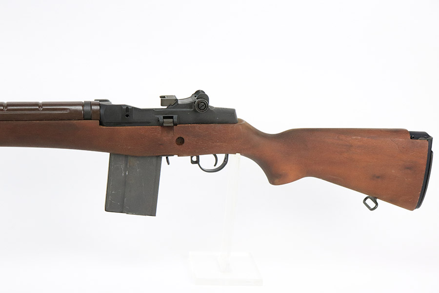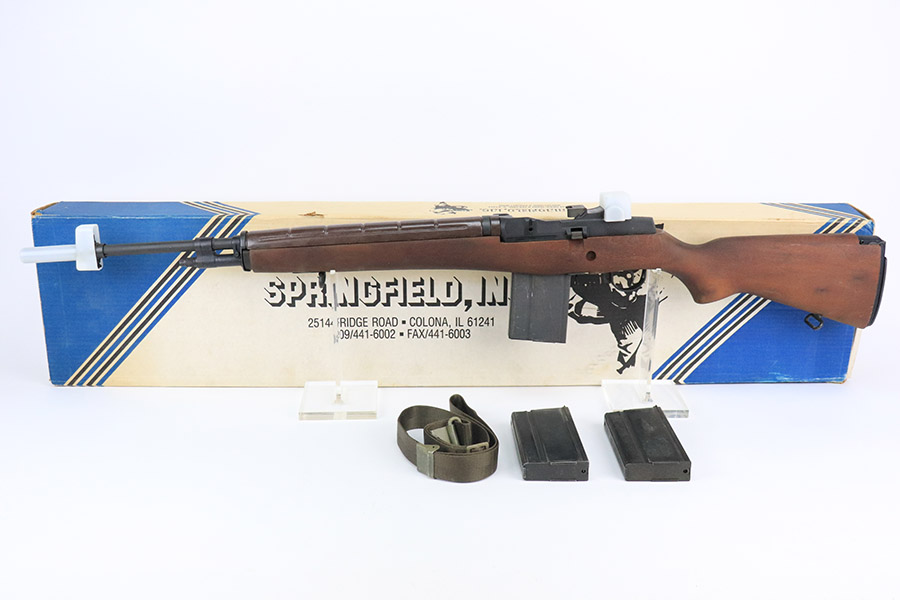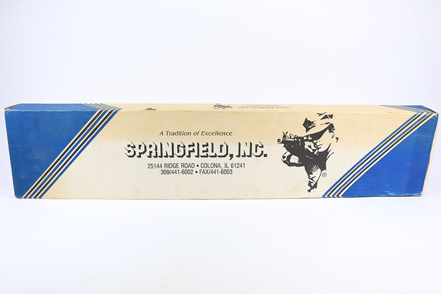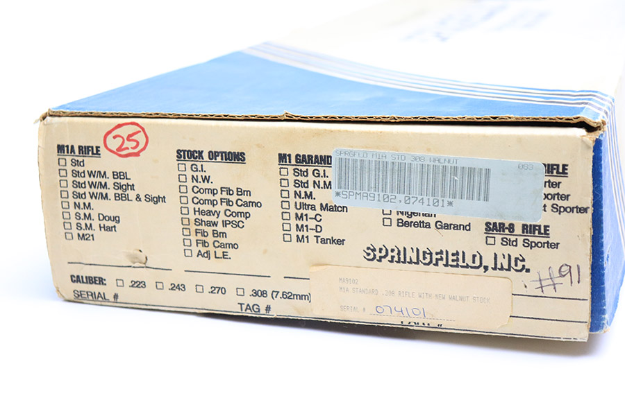 11/5/22 – This is a minty example of an original Springfield M1A that was made in 1992 and is still in its original, matching box. The Springfield Armory M1A is a civilian version of the M14 rifle designed and manufactured by Springfield Armory, Inc., beginning in 1974. The term “M1A” is a proprietary title for Springfield Armory’s M14-pattern rifle. Early M1A rifles were built with surplus G.I. parts until Springfield Armory, Inc. began manufacturing their own. The finish on this rifle is excellent with just a tiny hint of “box wear”. Excellent bore with only minor signs of use. The box shows some age but is largely in good shape and the label is intact. It includes a sling and a total of three magazines.