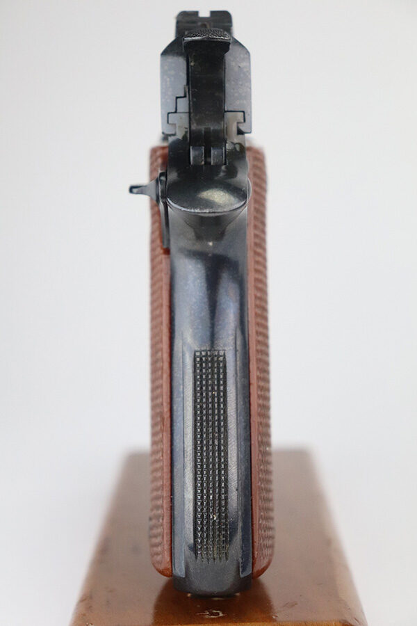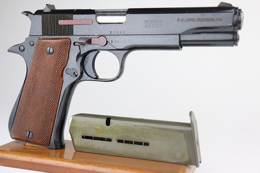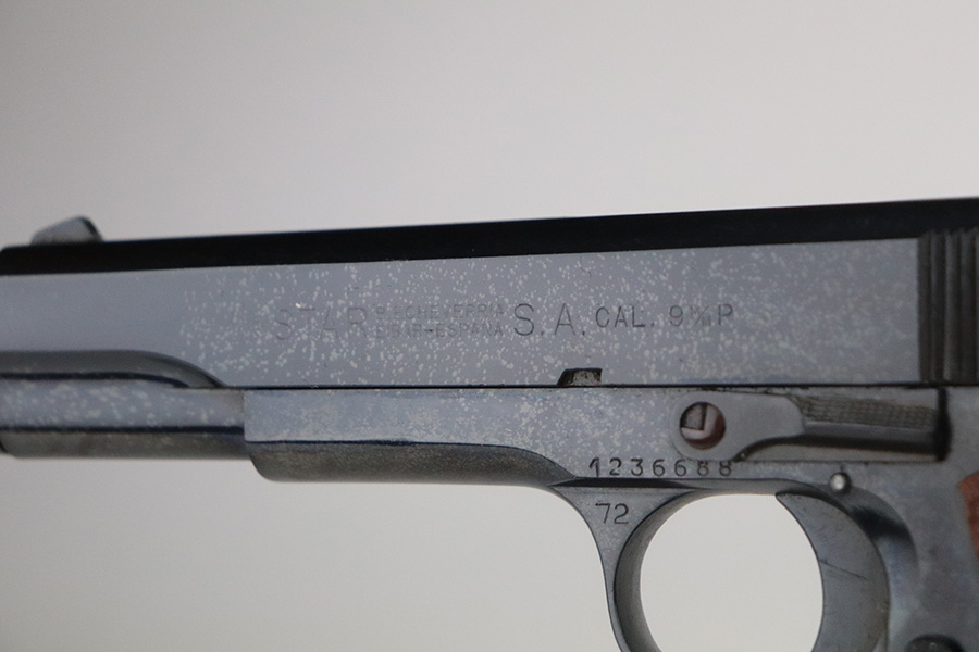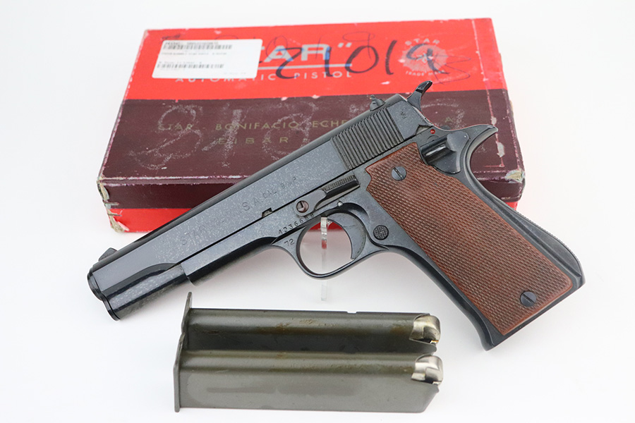 6/30/21 – This is an excellent example of a Spanish Star model B Super manufactured in 1972. The gun comes with a mismatched box, owners manual, cleaning rod, and two proper magazines. The gun is all matching and has an import mark on the right side of the slide. It has retained more than 98% of its original finish. While there is almost no actual finish loss, there are tiny dots of discoloration all over the whole gun. Comes with nice plastic grips. The bore is near-mint. The slide doesn’t lock back with either magazine. This is likely caused by dried grease in the internals. This may improve with a good cleaning.