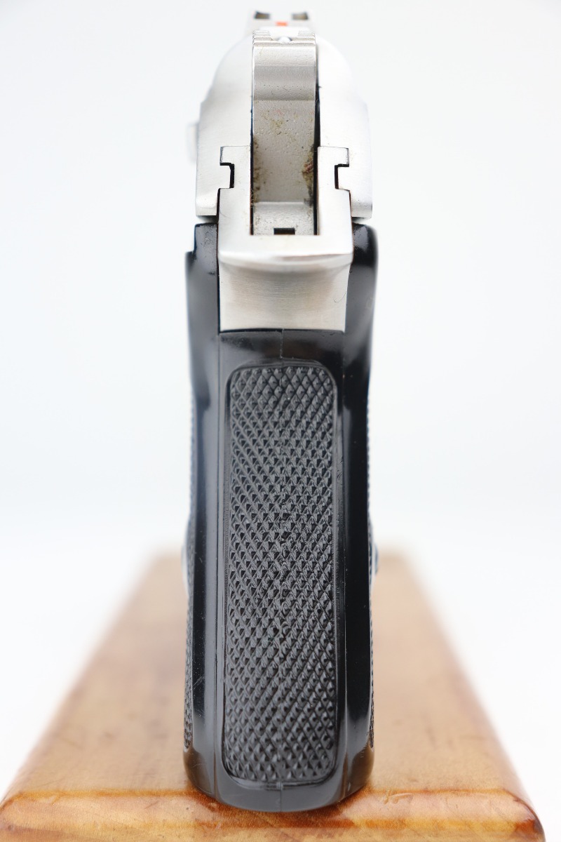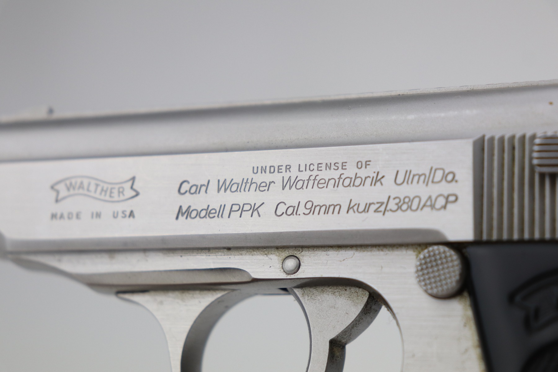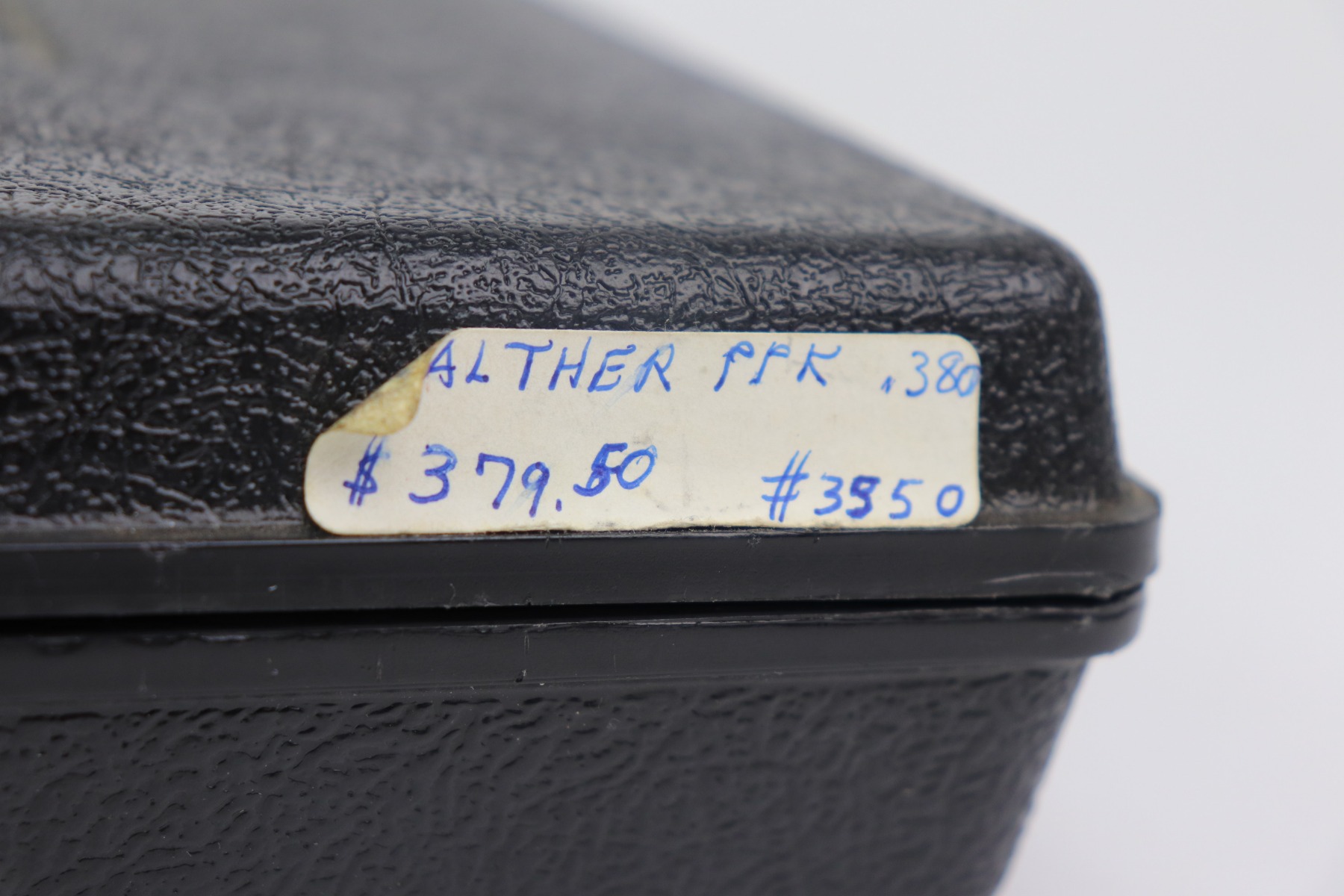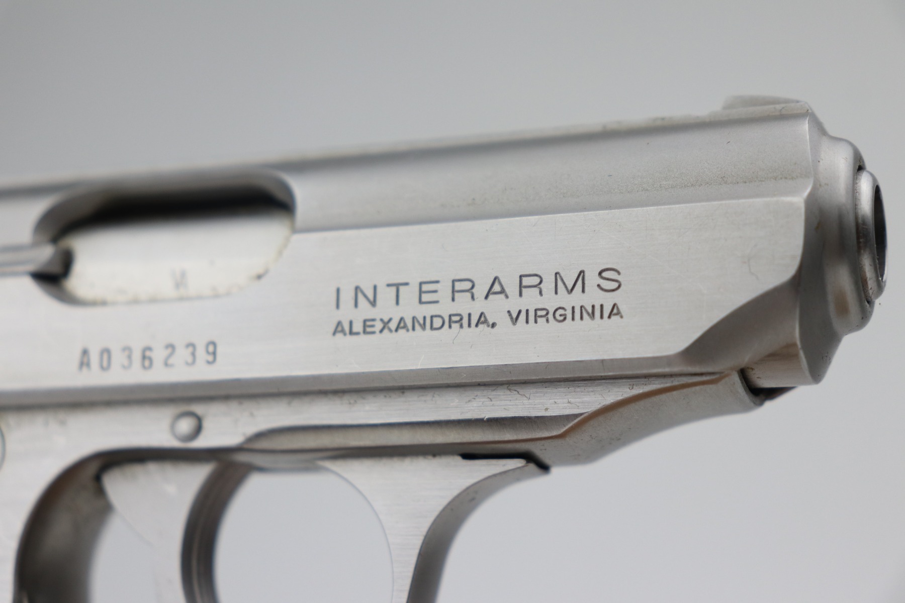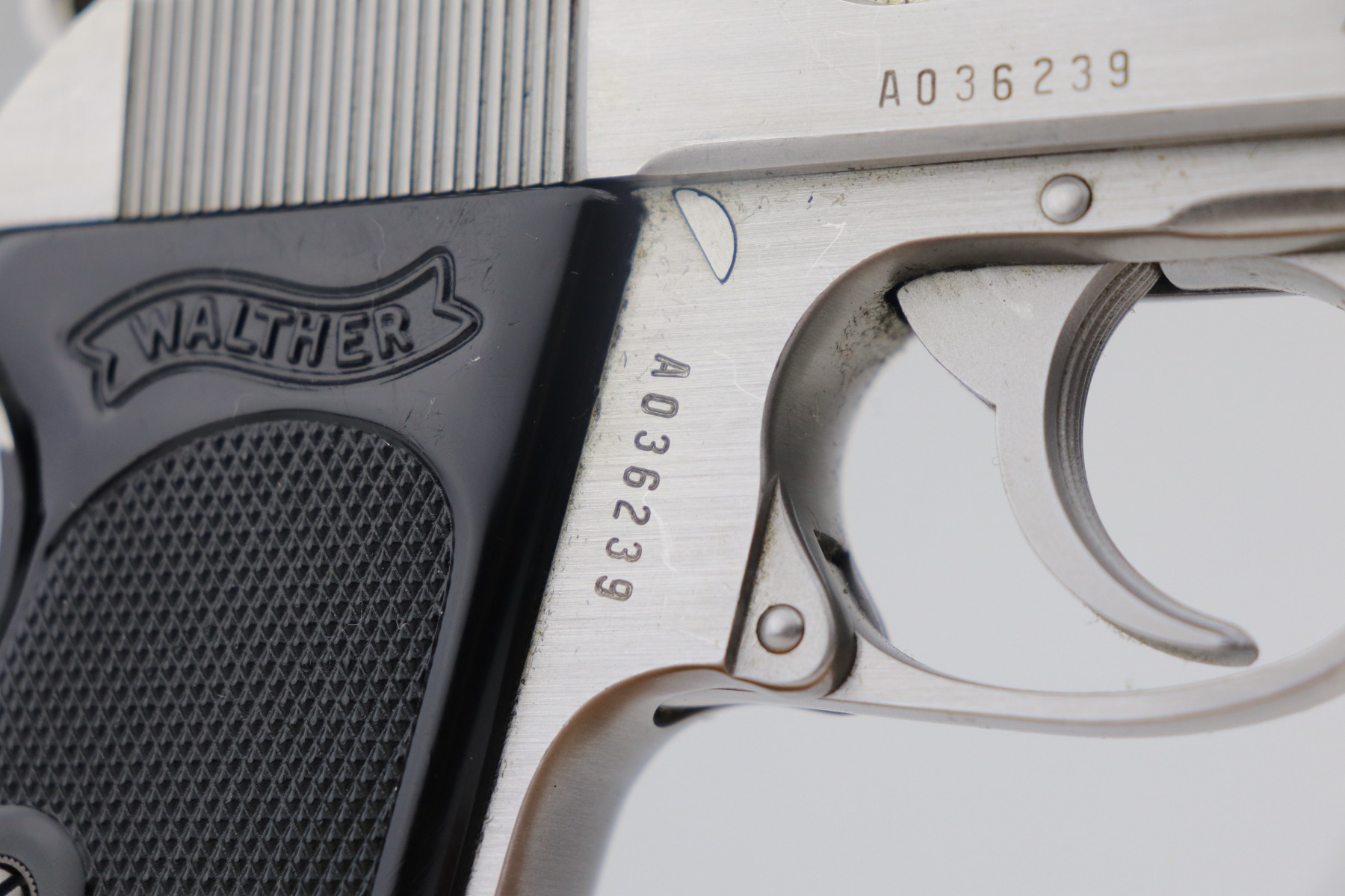 2/24/21 – This is an excellent example of a Walther / Interarms PPK made in the US in the 1980’s. This one comes with the original box (serialized to the gun), test target (serialized to the gun). owners manual, a finger extension magazine, and a flat-bottom magazine. Overall, the gun is in excellent condition. There are just some micro scratches along the right side of the slide. It has an excellent black Walther grip. The bore is mint.