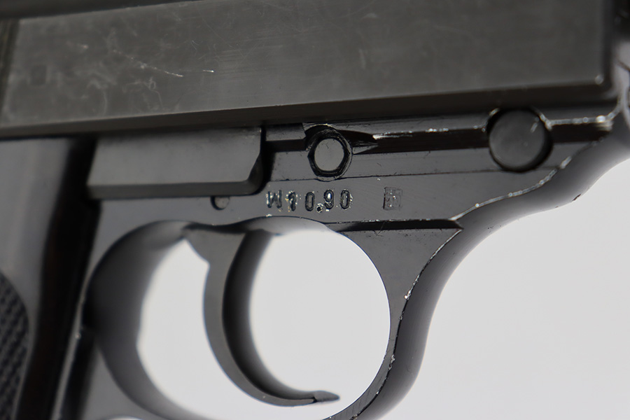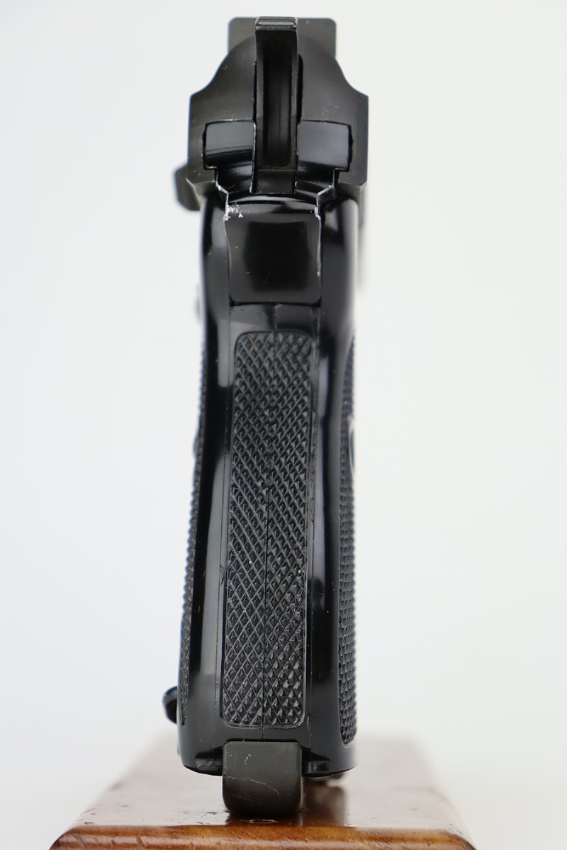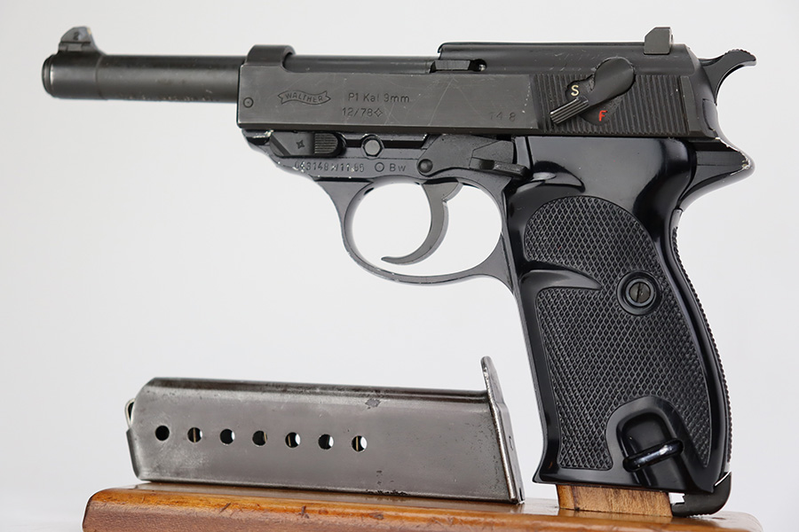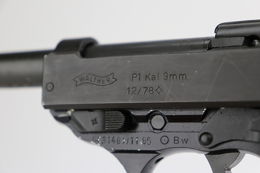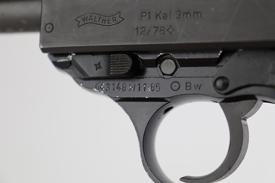 8/2/23 – This is an excellent example of a Walther P1 manufactured in December of 1978. It is all matching and has the proper West German proofs throughout. There is also a “BW” marking on the left side of the frame, indicating this was issued to the Bundeswehr or West German military. Import mark on the barrel. The gun comes with its matching-numbered importer’s box. There is almost no actual finish loss, but there is some light surface scuffing along the barrel and slide. Fitted with excellent black plastic grips and comes with a 1963-dated P.38 magazine. Minty bore. De-cocker is functional.