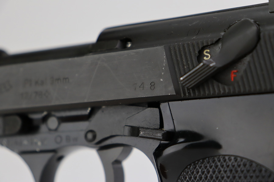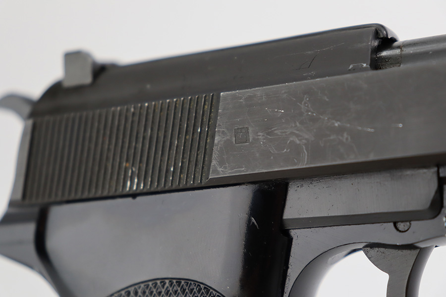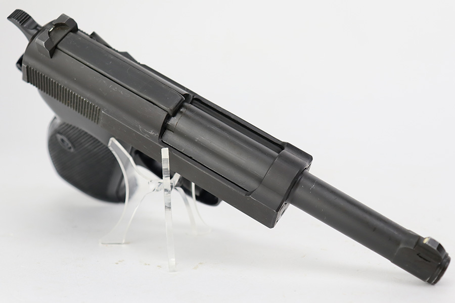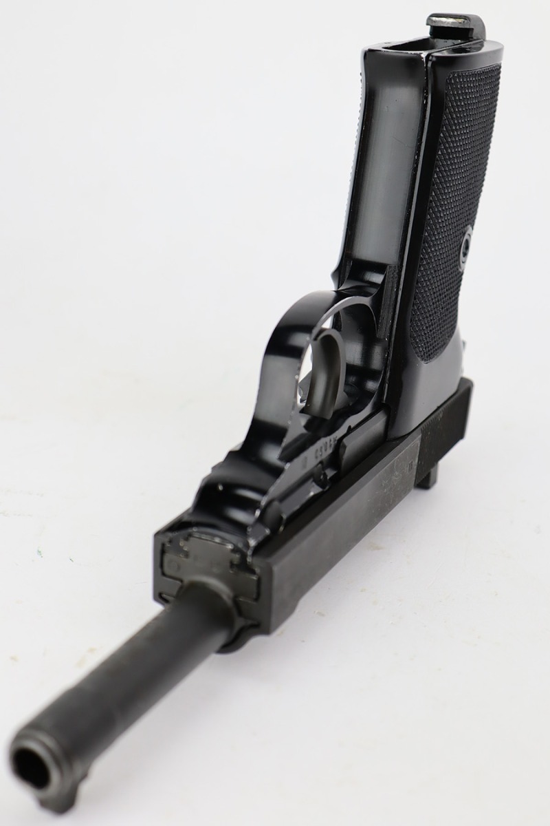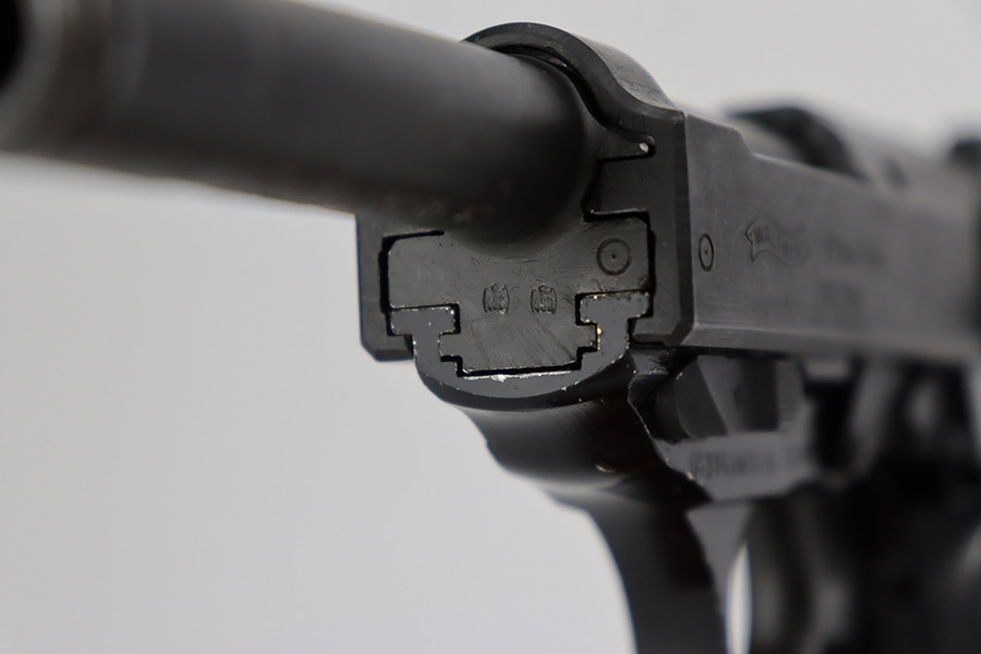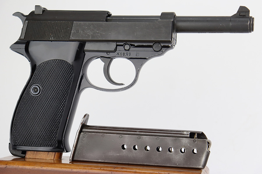 8/2/23 – This is an excellent example of a Walther P1 manufactured in December of 1978. It is all matching and has the proper West German proofs throughout. There is also a “BW” marking on the left side of the frame, indicating this was issued to the Bundeswehr or West German military. Import mark on the barrel. The gun comes with its matching-numbered importer’s box. There is almost no actual finish loss, but there is some light surface scuffing along the barrel and slide. Fitted with excellent black plastic grips and comes with a 1963-dated P.38 magazine. Minty bore. De-cocker is functional.