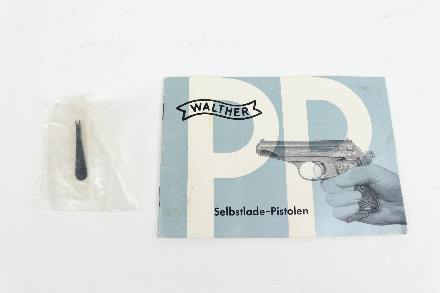 12/4/20 – This is a minty example of a boxed Walther PPK, chambered in 9mm Kurz, manufactured in 1968. It comes with a mismatched, hand-numbered, period-correct box, owners manual, small tool, finger extension magazine, and a flat bottom magazine. The gun has retained about 99% of its original bluing. Just very minor wear around the muzzle. Excellent grip. The bore is minty – shiny with strong rifling.