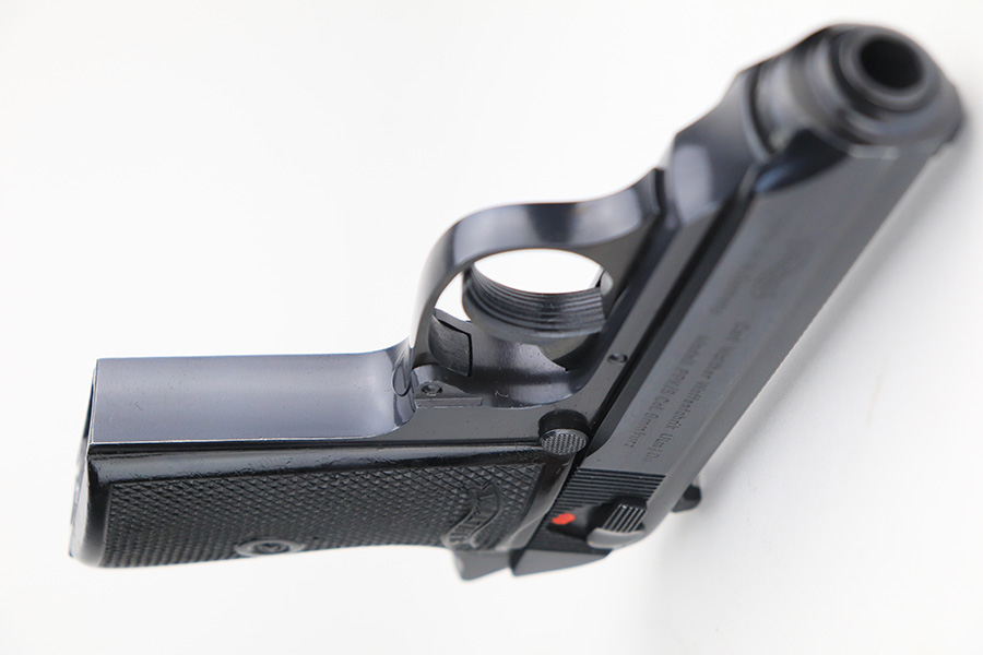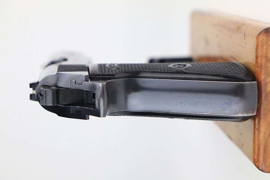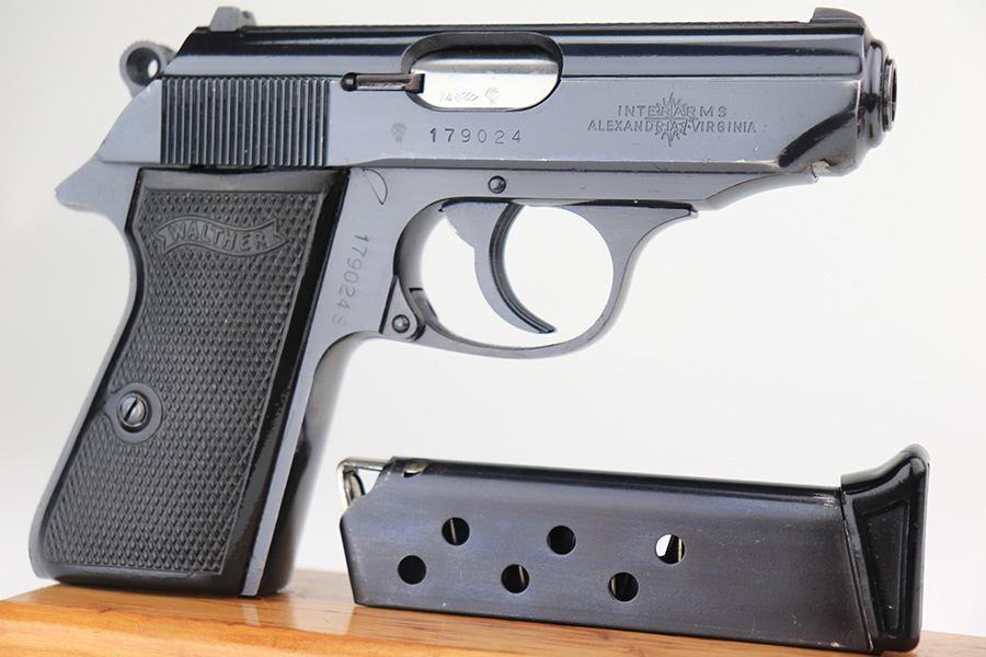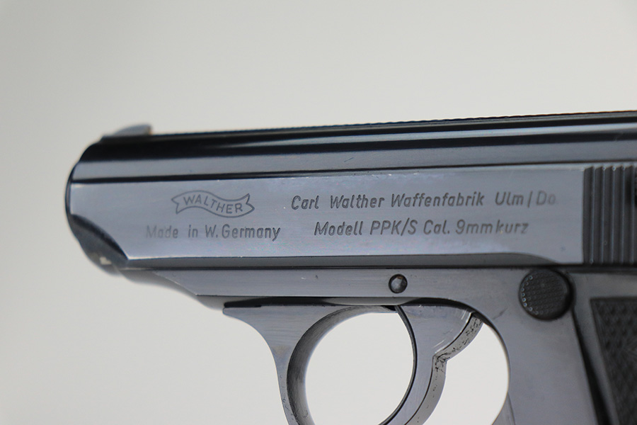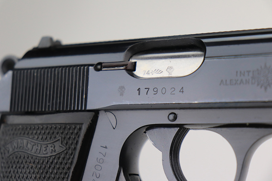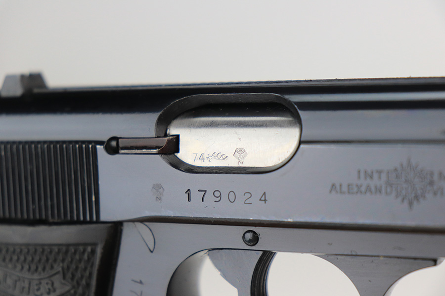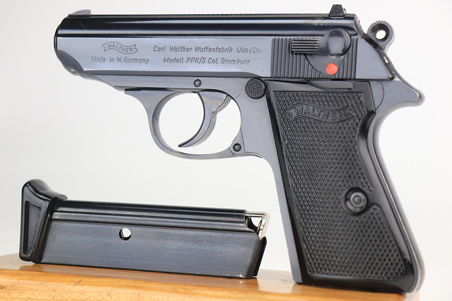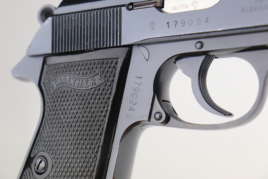 12/14/21 – This is an excellent Walther PPK/S in its original, matching box. Made in 1974, it has some wear on the bottom of the back strap and a patch of bluing loss about the safety. Otherwise, it’s in terrific condition with a mint bore. Interarms import mark on slide. Comes with original manual and cleaning rod. Four total magazines, two with finger extension. FFL required.