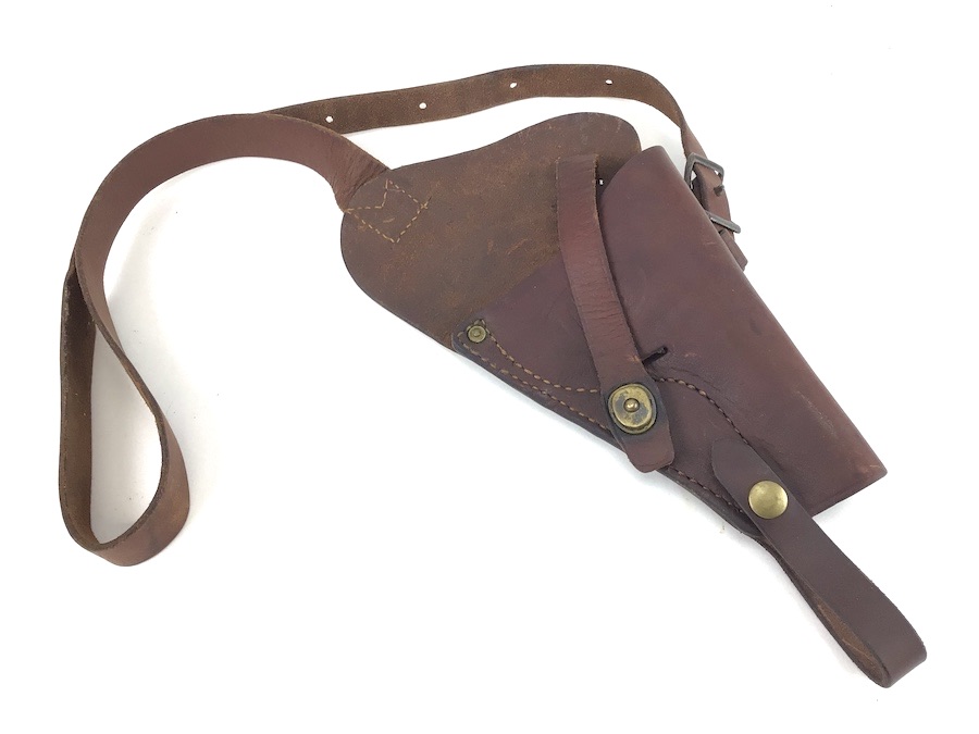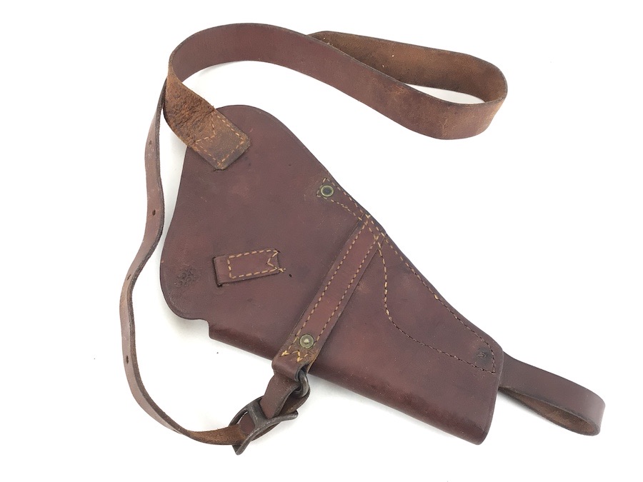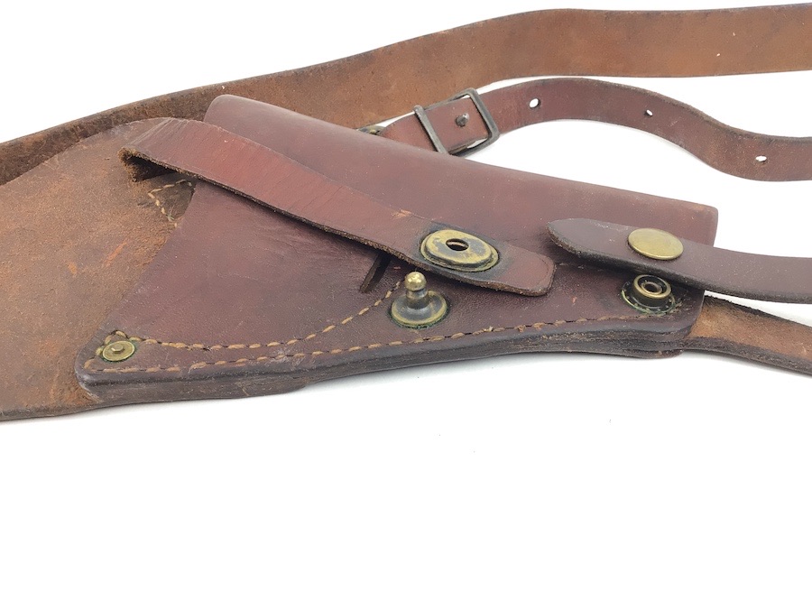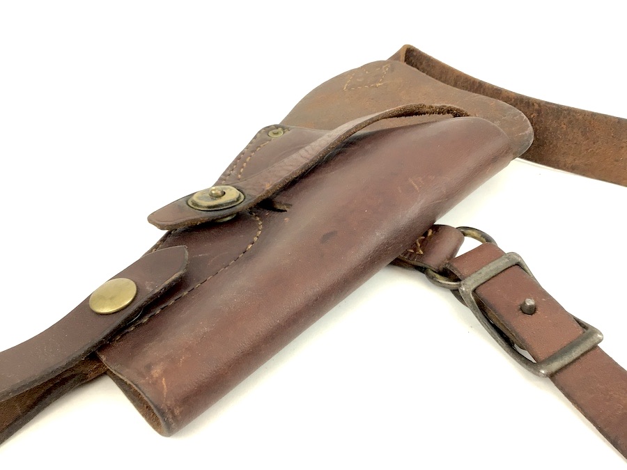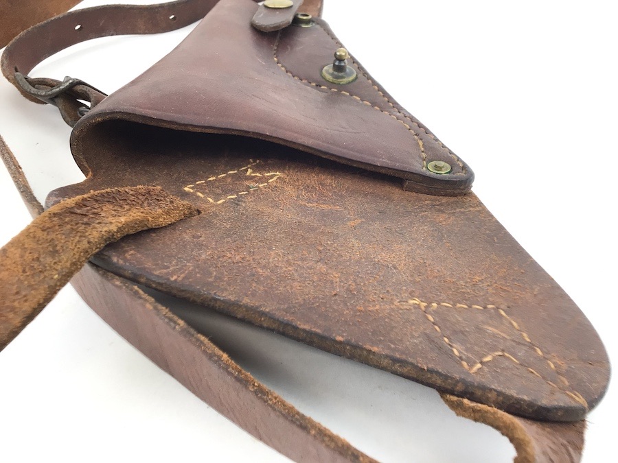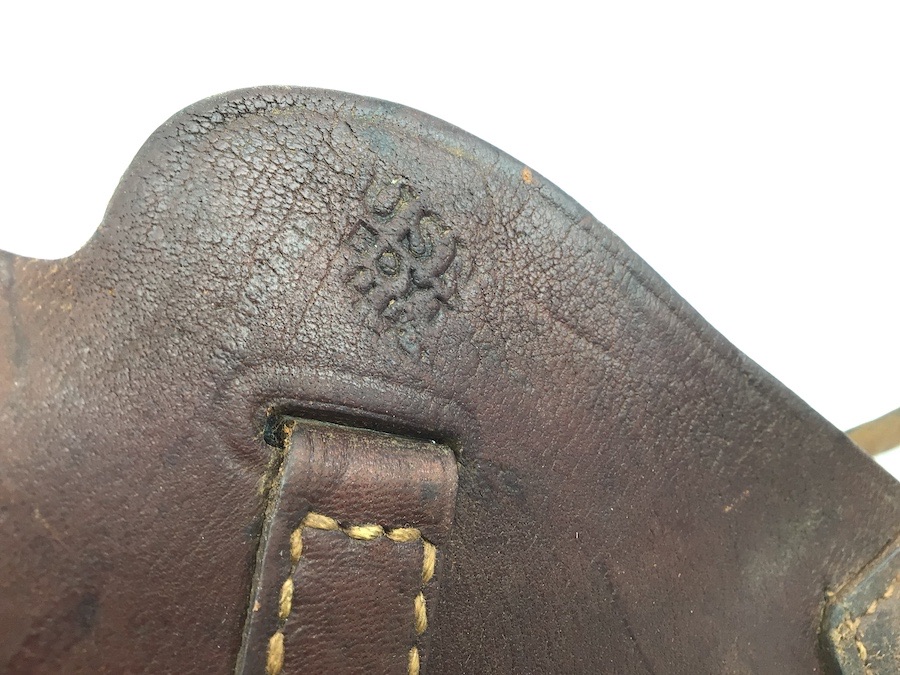 3/25/22 – Original US Navy holster for the S&W / Colt Victory revolver. Dated 1944 on the back along with “USN”. “US” embossed on the front. Leather is strong and stitching is intact. Very clean inside and out. Nice piece.