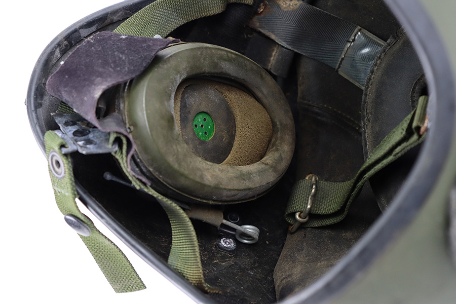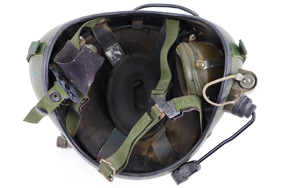 10/20/23 – This is a M1973 British Amplivox Tanker helmet. These were used by many countries during the 1980’s, including Germany, United Kingdom, United States, and Australia. Comes with integrated communication gear that can be plugged into an armored vehicle. Great overall condition with some mild signs of aging but no major issues.