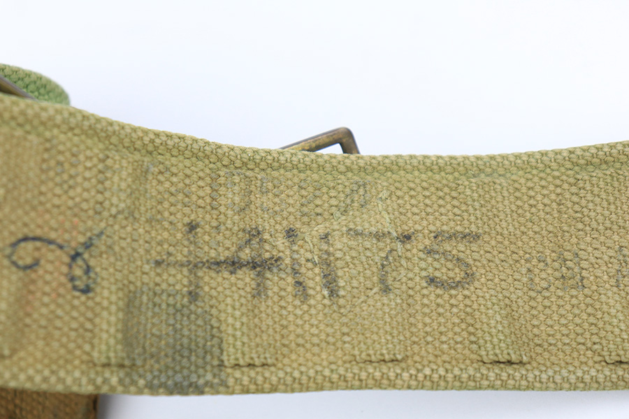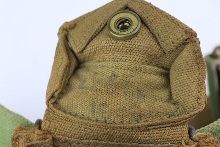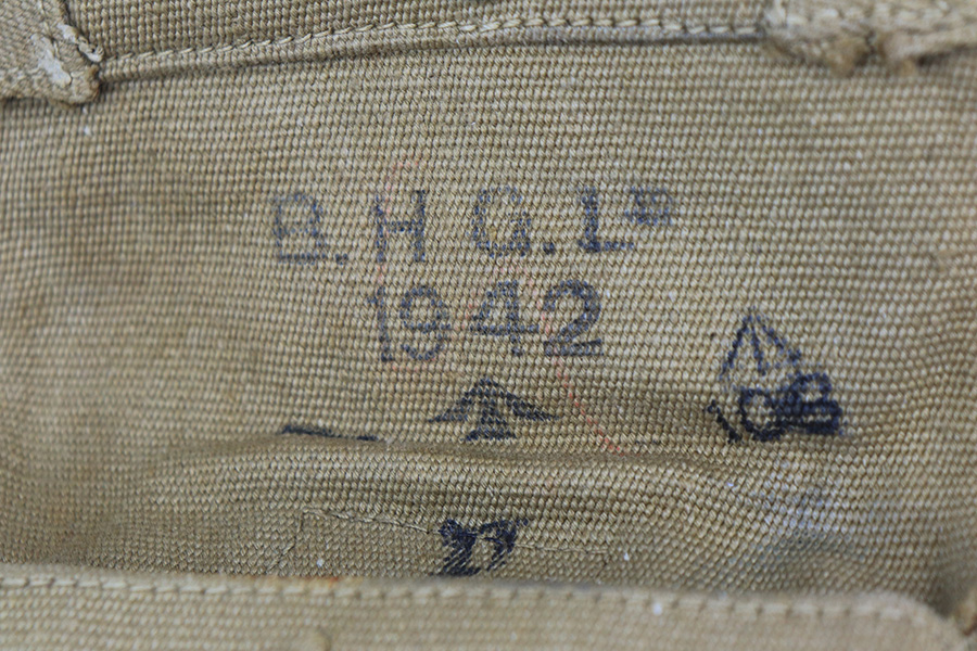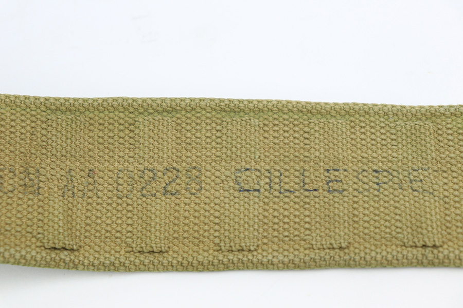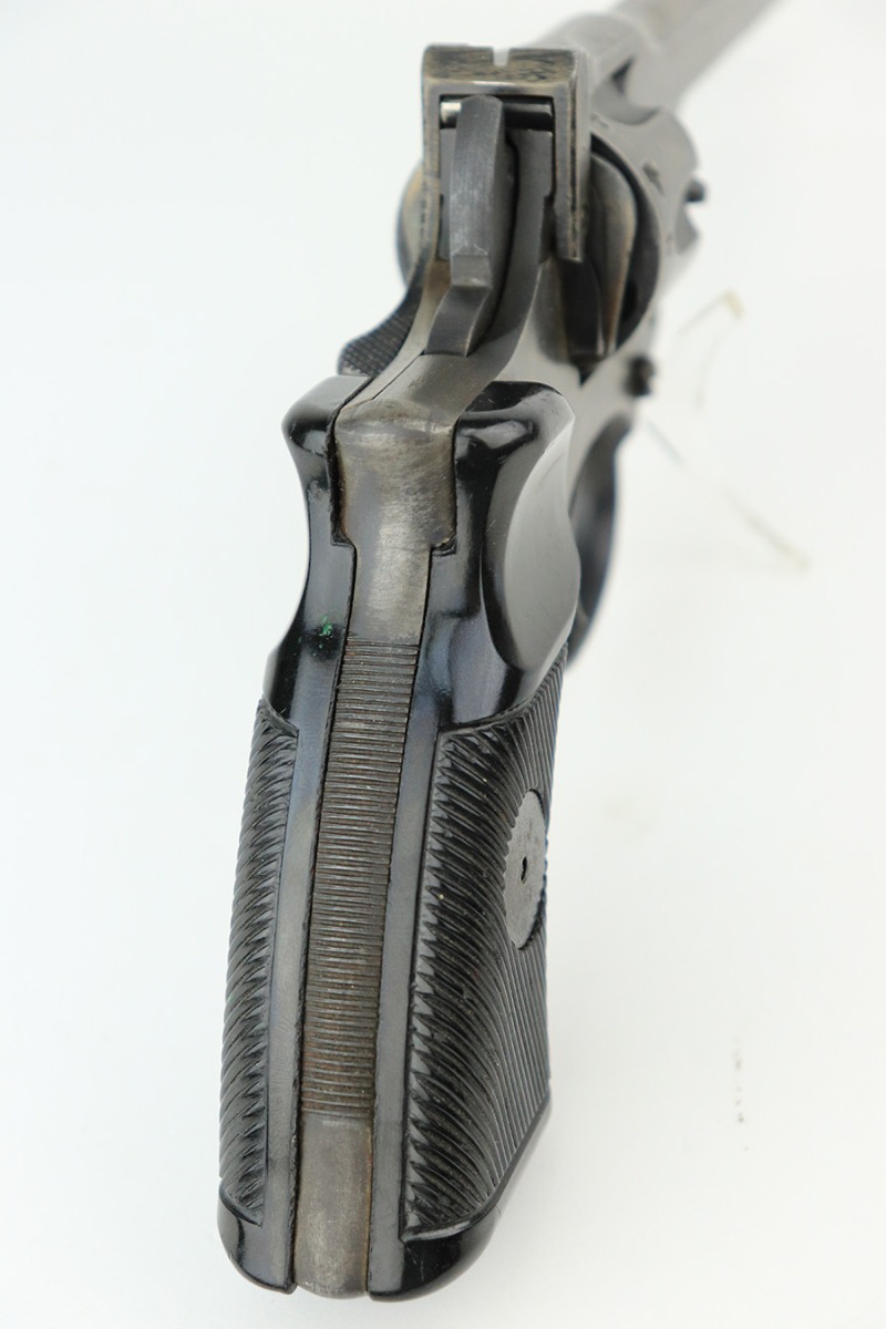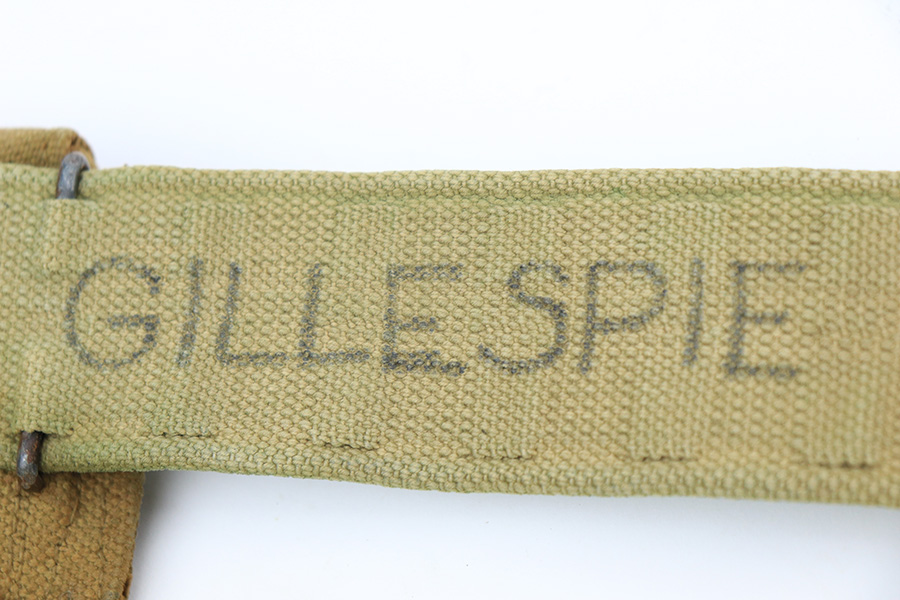 5/3/22 – This is a nice example of an Enfield No 2 Mk 1 revolver issued to the British military during WW2. It is all matching and has the proper British military proofs throughout. “England” export stamp on the left side of the frame. The gun comes as a complete rig with an excellent 1942-dated canvas holster, original cleaning rod, canvas ammo pouch, and a period-correct canvas belt with the name “Gillespie” written on the inside. The gun itself has retained roughly 75-80% of its military finish. Generally, there is thinning throughout and minor wear concentrated around the high edges. Some small spots of discoloration here and there. Comes with nice period-correct black bakelite grips. Mint bore. We just listed some ammo that would go with this gun. SKU is 050322-4.