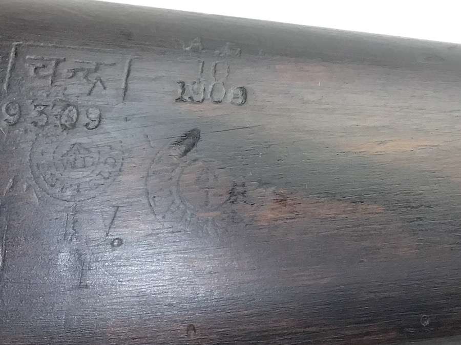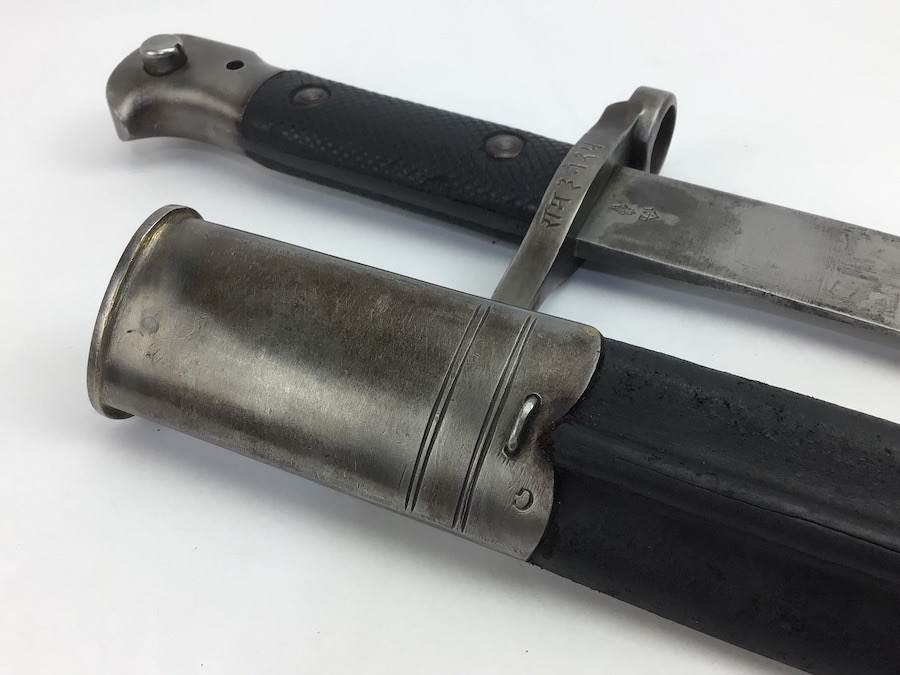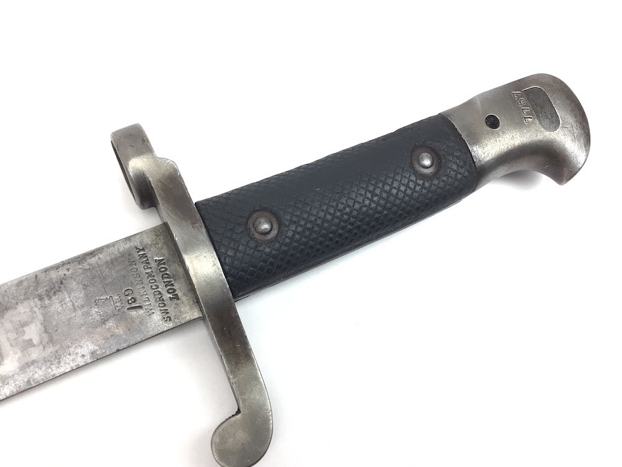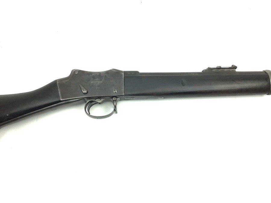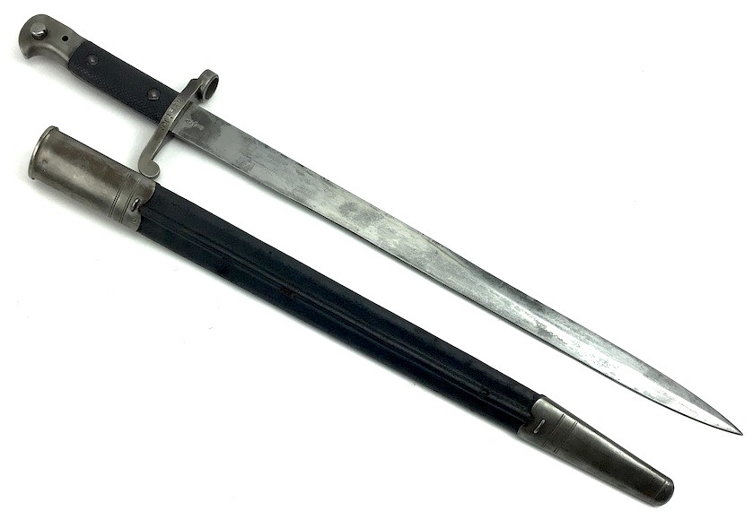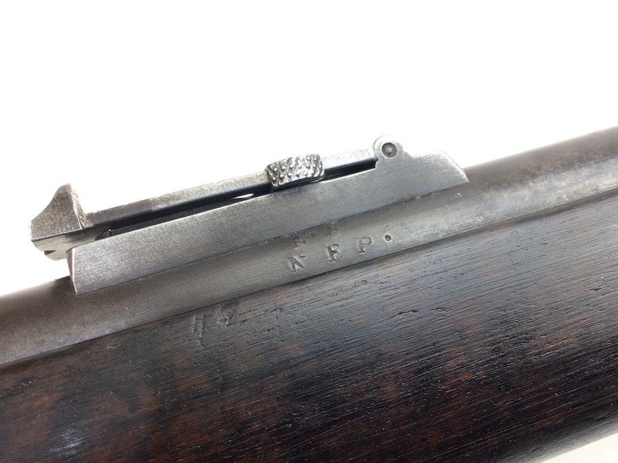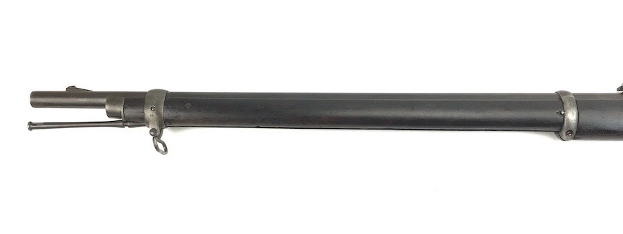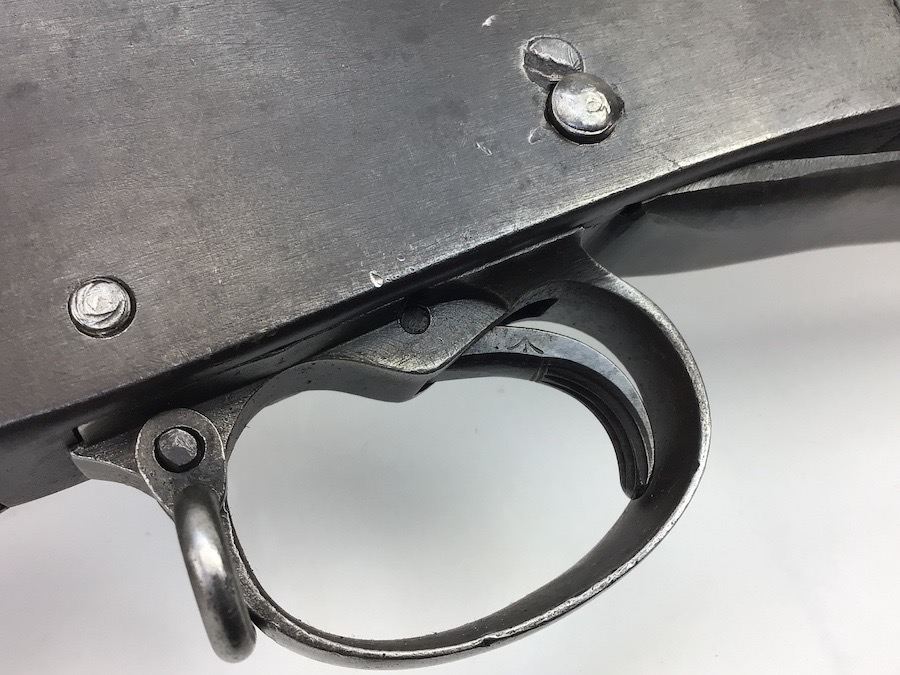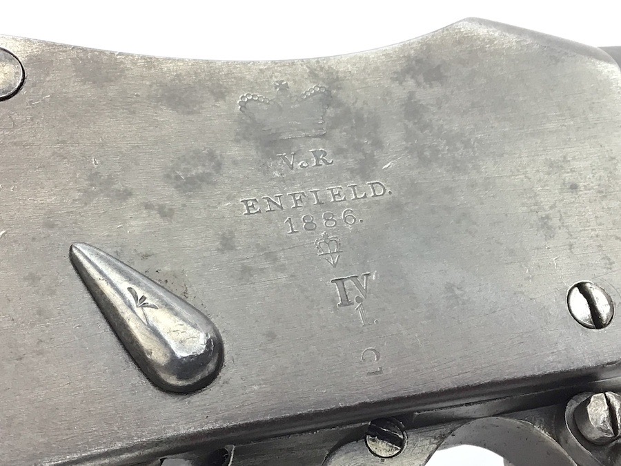 7/20/23 – This is an Enfield Martini-Henry Mk IV rifle issued to the British military in 1886. This rifle was part of a discovery of antique firearms in the royal palace of Nepal. This Pattern ‘C’ is the long handle variation which greatly enhanced the ejection of the spent cartridges. Approximately 100,000 Pattern C Mk IV Martini-Henrys’ were produced. Enfield maker stamped on the left side along with the date of 1886. Proof stamped throughout. Original finish has a beautiful patina that has aged well, with only minor pitting in a few small areas. Stock show’s honest use wear with typical dings and dents. There is a minor crack on the bottom in front of the trigger guard assembly. Bore rates a solid 8 of 10 with no pitting. Action is smooth and tight and is fully functional. This rifle comes complete with a Mark III Sword bayonet with a steel fitted leather scabbard. No FFL required.