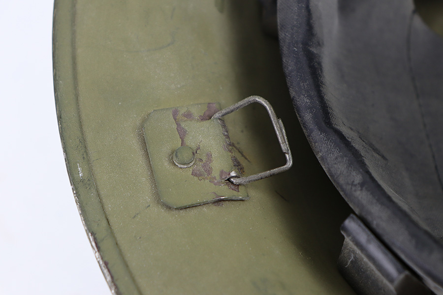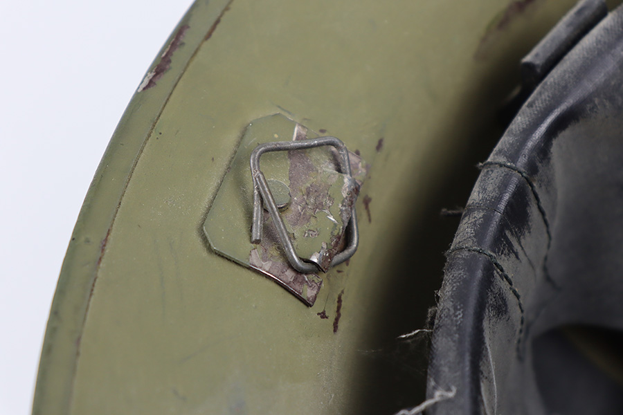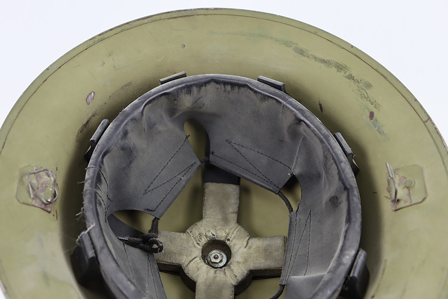10/20/23 – This is an original British Mk2 military helmet. The helmet has postwar green paint that’s in great overall condition with some mild areas of paint loss but no major issues. No dents on the shell. The interior liner is a postwar replacement as well. See photos.