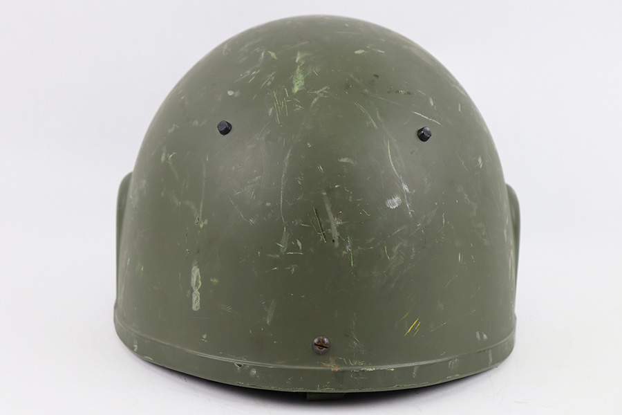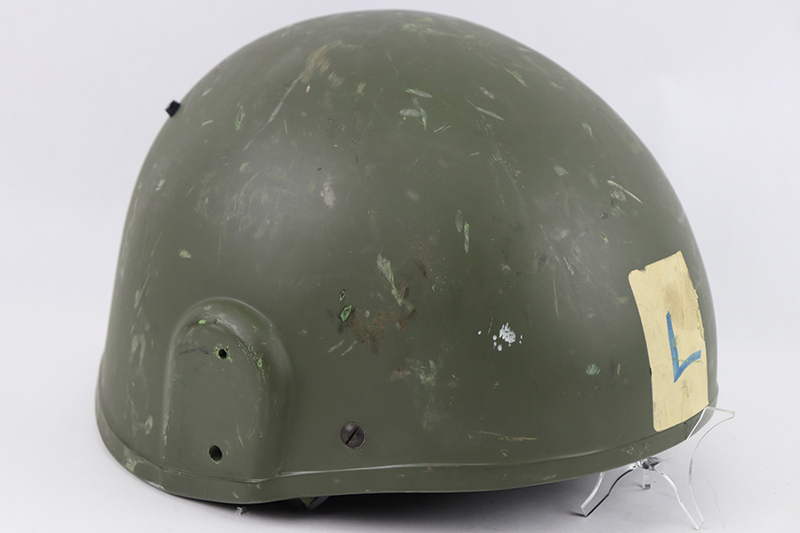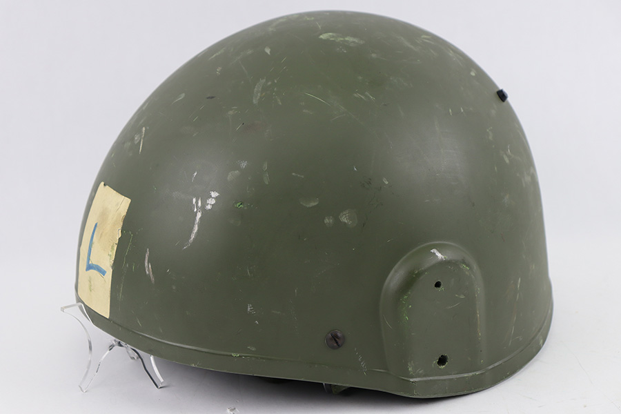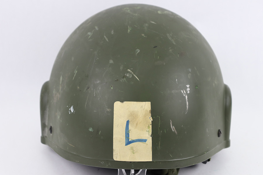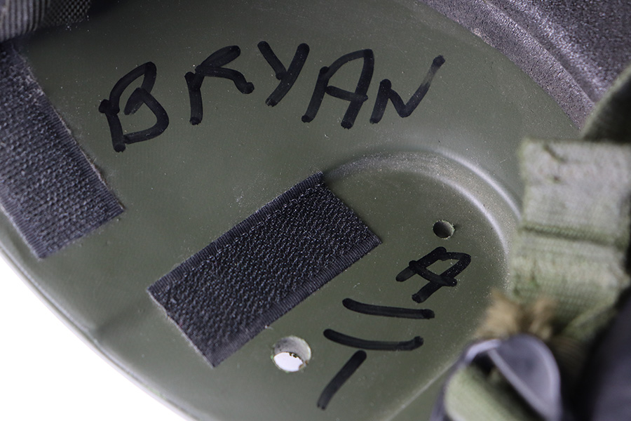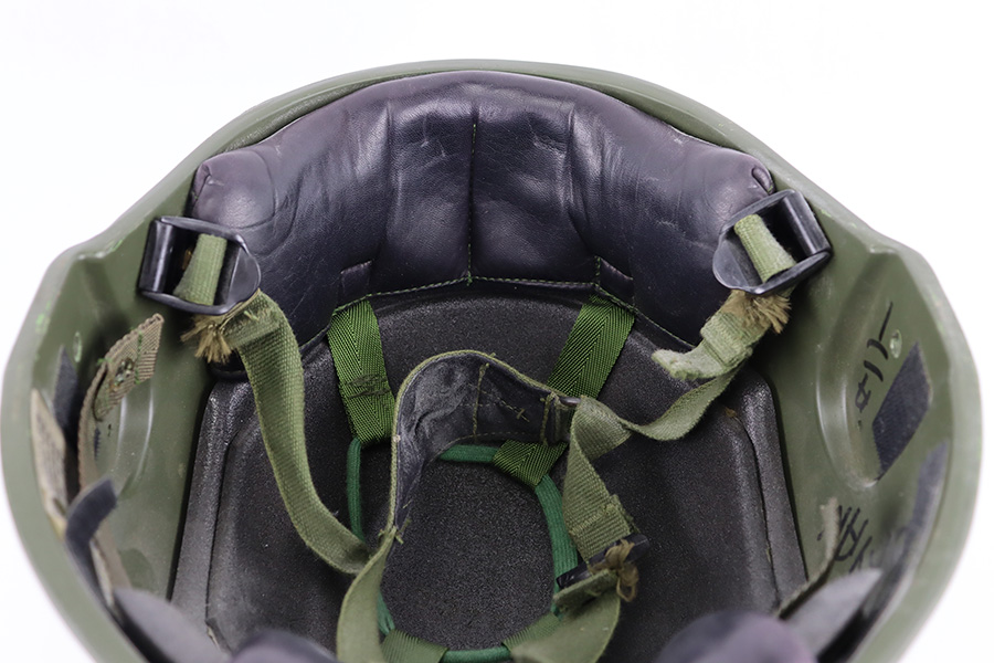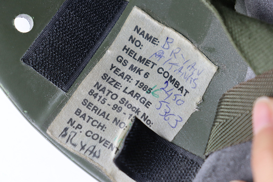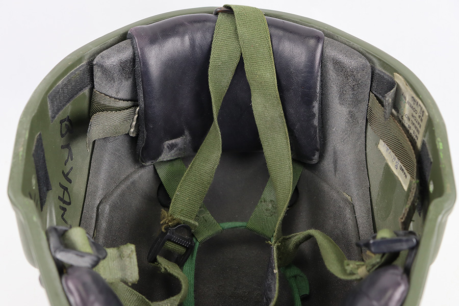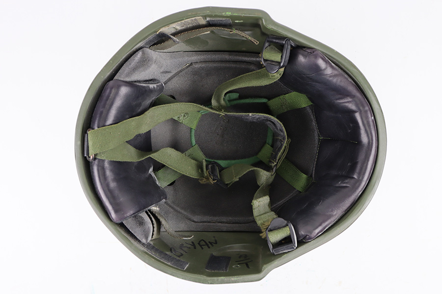 10/20/23 – This is an original British MK VI Kevlar Combat Helmet. Great overall condition with no internal communication gear included. The shell has a few scuffs but no major issues. Nice interior liner, with a soldier’s name “BRYAN” written on the interior shell and tag. See photos – size large.