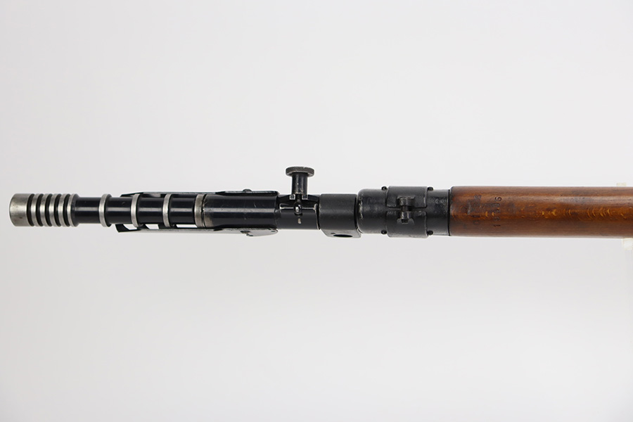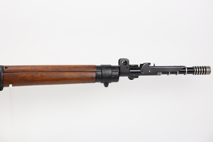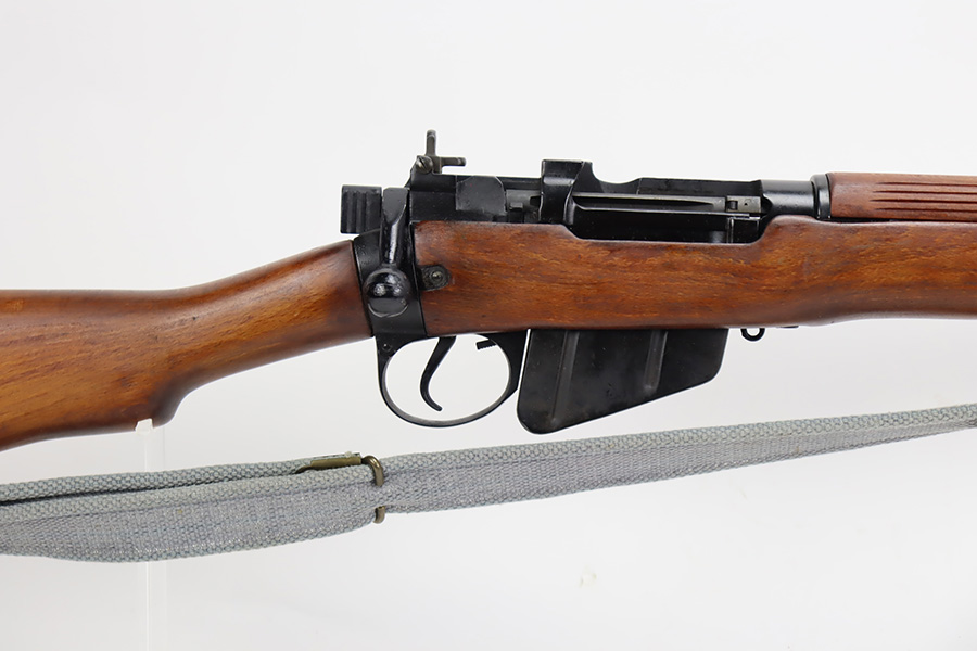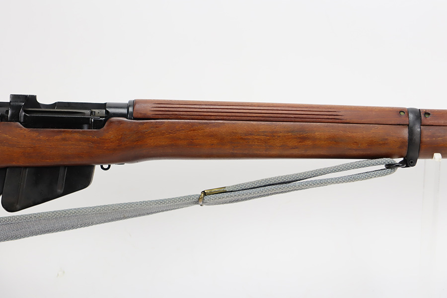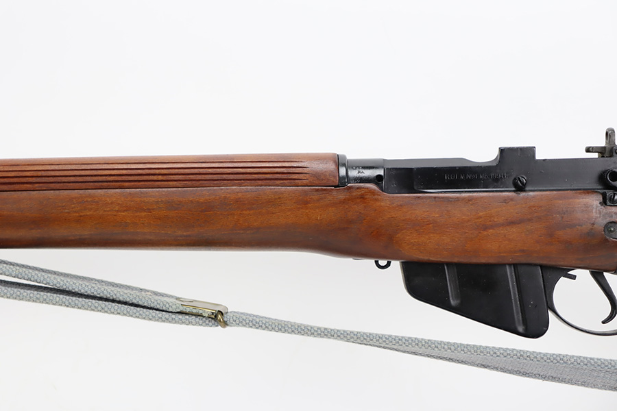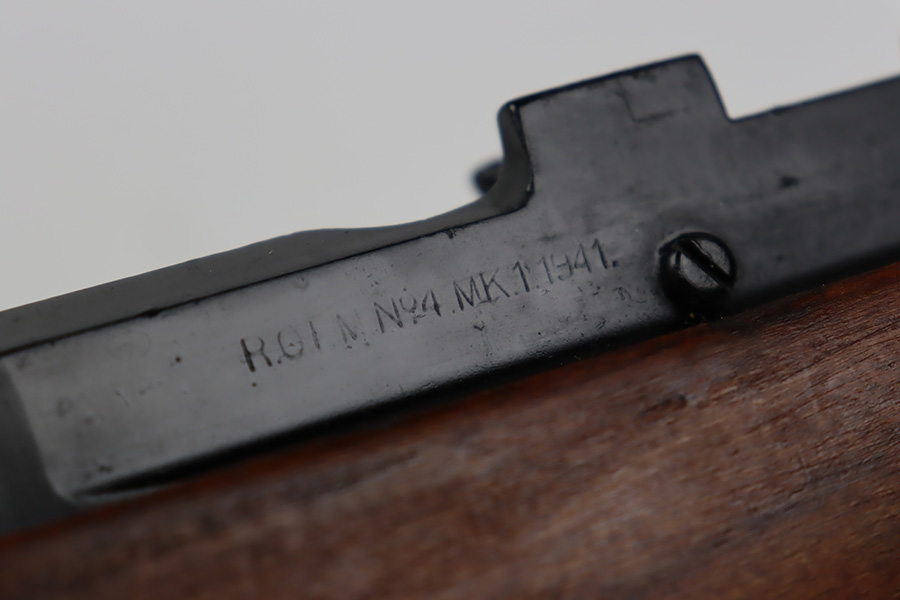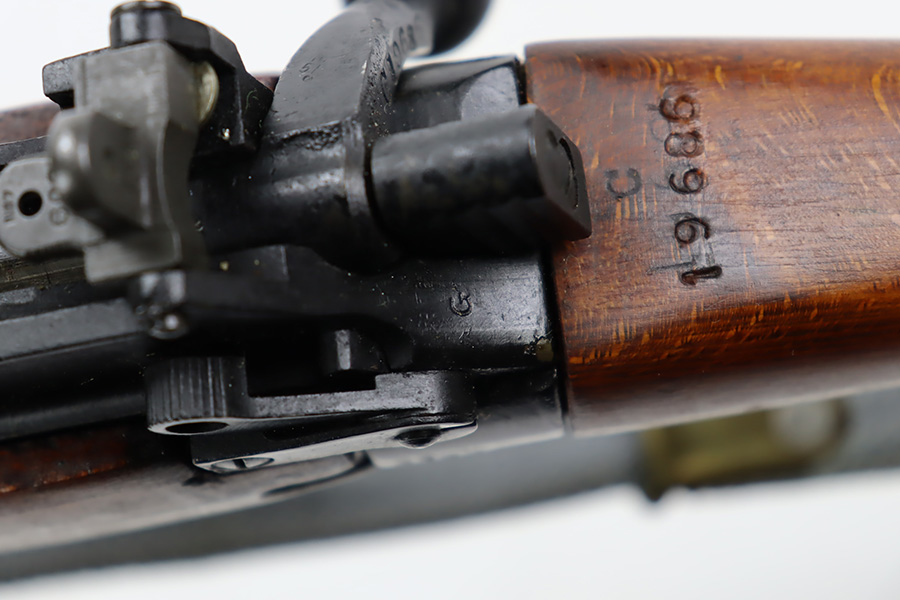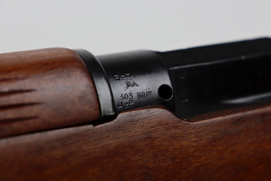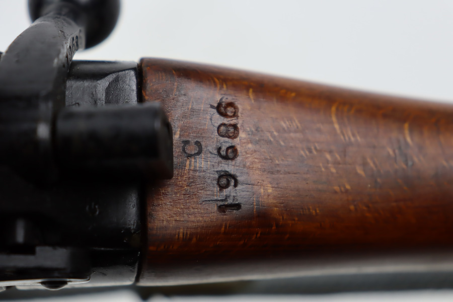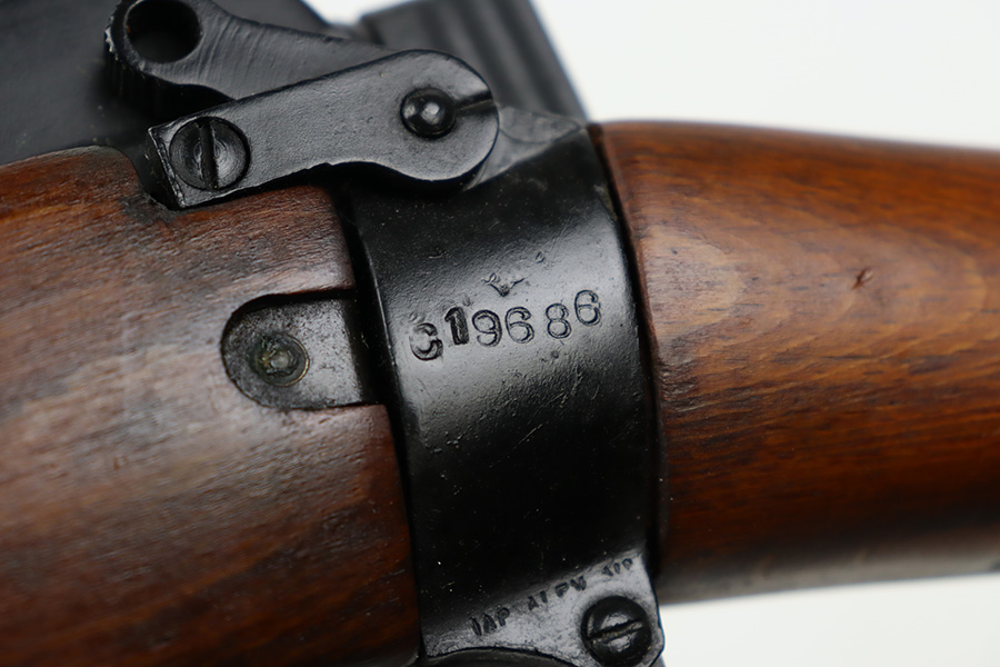 10/2/23 – This is a minty example of British Fazakerley No 4 Mk 1 rifle from 1941. This one is also equipped with a scarce grenade launcher and sight. All matching with a tiny import mark on the left side of the receiver. The metal parts have retained nearly all of their black enamel finish with just some very minor high edge wear. Minty wood stock. Mint bore.