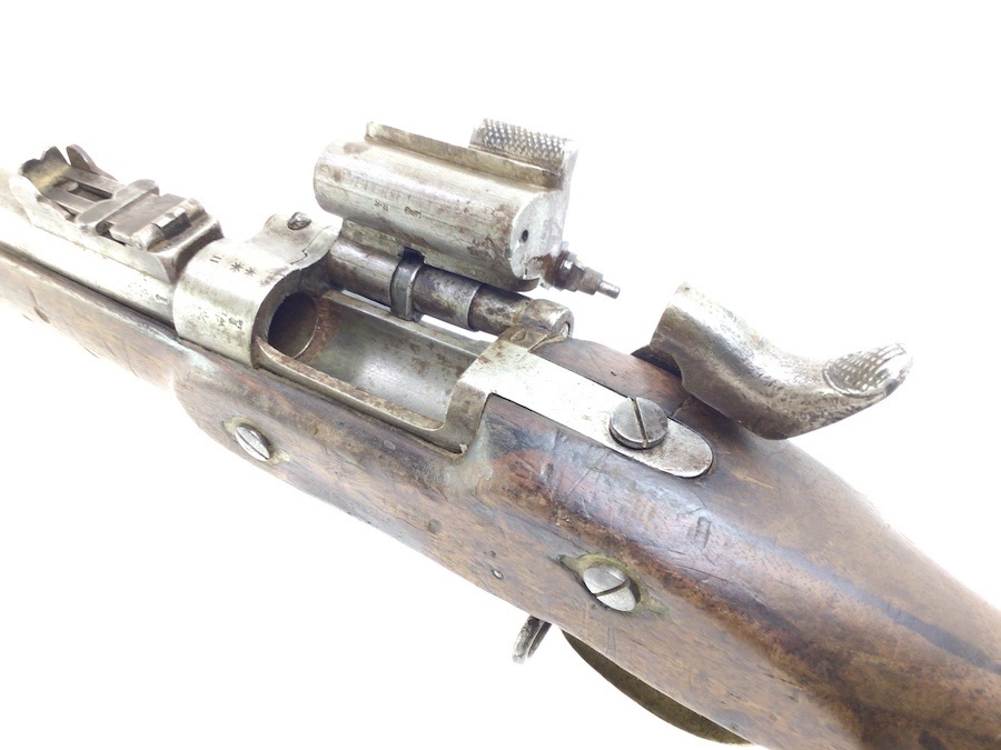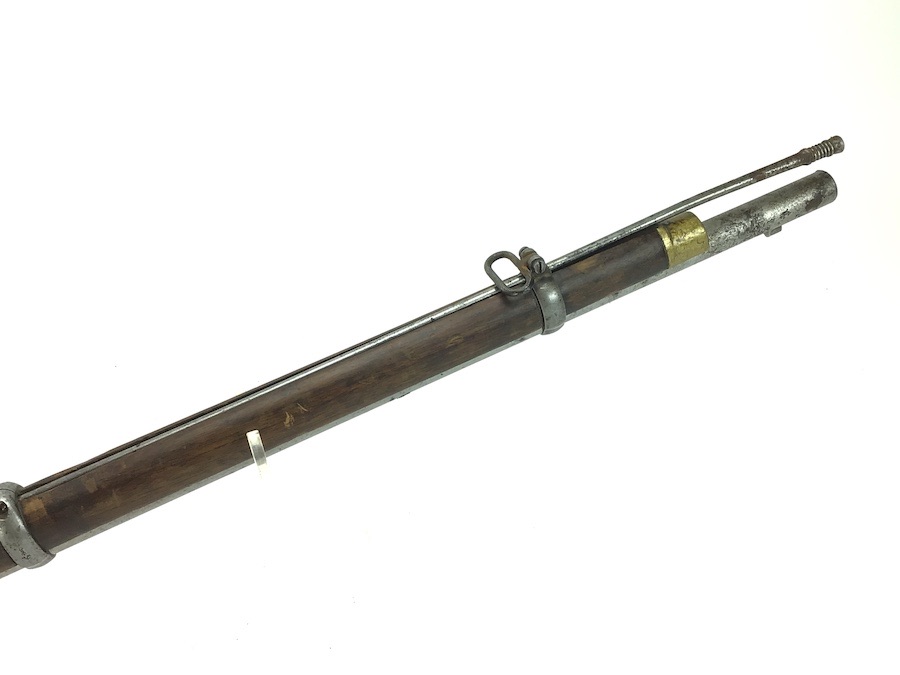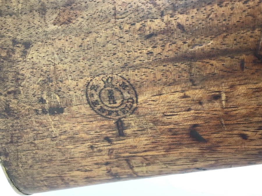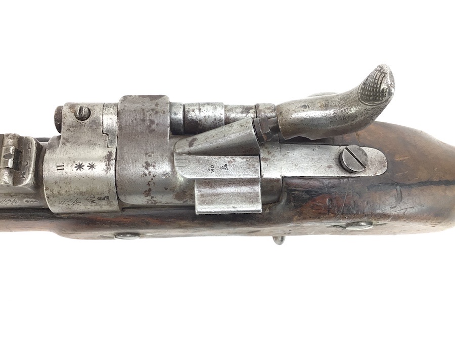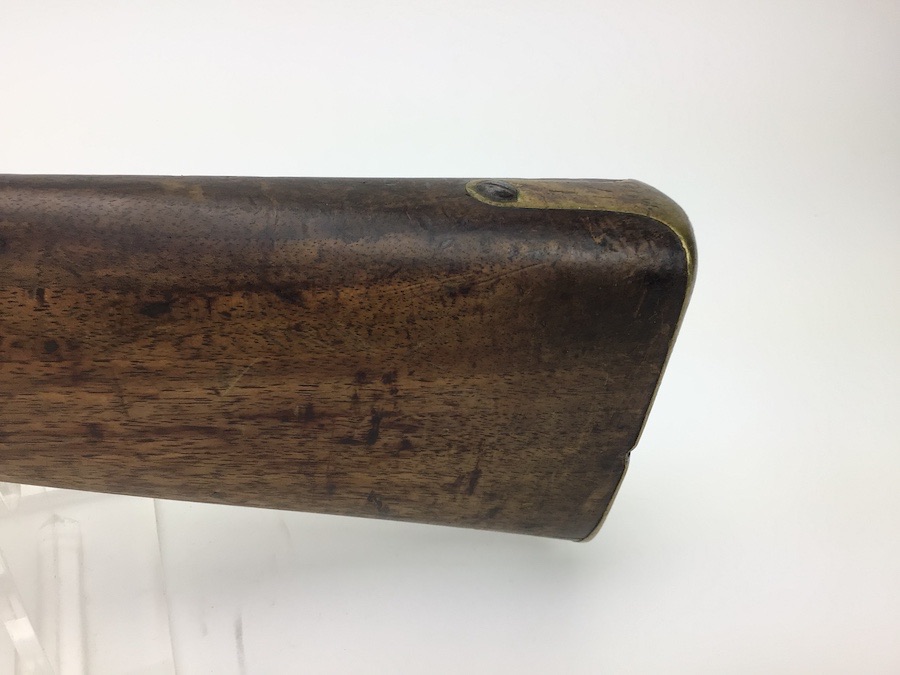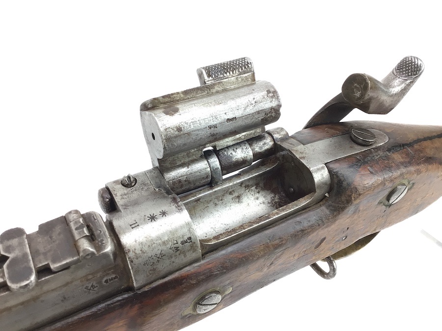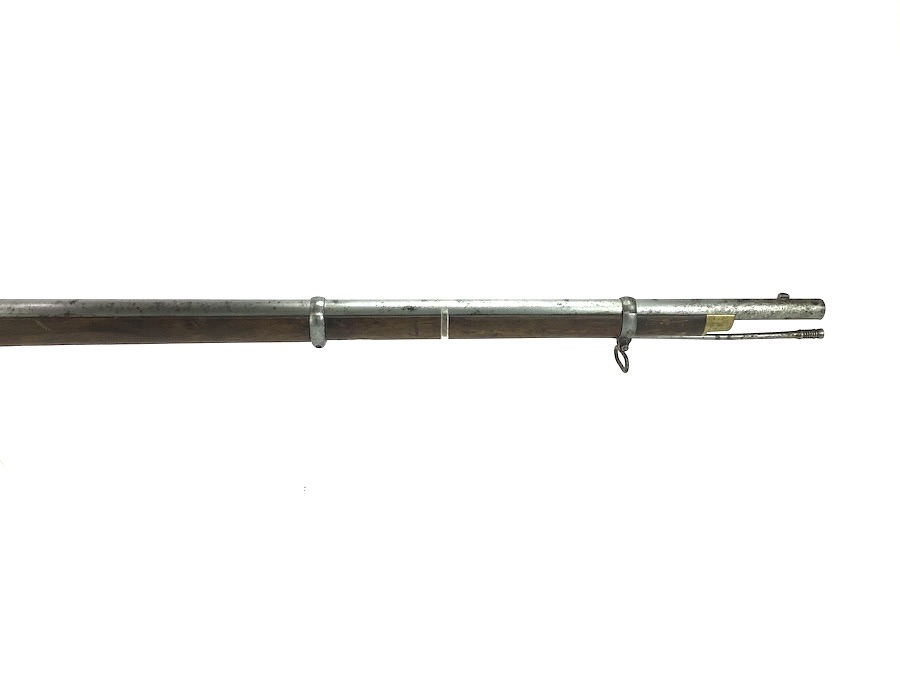 10/22/24 – Original and good condition. This rifle is 100% all British, manufactured 1861. Dated, Three-Band Snider-Enfield rifle, with a great looking patina. This rifle started life in 1861 as a .577 caliber three band ENFIELD Percussion Rifle model of P-1853. The lock plate is stamped “CROWN” over V.R. and ENFIELD / 1861, indicating manufacture at the Royal Small Arms factory at Enfield Lock. This was a military issue, as indicated by the Royal Cypher monogram. It also has the correct CROWN / BROAD ARROW “lock viewer’s” mark and additional proofs as well on the lock plate. The barrel has British markings and proof marks throughout. Enfield cartouche stamped on the right side of the buttstock. Overall there is a fair amount of rust pitting that has been cleaned. There is the correct II * * stamped on top of the breech ring, indicating it is the MkII** version of the breech. Three groove rifling looks good in the bore and rates about a 6 of 10. Fully functional and includes original cleaning rod. No FFL required.