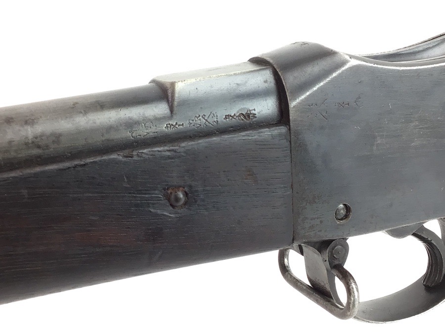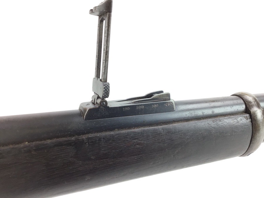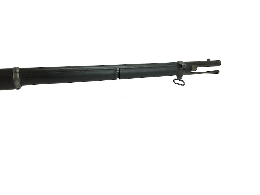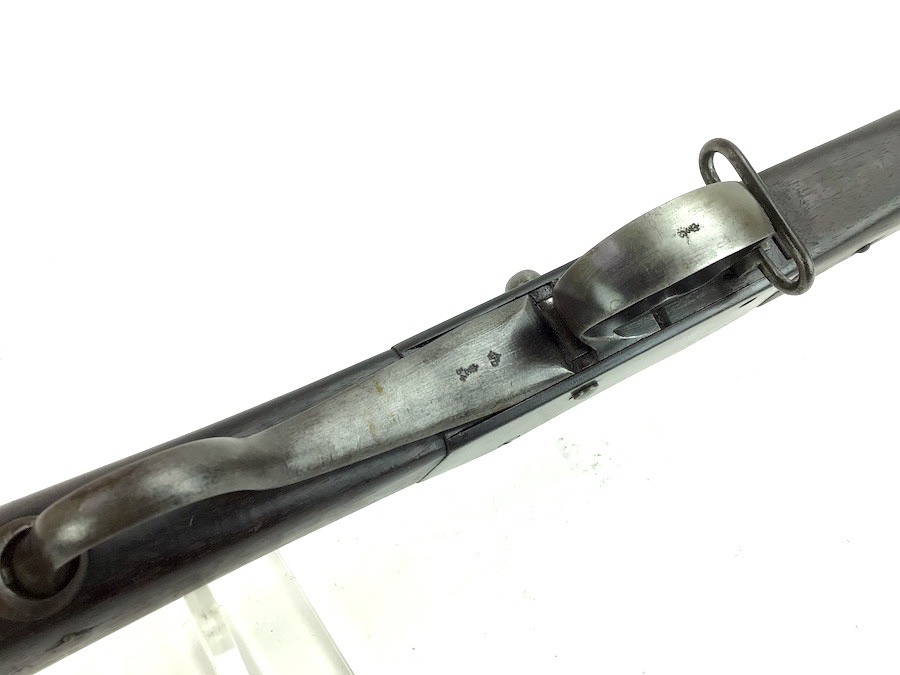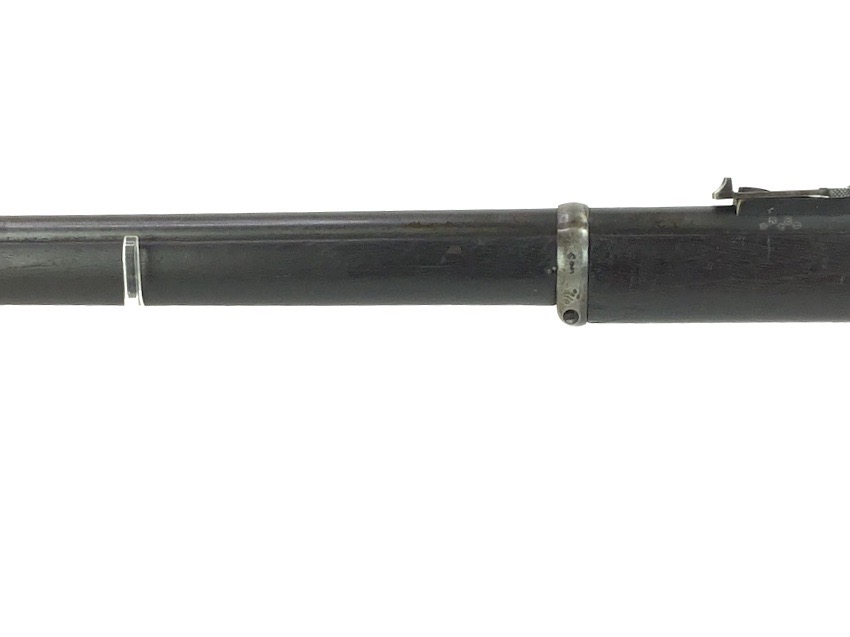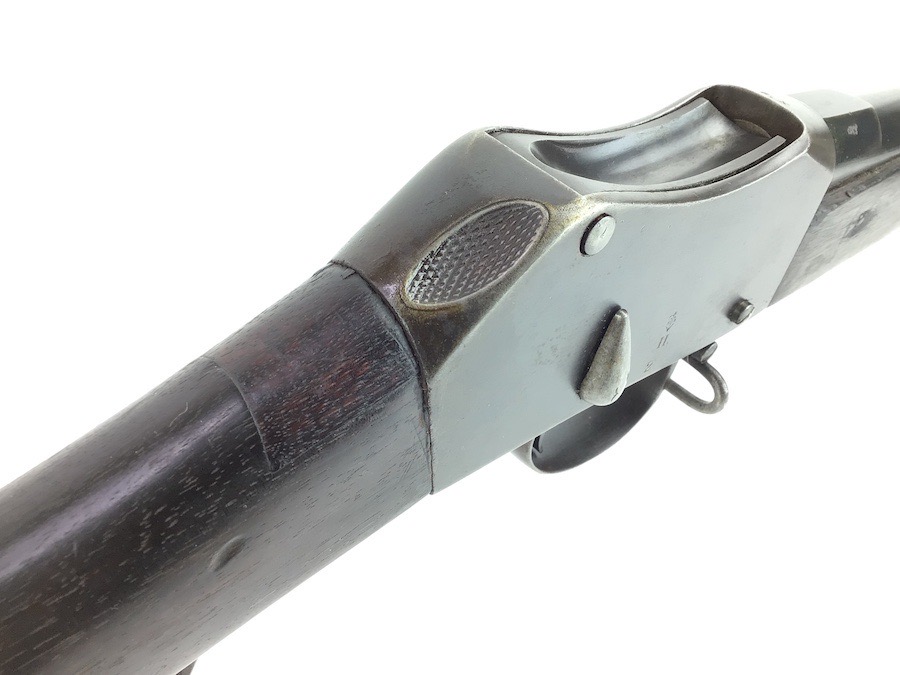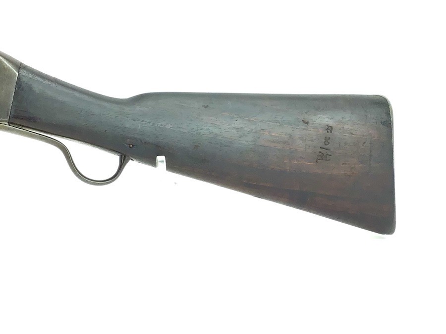 7/11/24 – Original and great condition. This Enfield Martini-Henry is a single shot, lever action chambered in 577 / 450. Original finish rates around 85 to 90% with a spotty patina surface. No Pitting or rust. This incorporates the early, short lever with 33″ barrel. The rifling is strong and the bore rates a strong 8 of 10. The wood stock shows honest wear and what appears to be an older repair just behind the receiver on the top. The furniture is solid and secure. Fully functional antique that ship directly to you.