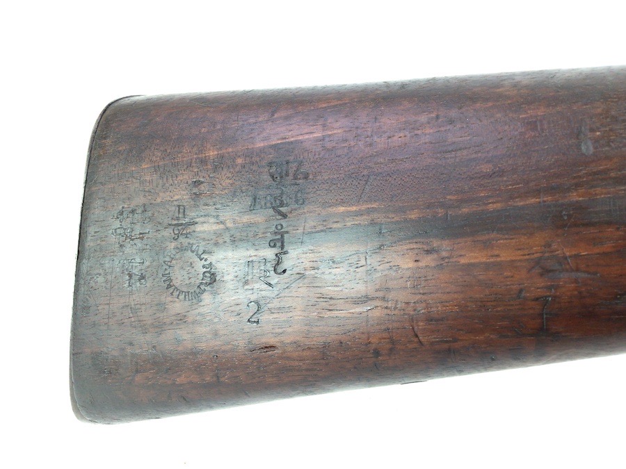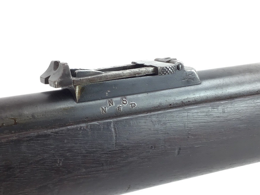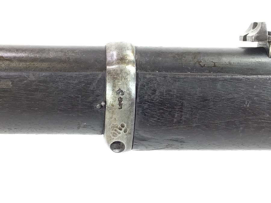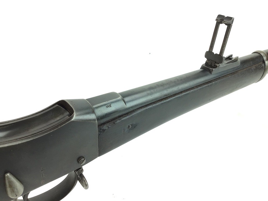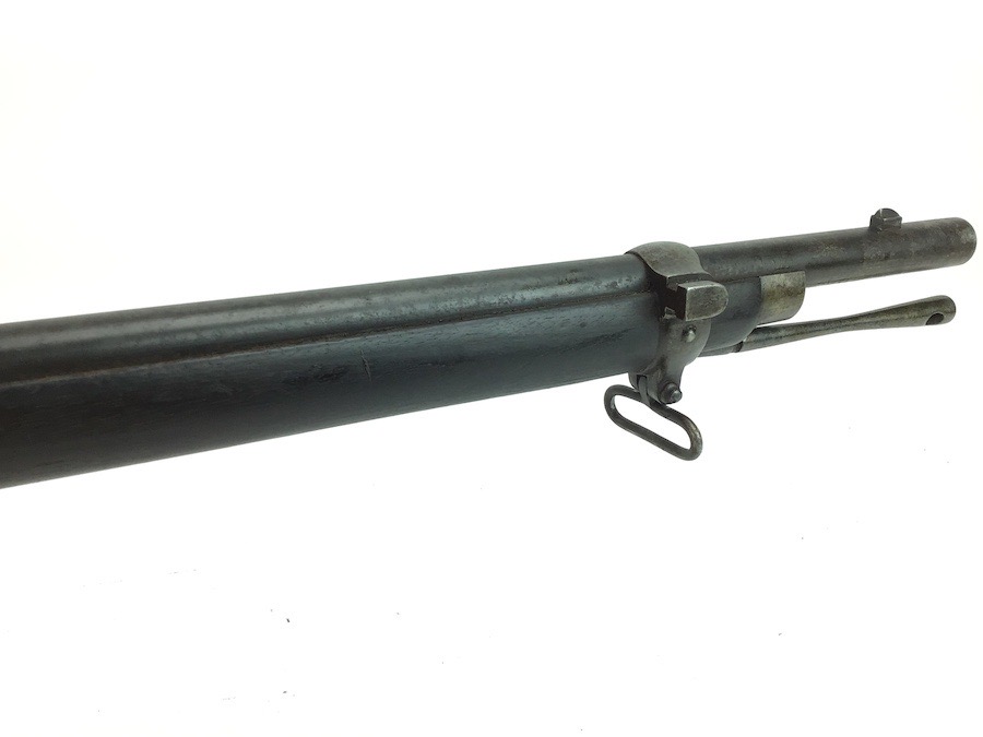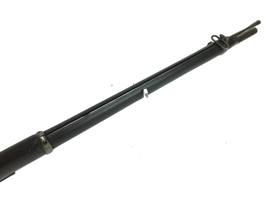 7/11/24 – Original and great condition. This Enfield Martini-Henry is a single shot, lever action chambered in 577 / 450. Original finish rates around 85 to 90% with a spotty patina surface. No Pitting or rust. This incorporates the early, short lever with 33″ barrel. The rifling is strong and the bore rates a strong 8 of 10. The wood stock shows honest wear and what appears to be an older repair just behind the receiver on the top. The furniture is solid and secure. Fully functional antique that ship directly to you.